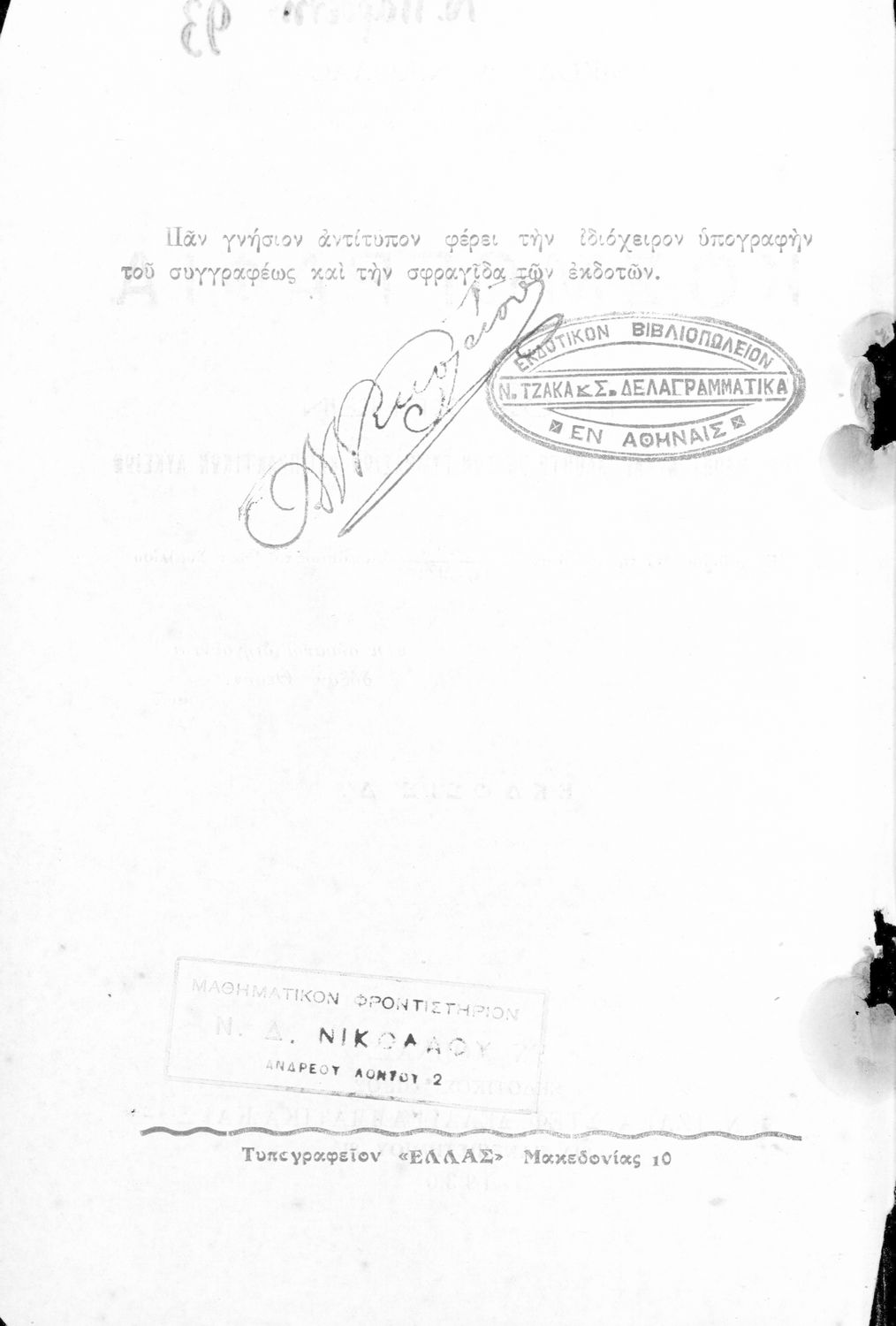 Εκδότης: Δημ. Ν. Τζάκας, Στεφ. Δελαγραμμάτικας Έτος έκδοσης: 1930 Τόπος έκδοσης: Αθήνα Έκδοση: 4η Υπουργική απόφαση / Σύμβαση: 529/11-7-1922 Έτος έγκρισης: 1922 |