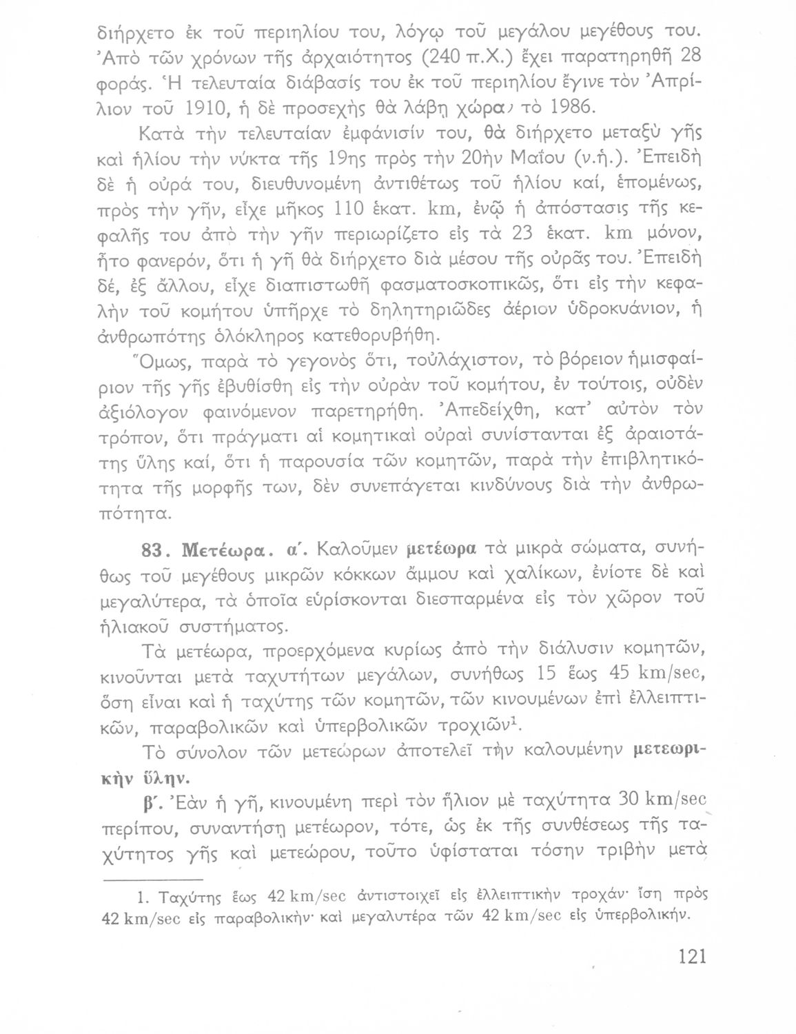 Σχολικό εγχειρίδιο Κοσμογραφίας ΣΤ΄ Γυμνασίου που πραγματεύεται τη μορφή, σύσταση, μέγεθος και κίνηση των γαλαξιών και των πλανητών. Περιέχει στοιχεία αστροναυτικής και πίνακα με 88 αστερισμούς, τα διεθνή ονόματα και τα σύμβολά τους.