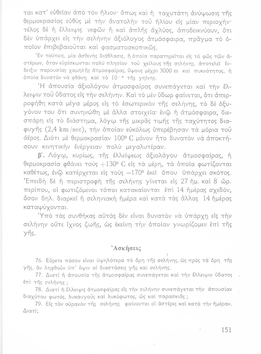 Σχολικό εγχειρίδιο Κοσμογραφίας ΣΤ΄ Γυμνασίου που πραγματεύεται τη μορφή, σύσταση, μέγεθος και κίνηση των γαλαξιών και των πλανητών. Περιέχει στοιχεία αστροναυτικής και πίνακα με 88 αστερισμούς, τα διεθνή ονόματα και τα σύμβολά τους.