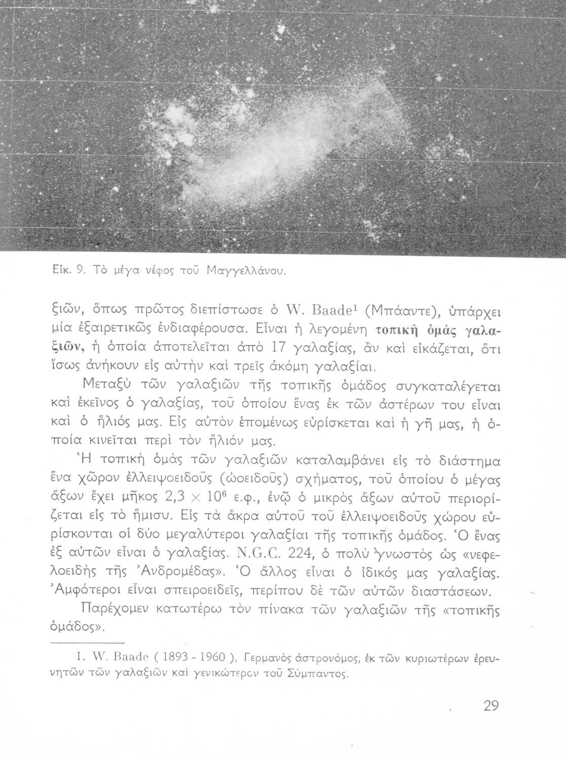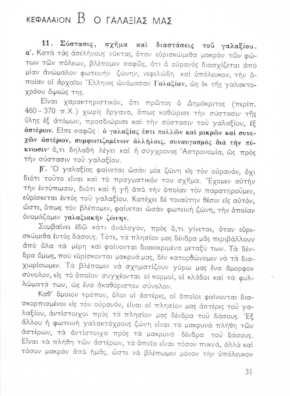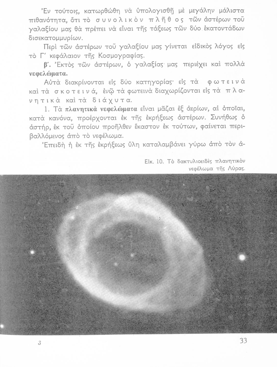 Σχολικό εγχειρίδιο Κοσμογραφίας ΣΤ΄ Γυμνασίου που πραγματεύεται τη μορφή, σύσταση, μέγεθος και κίνηση των γαλαξιών και των πλανητών. Περιέχει στοιχεία αστροναυτικής και πίνακα με 88 αστερισμούς, τα διεθνή ονόματα και τα σύμβολά τους.