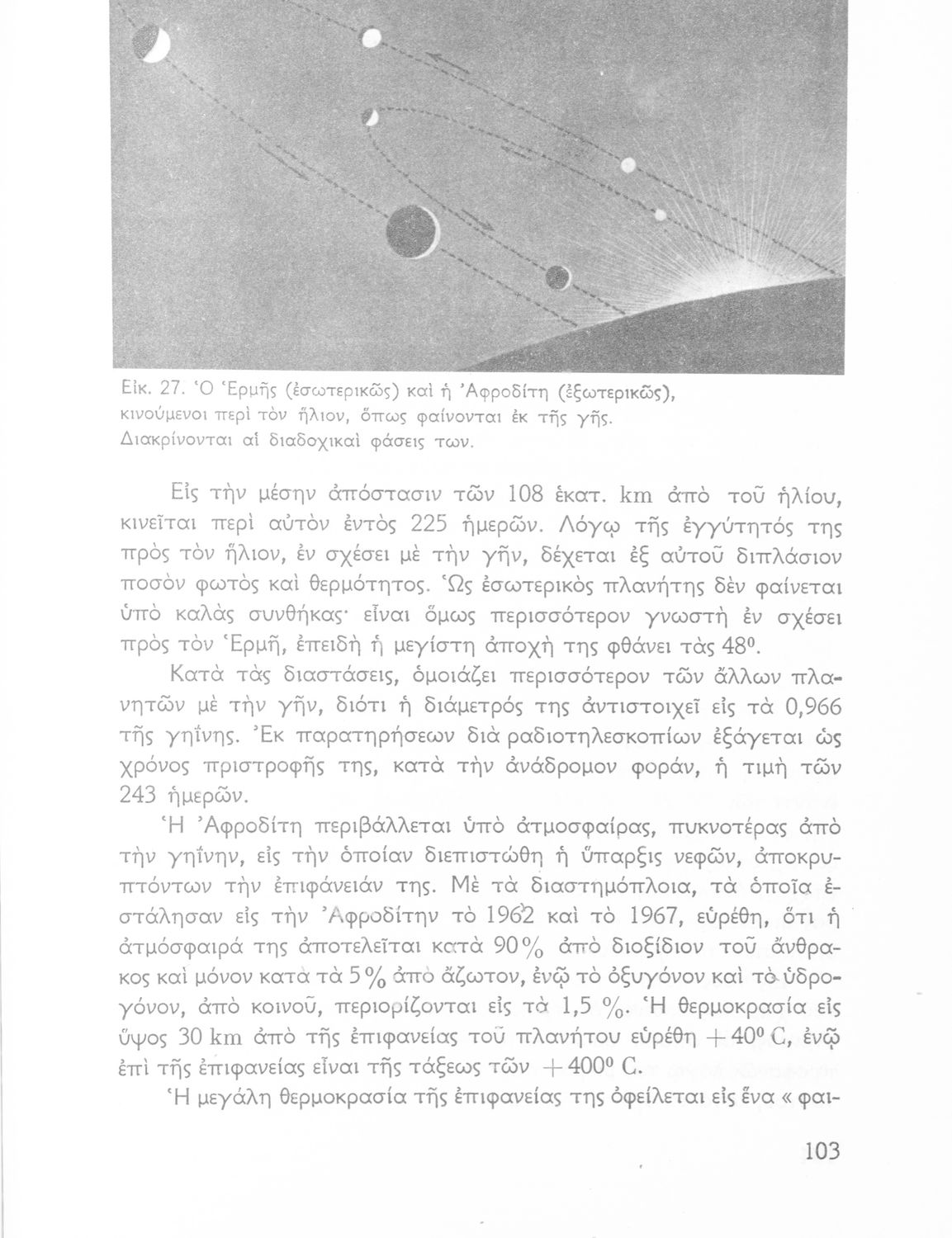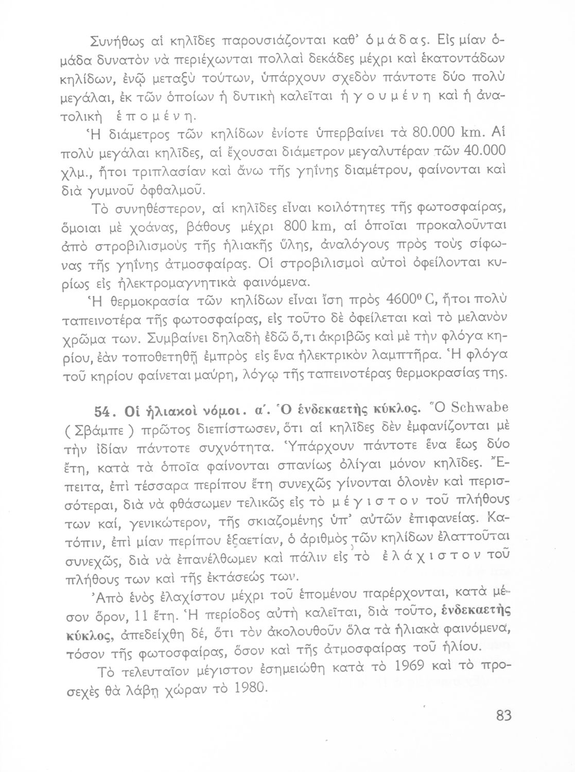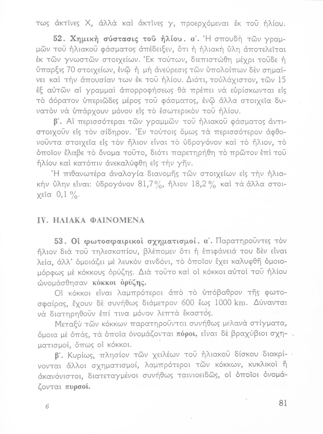 Σχολικό εγχειρίδιο Κοσμογραφίας ΣΤ΄ Γυμνασίου που πραγματεύεται τη μορφή, σύσταση, μέγεθος και κίνηση των γαλαξιών και των πλανητών. Περιέχει στοιχεία αστροναυτικής και πίνακα με 88 αστερισμούς, τα διεθνή ονόματα και τα σύμβολά τους.