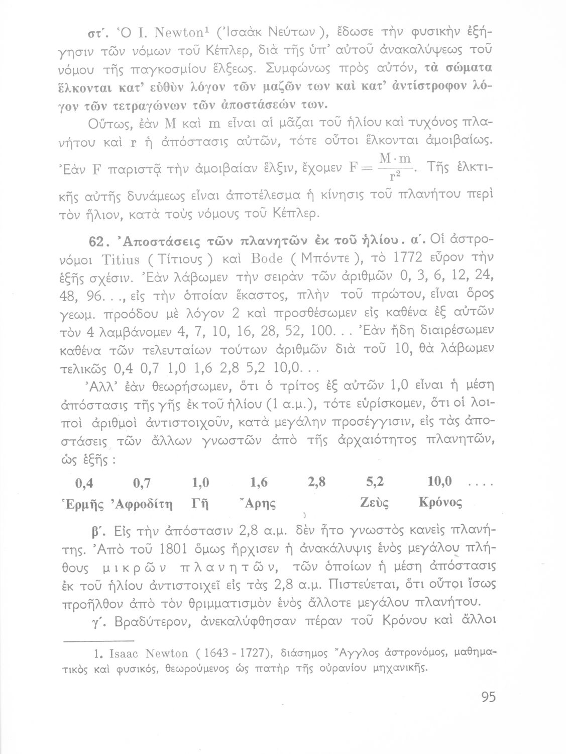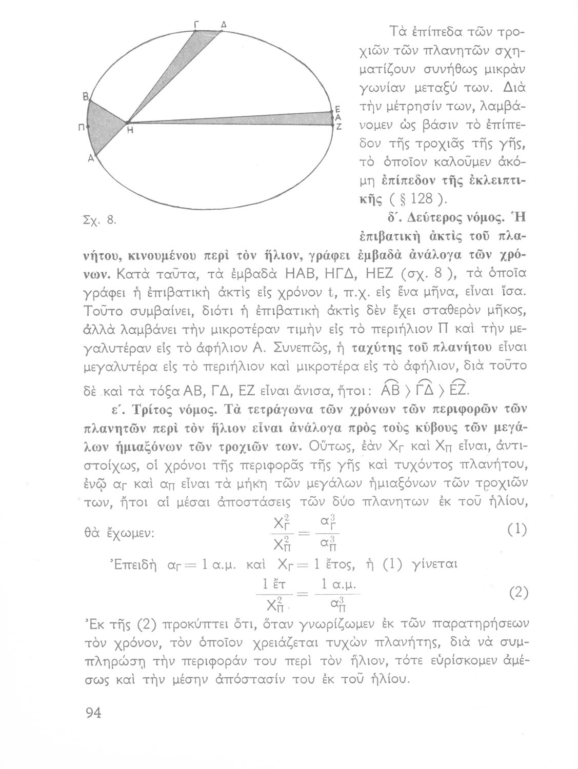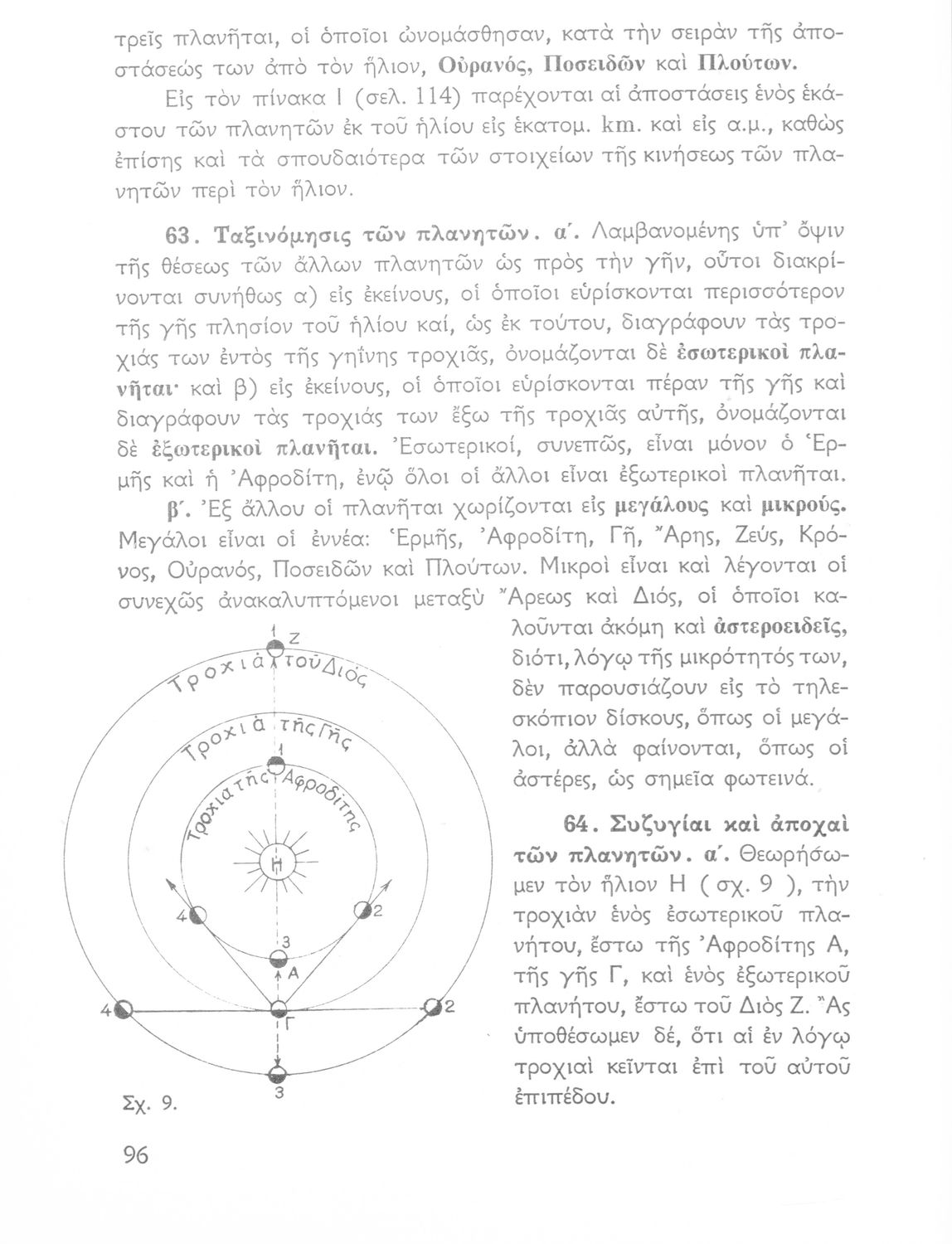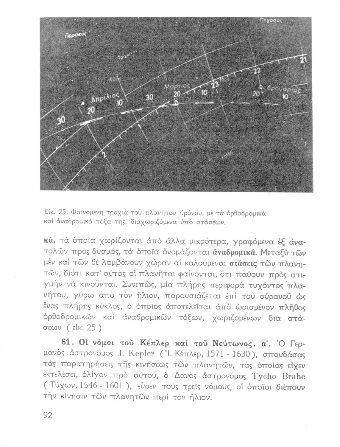 Σχολικό εγχειρίδιο Κοσμογραφίας ΣΤ΄ Γυμνασίου που εστιάζει στην κίνηση των πλανητών και στον τρόπο υπολογισμού της τροχιάς τους.