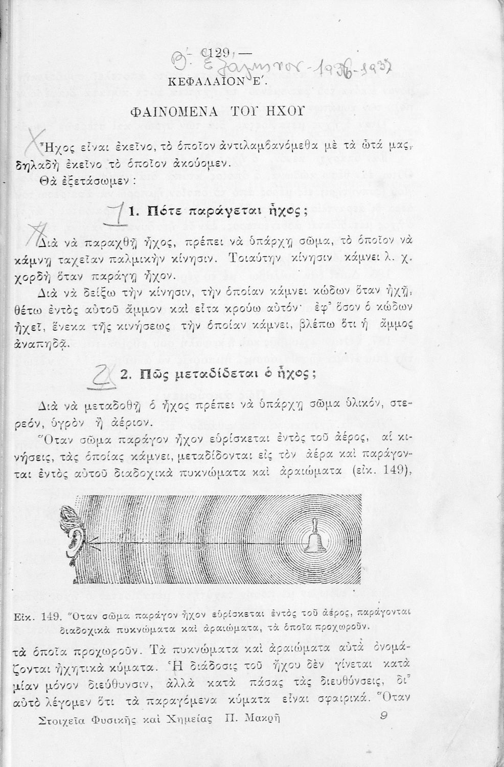 Σχολικό εγχειρίδιο Φυσικής και Χημείας που προσδιορίζει τη μηχανική στερεών σωμάτων, αναφέρει τις ιδιότητες ποικίλων στοιχείων της φύσης (οξυγόνο, υδρογόνο, αέρα, νερό) περιγράφοντας τις χημικές ενώσεις που ...