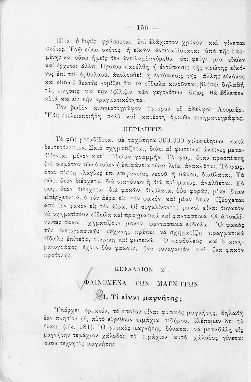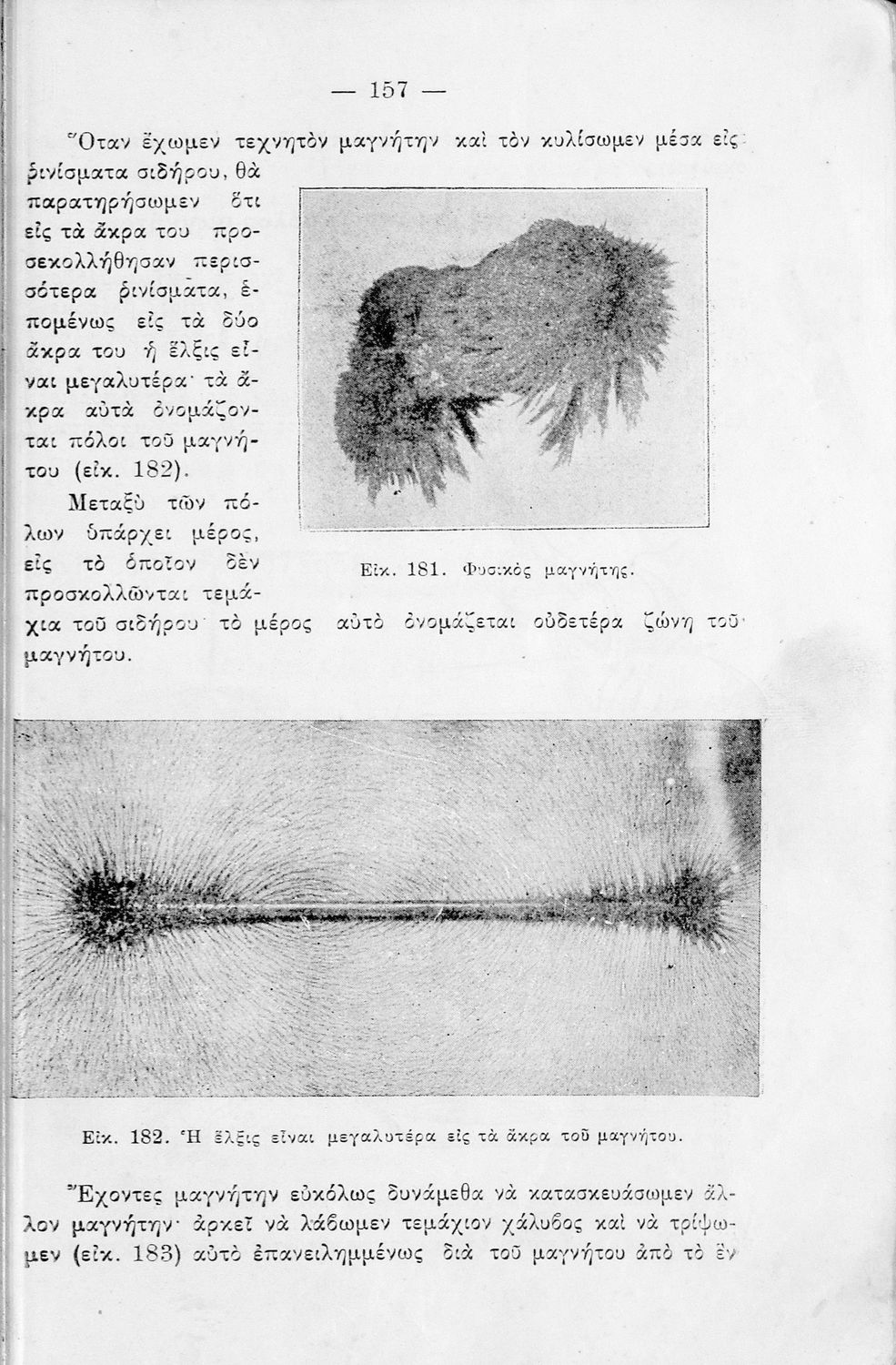 Σχολικό εγχειρίδιο της Α΄ Γυμνασίου για το μάθημα της Φυσικής. Παρέχει βασικές γνώσεις της φυσικής επιστήμης και της χημείας. Αναλύει τις ιδιότητες των σωμάτων, καθώς και της θερμότητας, του ηλεκτρισμού και του μαγνητισμού, την υδροστατική, την βαρύτητα και την αεροστατική. Σχετικά με τη Χημεία αναφέρεται στα μέταλλα, στα οξέα, τις βάσεις, τα άλατα. Αναφέρεται στην πρακτική εφαρμογή της φυσικής και της χημείας στην καθημερινότητά. Επίσης, περιλαμβάνει πολλά από τα όργανα, που χρησιμοποιούνται στη φυσική, και τη χημεία. Περιέχει εικόνες και σχεδιαγράμματα τα οποία βοηθούν τη διδασκαλία.