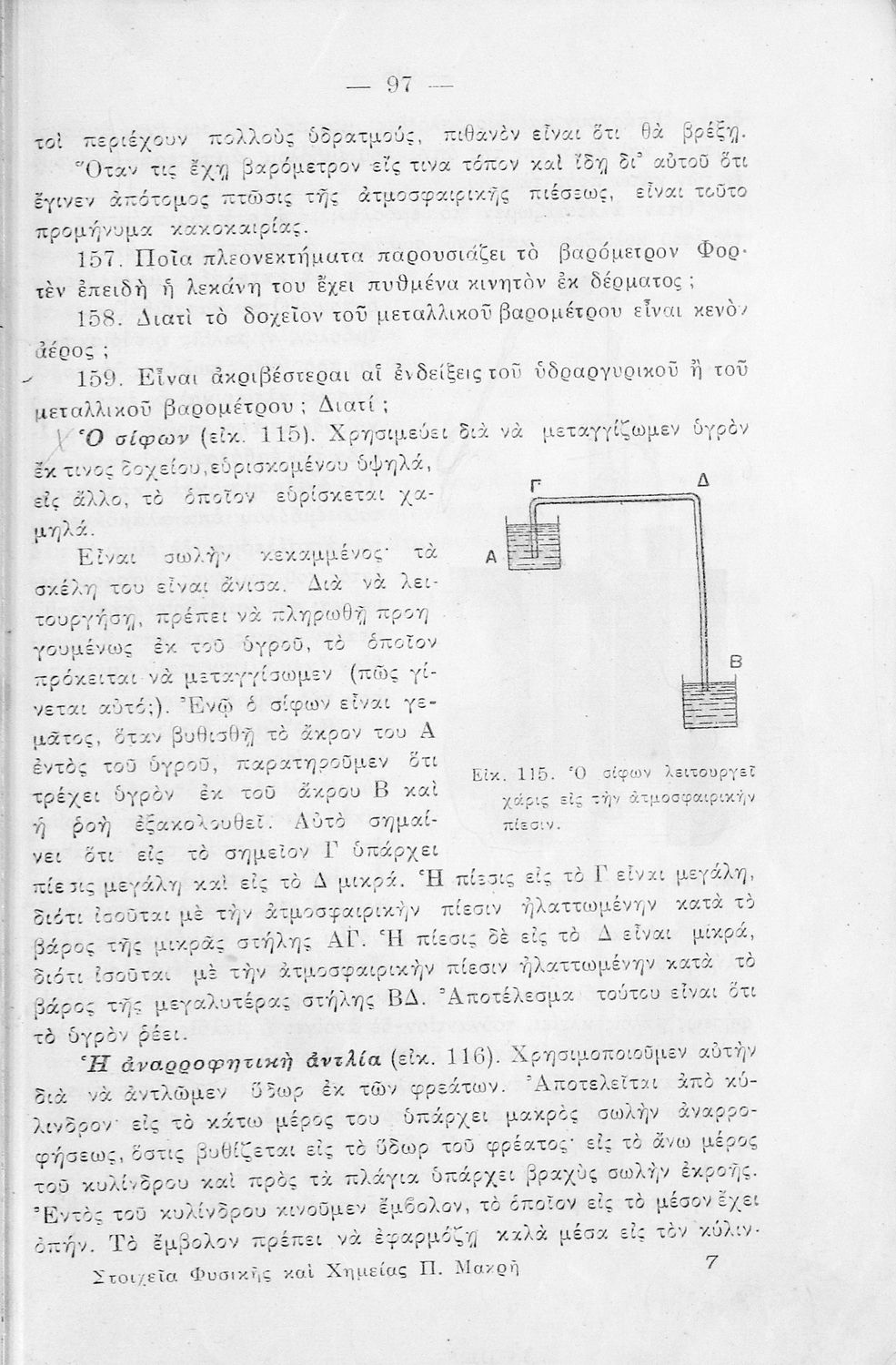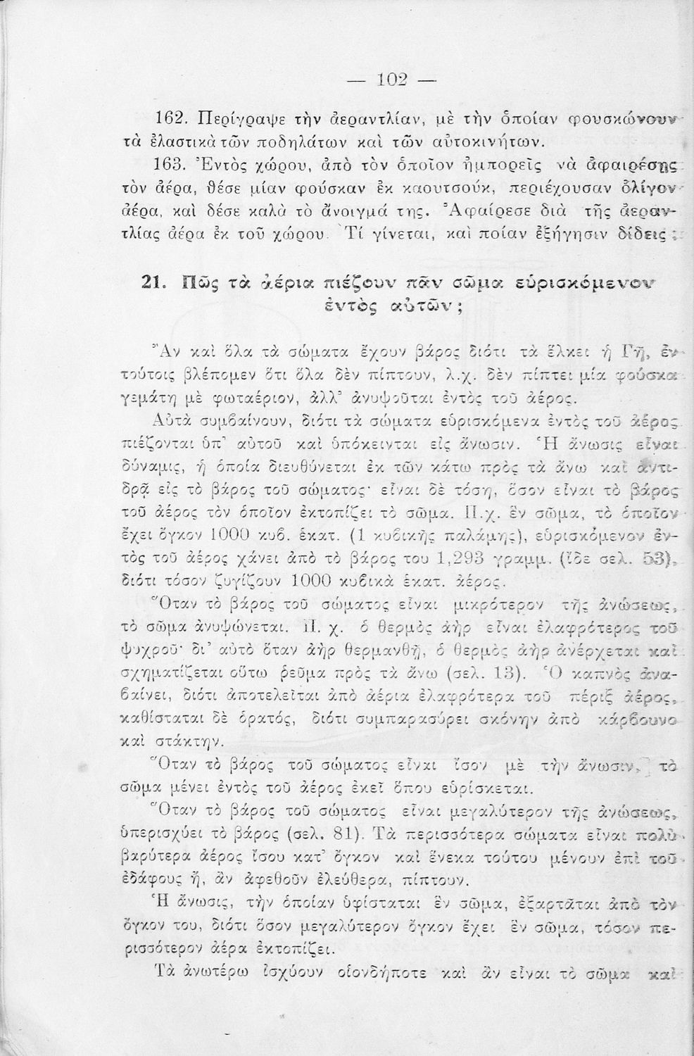 Σχολικό εγχειρίδιο Φυσικής και Χημείας που προσδιορίζει τη μηχανική στερεών σωμάτων, αναφέρει τις ιδιότητες ποικίλων στοιχείων της φύσης (οξυγόνο, υδρογόνο, αέρα, νερό) περιγράφοντας τις χημικές ενώσεις που ...