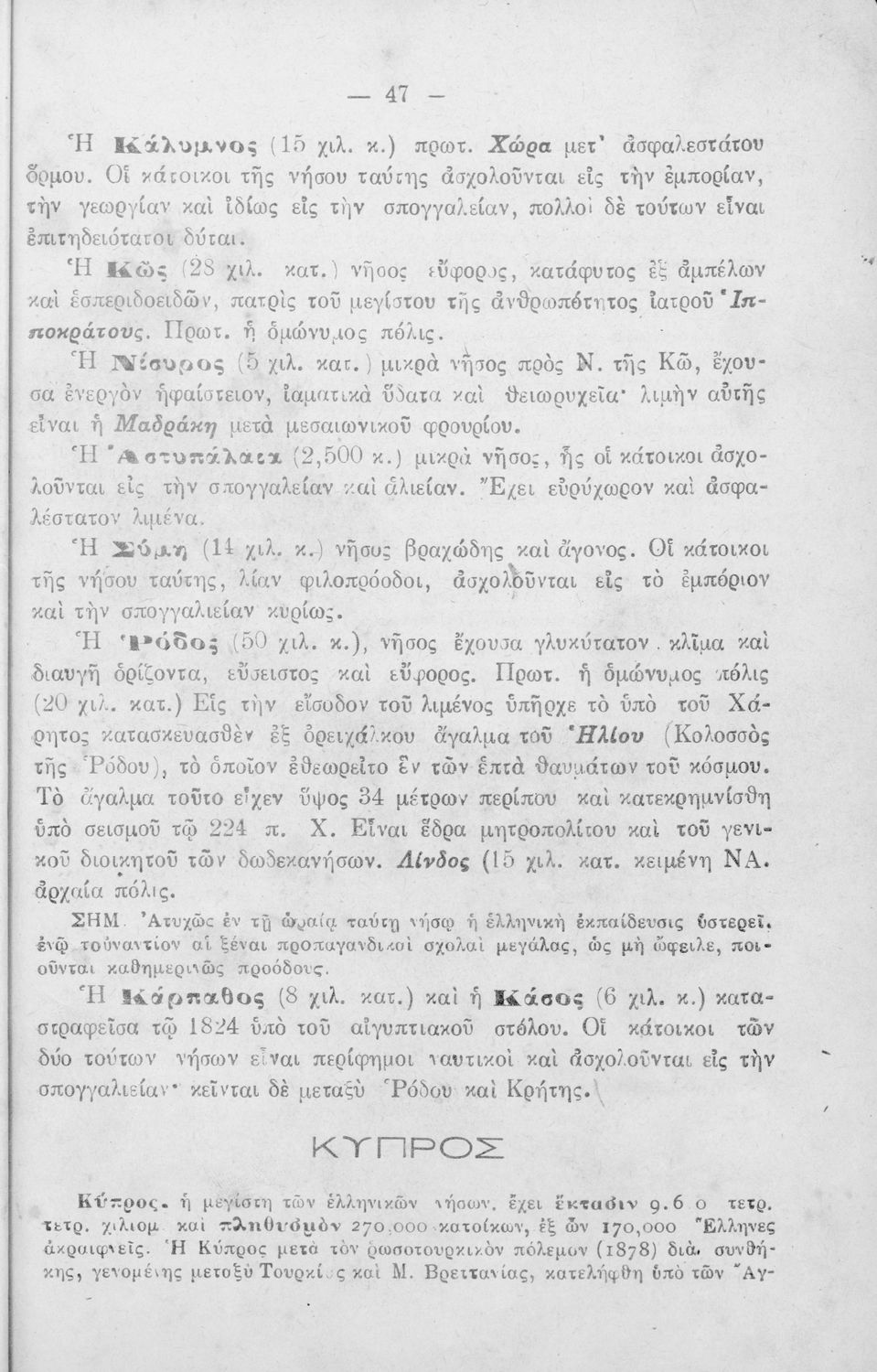 Σχολικό εγχειρίδιο Γεωγραφίας για τις Γ΄, Δ΄, Ε΄, ΣΤ΄ Δημοτικού που περιλαμβάνει εισαγωγή στην πατριδογνωσία και παρουσιάζει την φυσική και πολιτική γεωγραφία της Παλαιάς και Νέας Ελλάδας.