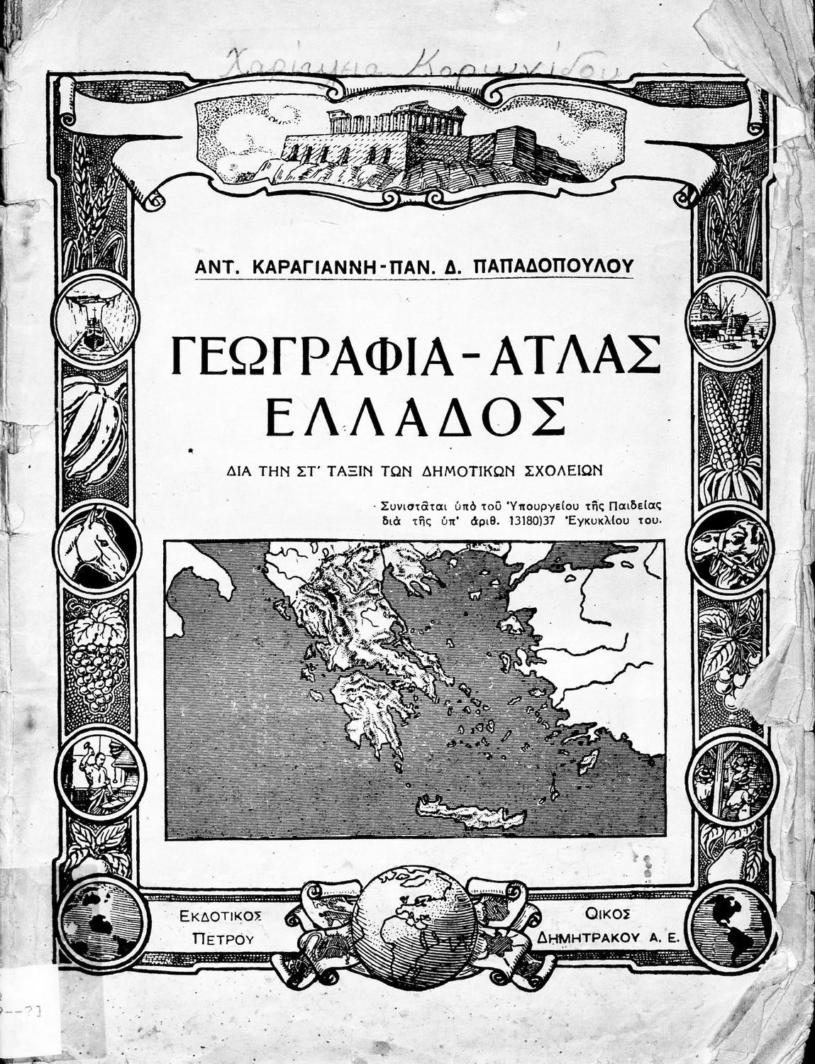 Κωδικός αναγνώρισης: 01-17982 Τίτλος: Γεωγραφία-Άτλας Ελλάδος δια την ΣΤ΄ τάξιν των Δημοτικών Σχολείων Συγγραφέας: Αντ. Καραγιάννης, Παν. Δ. Παπαδόπουλος (επιμ.) Μέγεθος και υπόστρωμα: Μαθητικό βοήθημα, 28εκ., μαλακό εξώφυλλο, 44 σελίδες. Σκίτσα, φωτογραφίες και χάρτες (ασπρόμαυρα). |