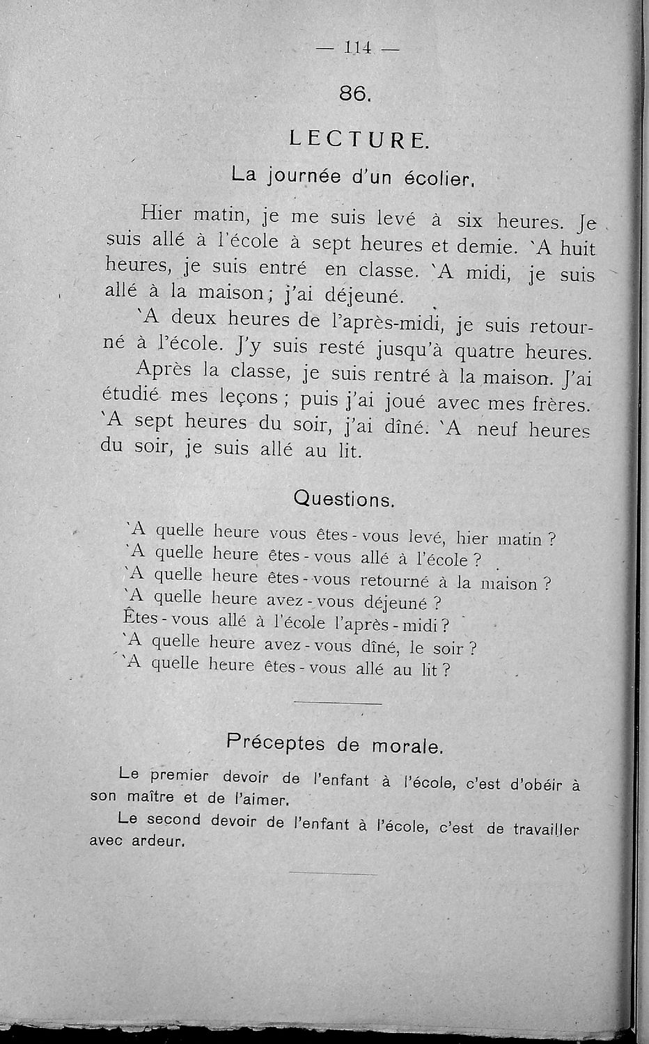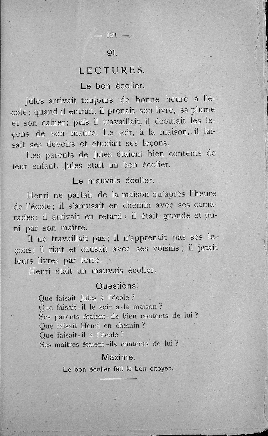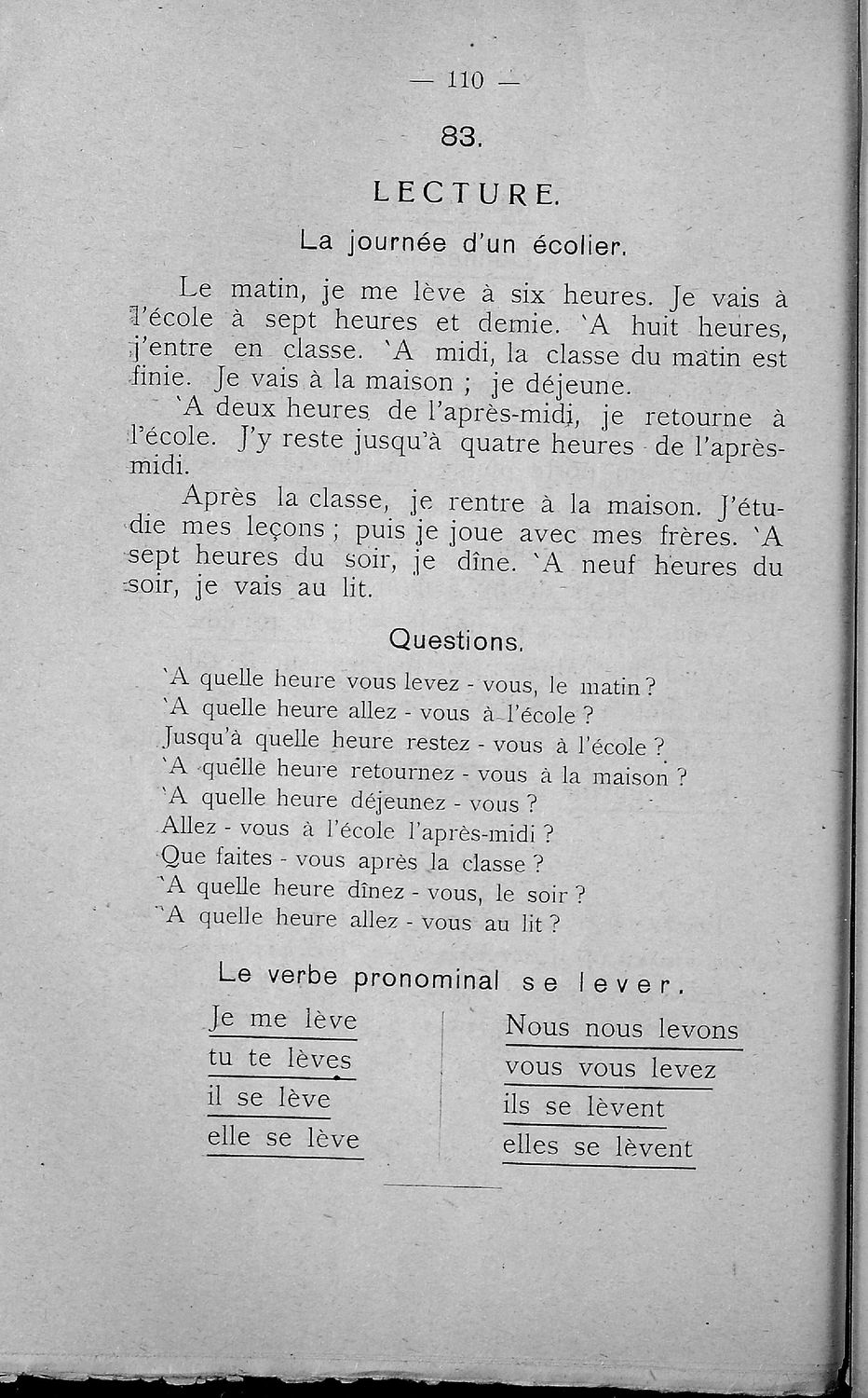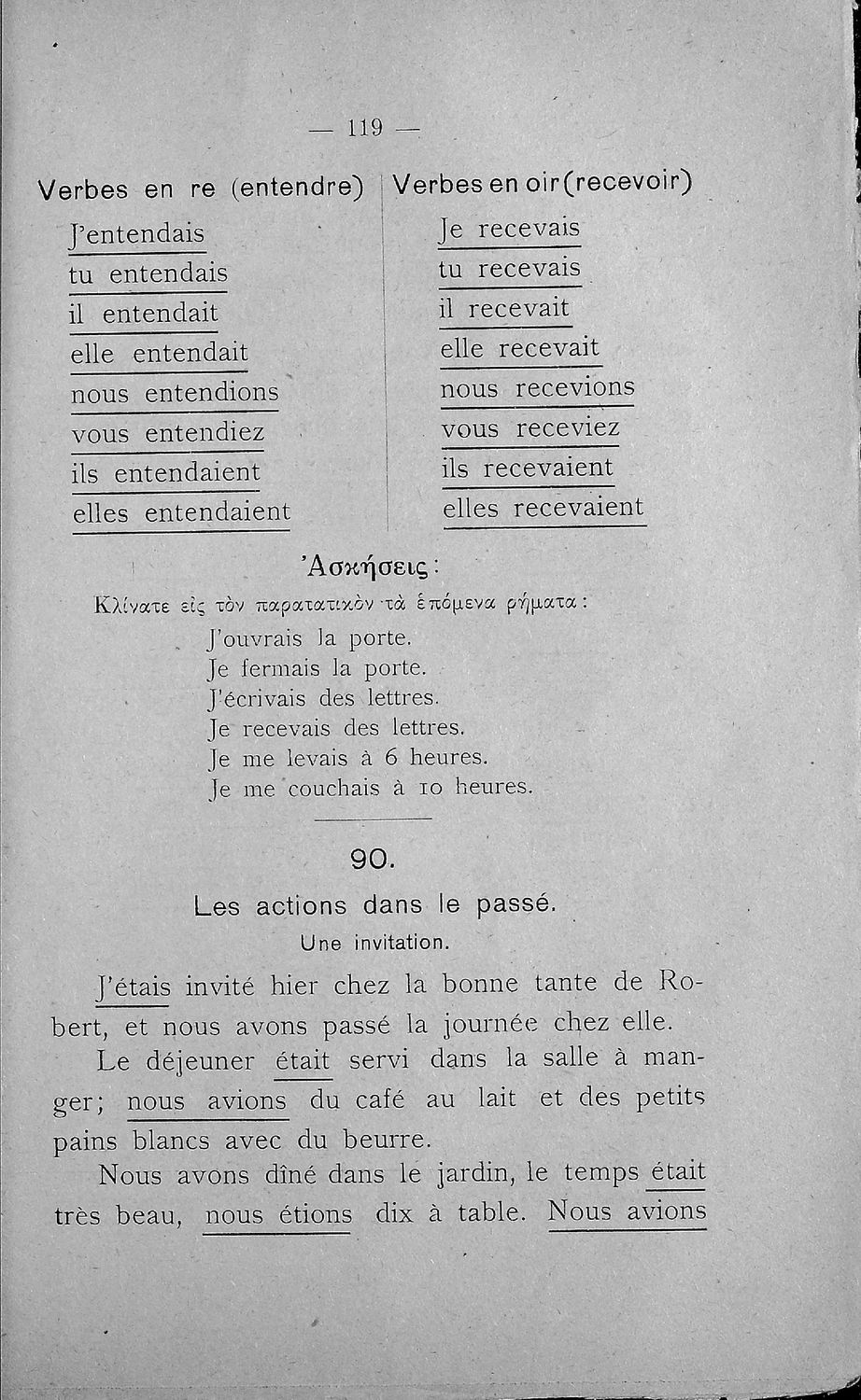 Σχολικό εγχειρίδιο Γαλλικών Β΄ και Γ' Ελληνικού Σχολείου, Αστικού Σχολείου και Παρθεναγωγείου που περιλαμβάνει κείμενα, κανόνες γραμματικής και συντακτικού, ερωτήσεις και ασκήσεις κατανόησης, και λεξιλογικά ...