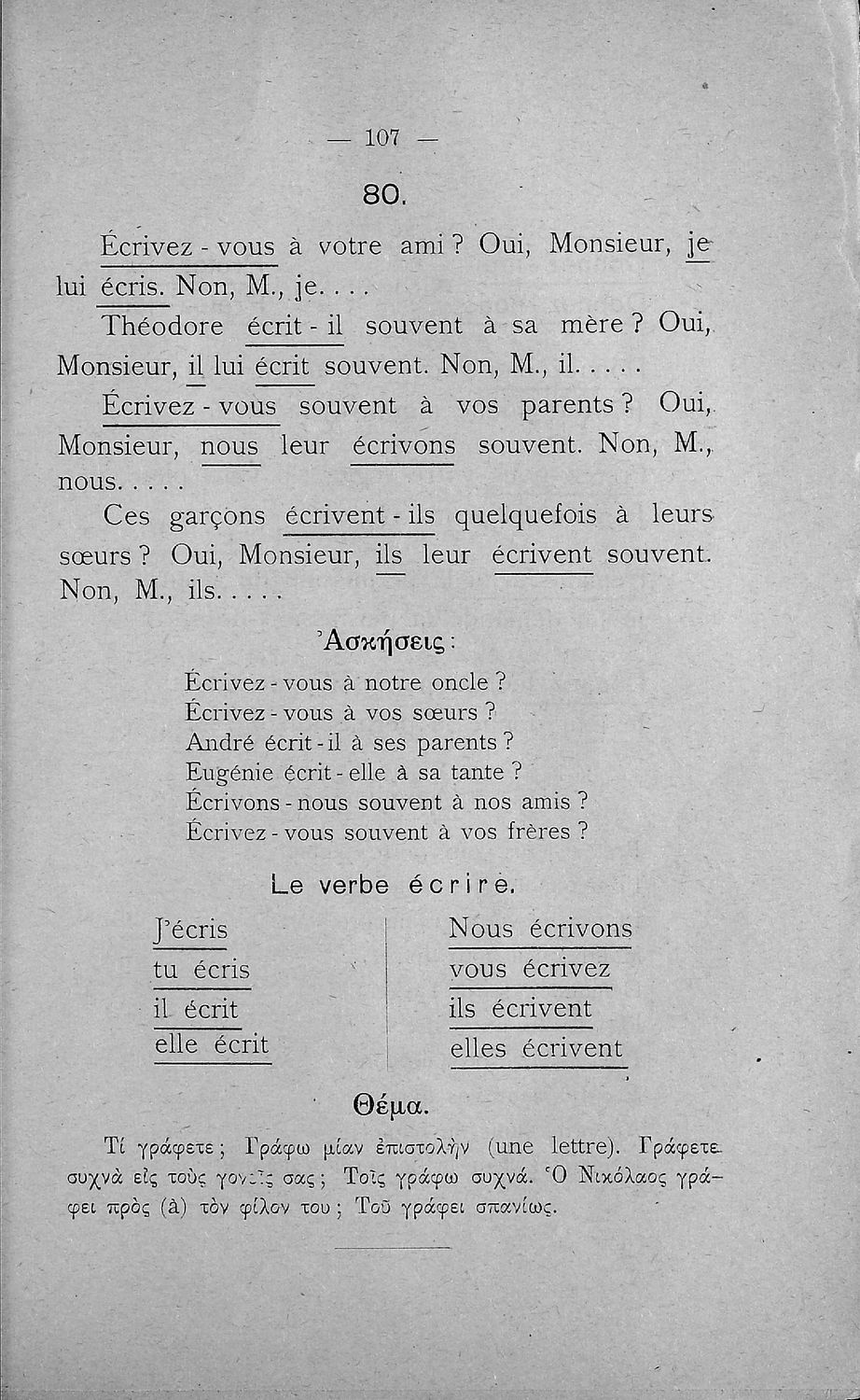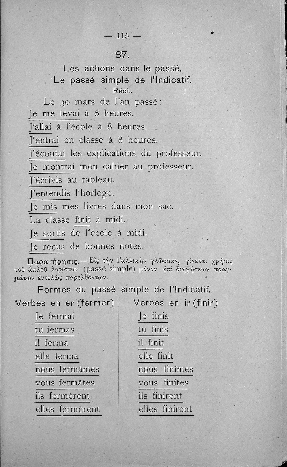 Γραμματική της Γαλλικής γλώσσας για τα Τετρατάξια Γυμνάσια, τη Γ΄ τάξη των Αστικών Σχολείων των Θηλέων και τα Διδασκαλεία της Δημοτικής Εκπαίδευσης που περιλαμβάνει θεωρία, ασκήσεις και λεξιλόγιο.
