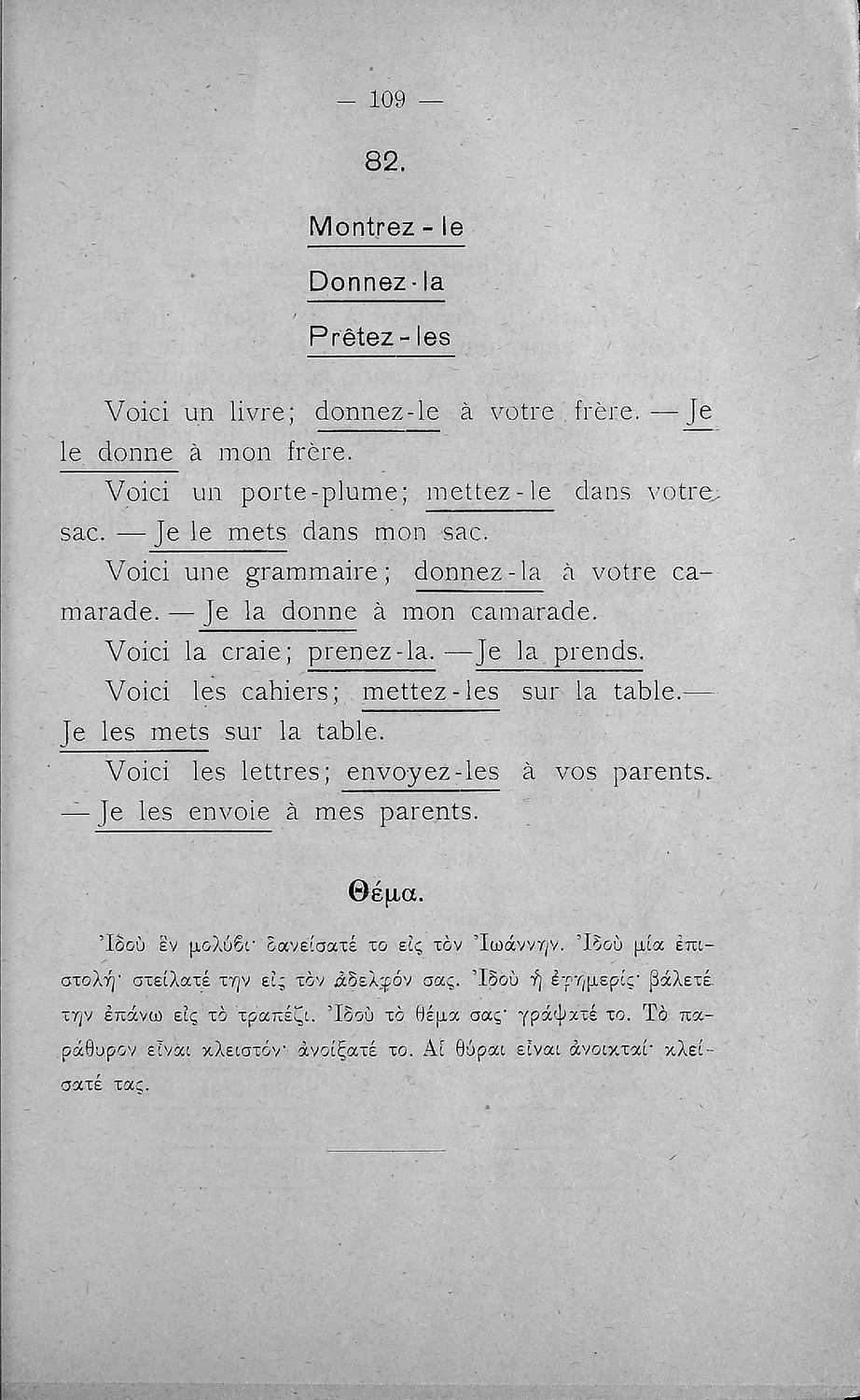 Τίτλος: Γραμματική της γαλλικής γλώσσης τα πρώτα μαθήματα δια την Β΄ και Γ΄ τάξιν των Ελληνικών Σχολείων και τας αντιστοίχους τάξεις των Αστικών Σχολείων και Παρθεναγωγείων