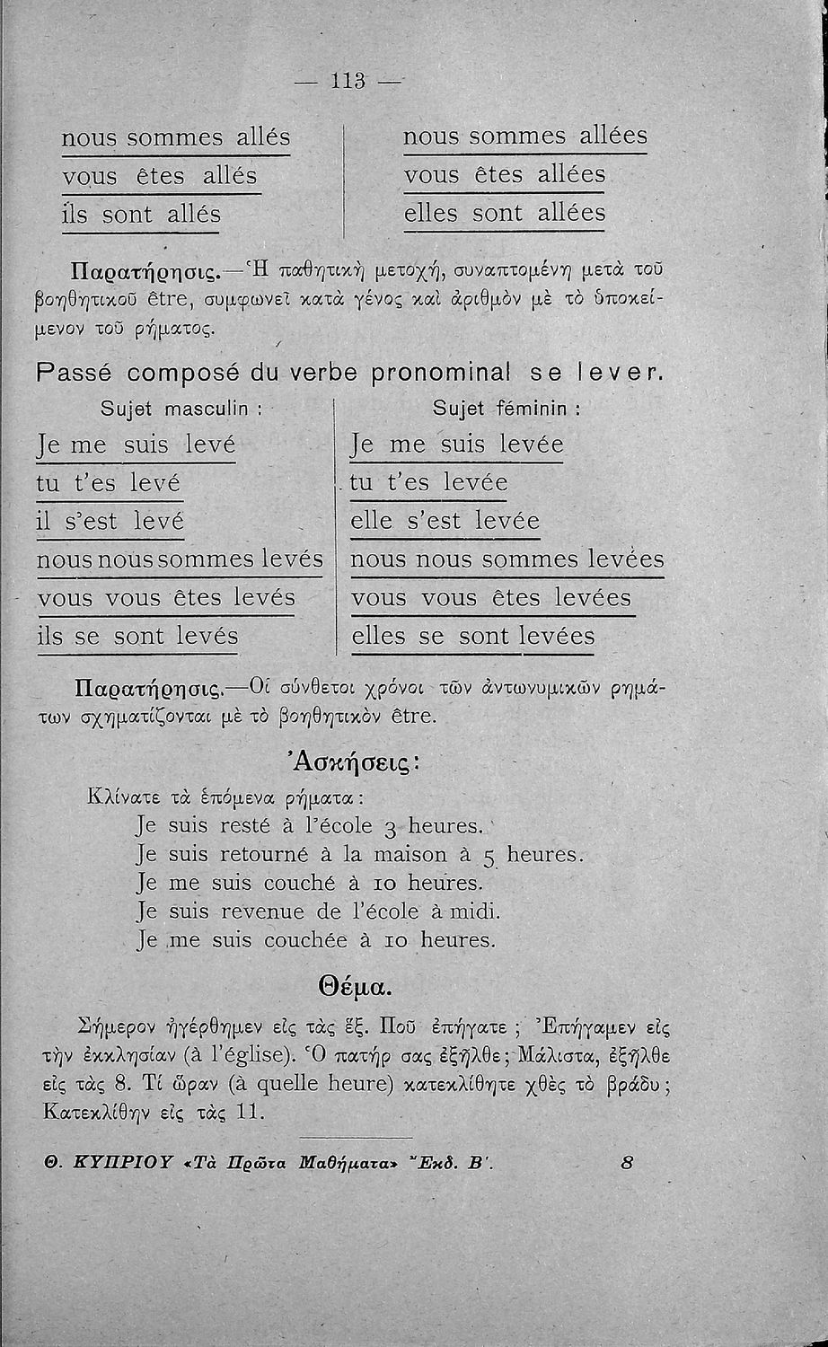 Γραμματική της γαλλικής γλώσσης τα πρώτα μαθήματα δια την Β΄ και Γ΄ τάξιν των Ελληνικών Σχολείων και τας αντιστοίχους τάξεις των Αστικών Σχολείων και Παρθεναγωγείων
