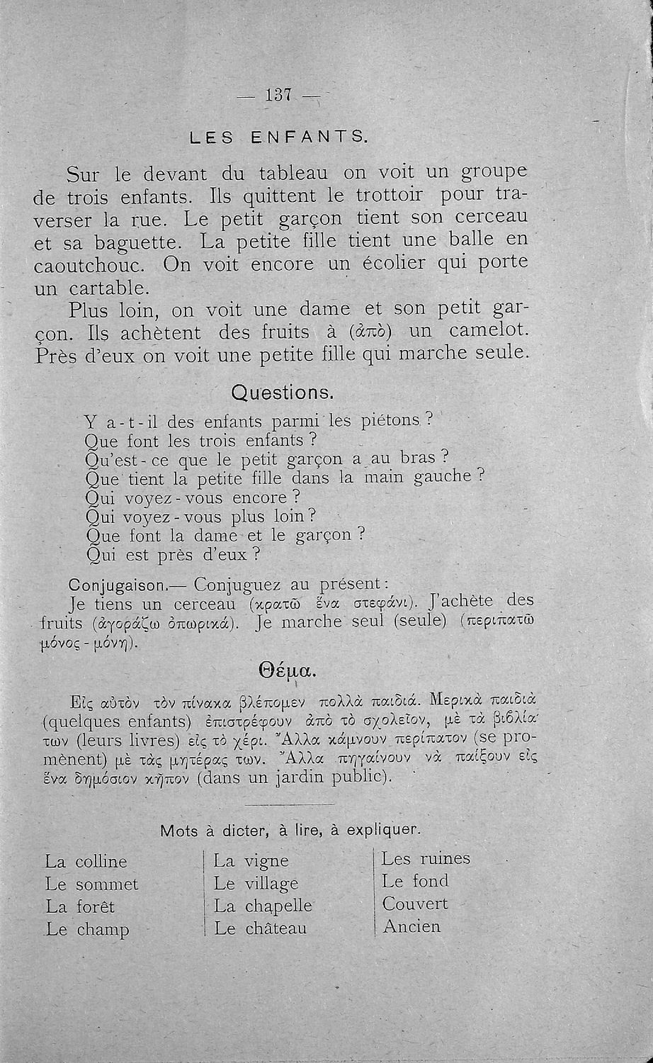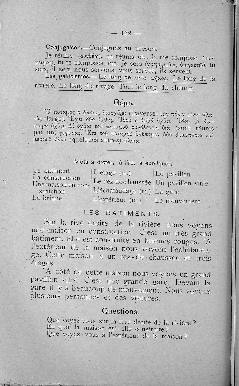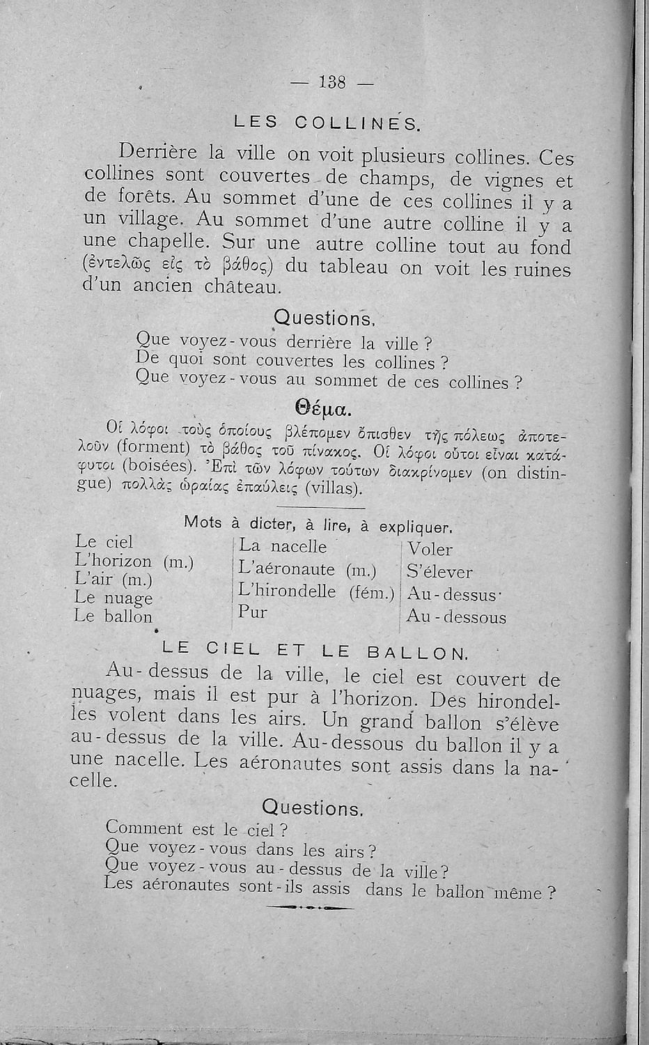 Σχολικό εγχειρίδιο Γαλλικών Β΄ και Γ' Ελληνικού Σχολείου, Αστικού Σχολείου και Παρθεναγωγείου που περιλαμβάνει κείμενα, κανόνες γραμματικής και συντακτικού, ερωτήσεις και ασκήσεις κατανόησης, και λεξιλογικά ...