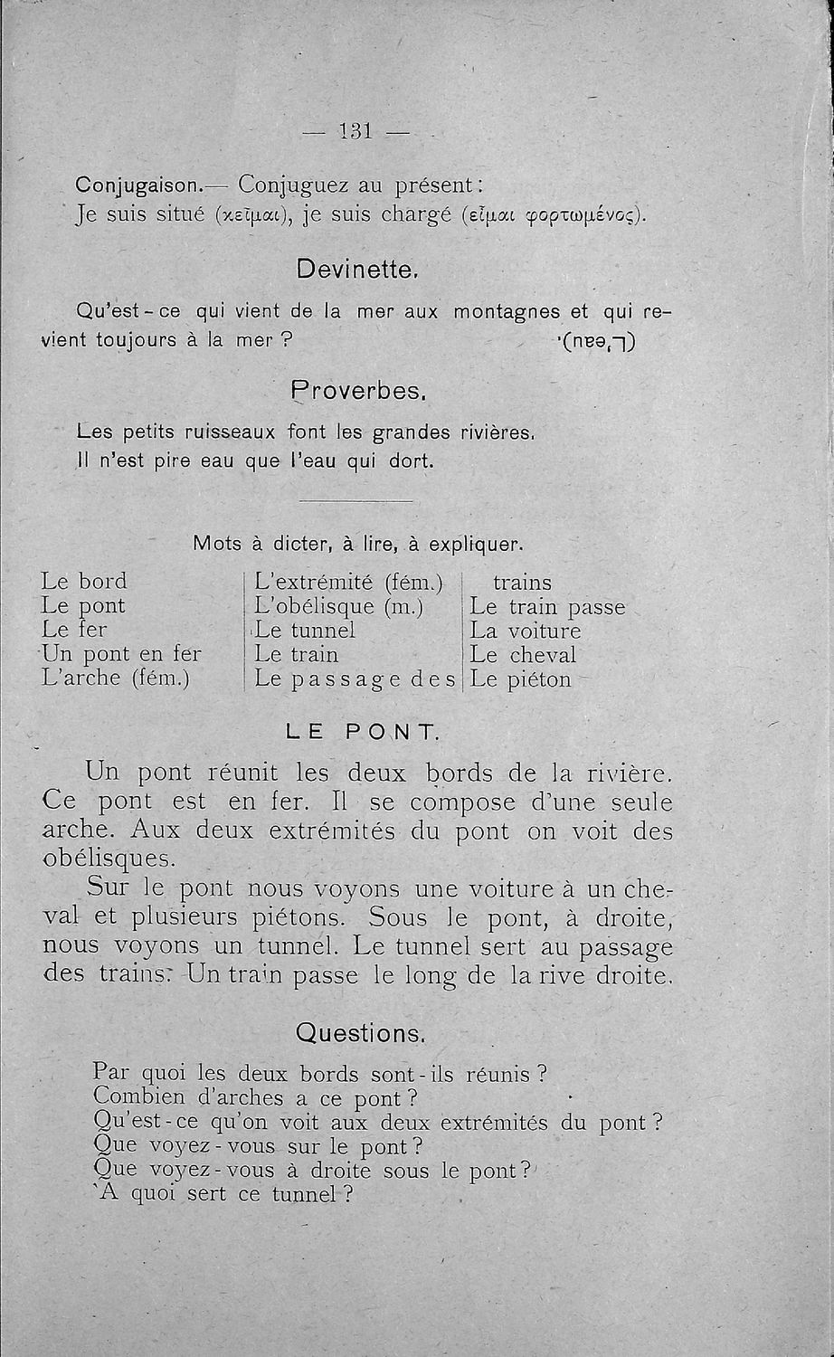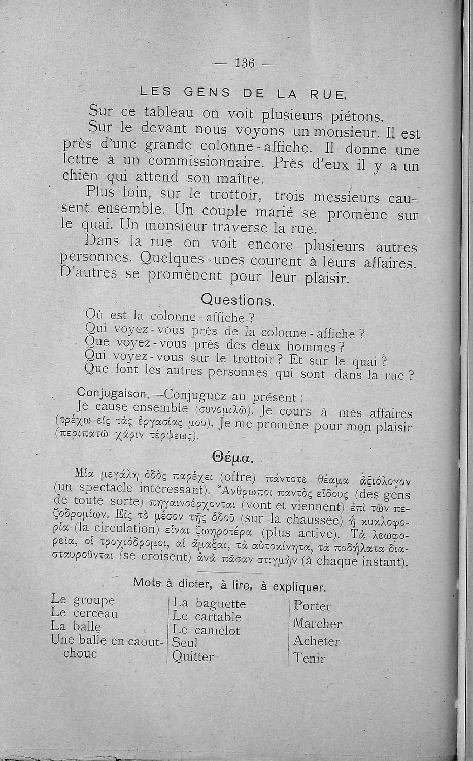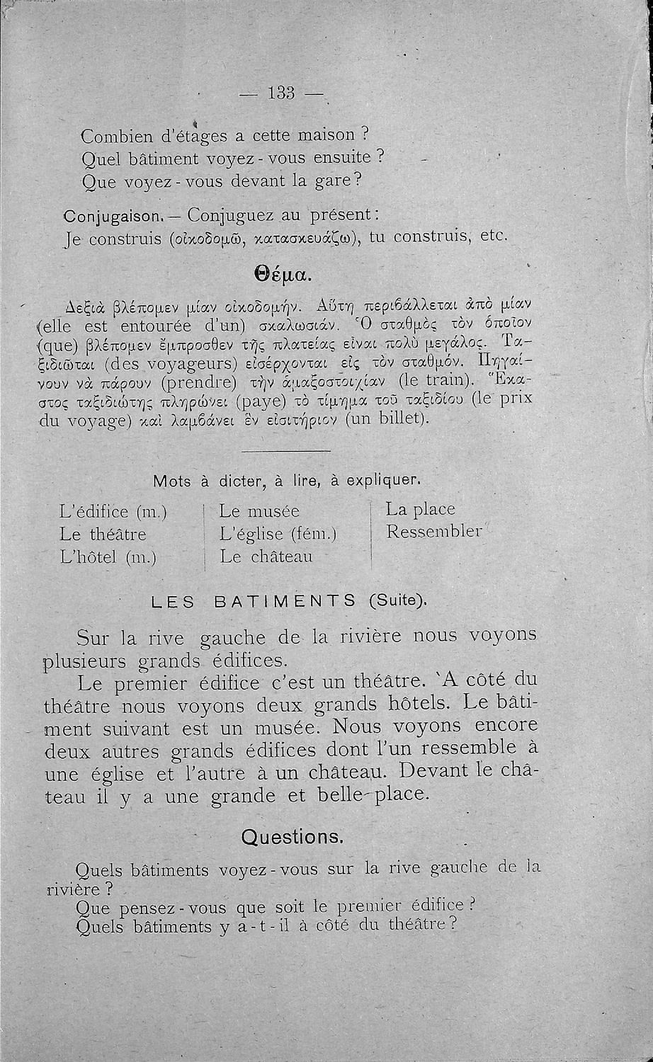 Σχολικό εγχειρίδιο Γαλλικών Β΄ και Γ' Ελληνικού Σχολείου, Αστικού Σχολείου και Παρθεναγωγείου που περιλαμβάνει κείμενα, κανόνες γραμματικής και συντακτικού, ερωτήσεις και ασκήσεις κατανόησης, και λεξιλογικά ...
