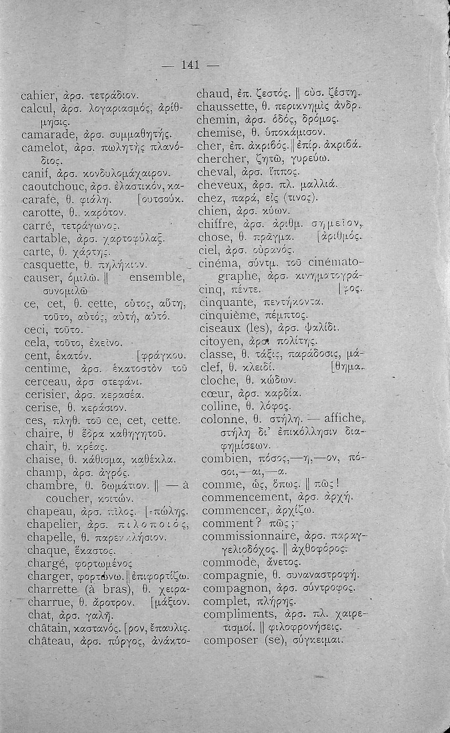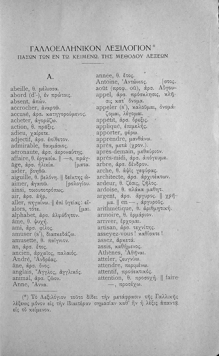 Γραμματική της Γαλλικής γλώσσας για τα Τετρατάξια Γυμνάσια, τη Γ΄ τάξη των Αστικών Σχολείων Θηλέων και τα Διδασκαλεία της Δημοτικής Εκπαίδευσης που περιλαμβάνει θεωρία, ασκήσεις και λεξιλόγιο.