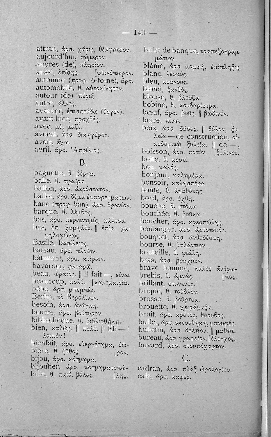 Σχολικό εγχειρίδιο Γαλλικών για τις Β΄ και Γ' Ελληνικού Σχολείου, Αστικού Σχολείου και Παρθεναγωγείου που περιλαμβάνει κείμενα, κανόνες γραμματικής και συντακτικού, λεξιλογικά και πραγματολογικά σχόλια.