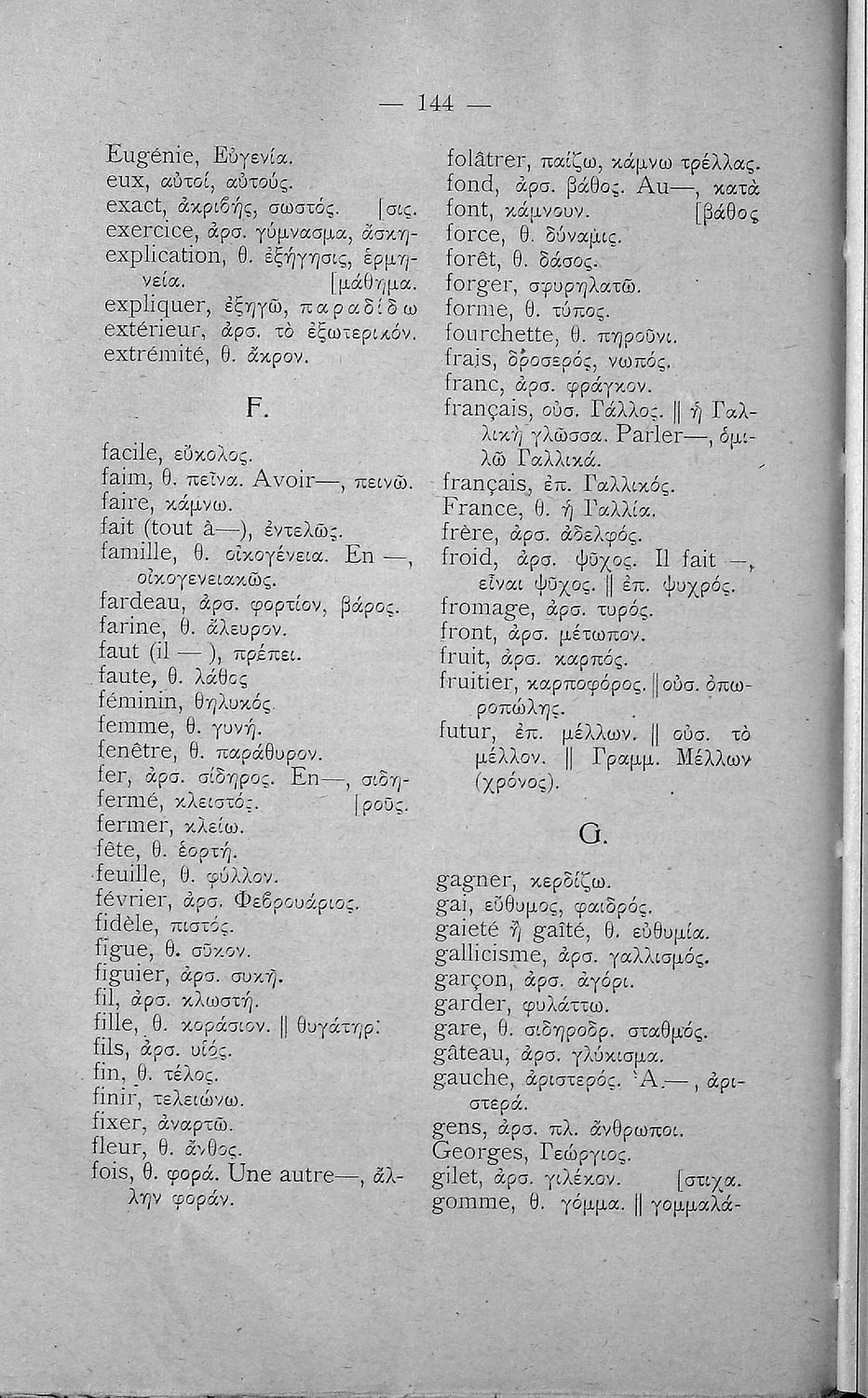 Γραμματική της Γαλλικής γλώσσας για τα Τετρατάξια Γυμνάσια, τη Γ΄ τάξη των Αστικών Σχολείων Θηλέων και τα Διδασκαλεία της Δημοτικής Εκπαίδευσης που περιλαμβάνει θεωρία, ασκήσεις και λεξιλόγιο.