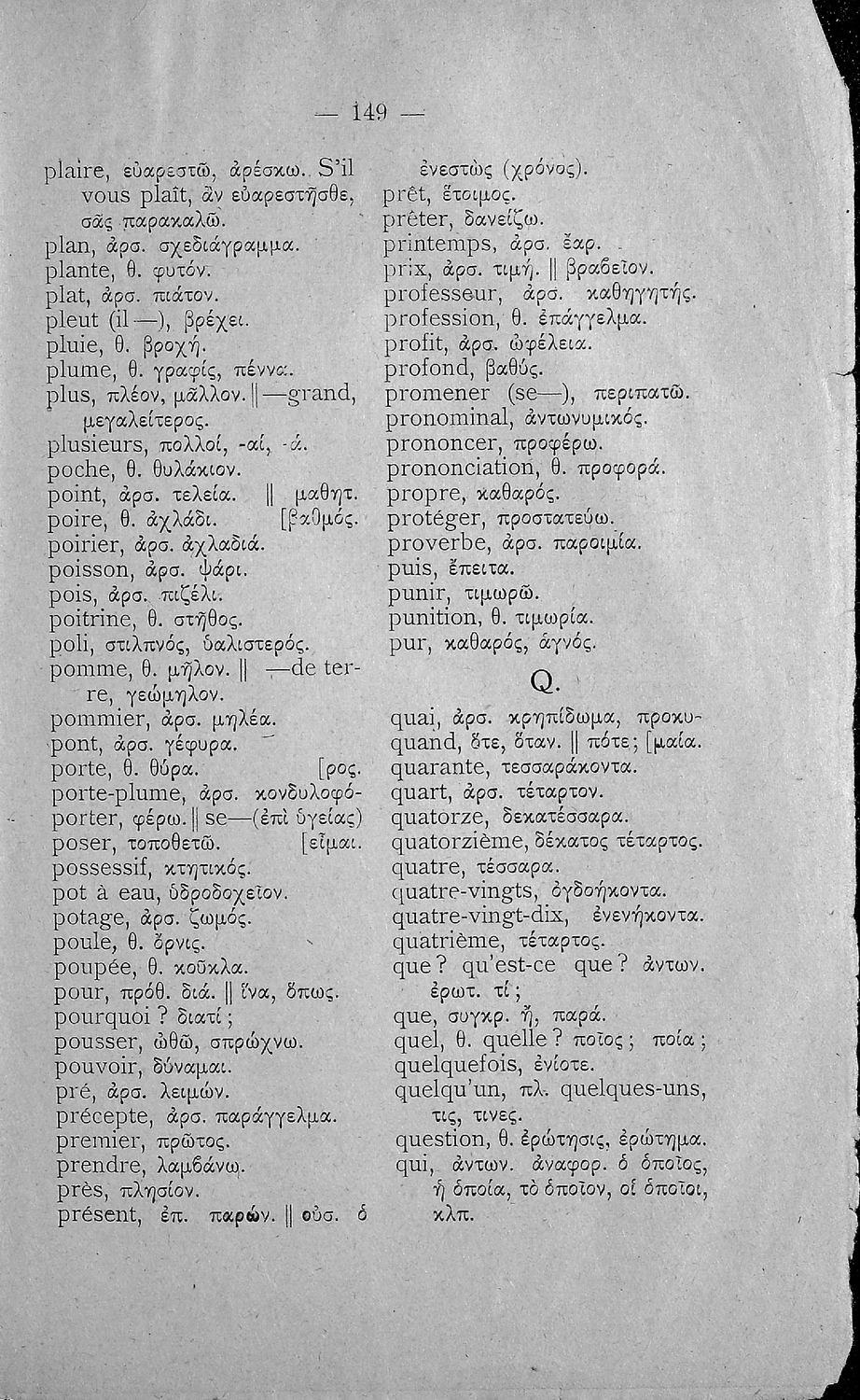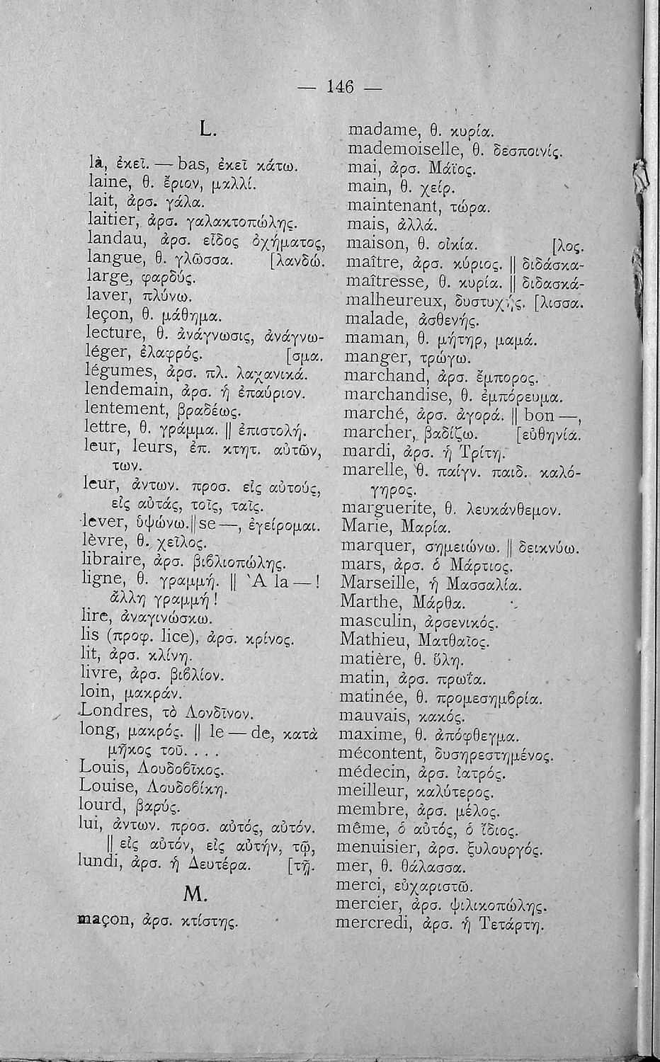 Σχολικό εγχειρίδιο Γαλλικών για τις Β΄ και Γ' Ελληνικού Σχολείου, Αστικού Σχολείου και Παρθεναγωγείου που περιλαμβάνει κείμενα, κανόνες γραμματικής και συντακτικού, και λεξιλογικά και πραγματολογικά σχόλια.