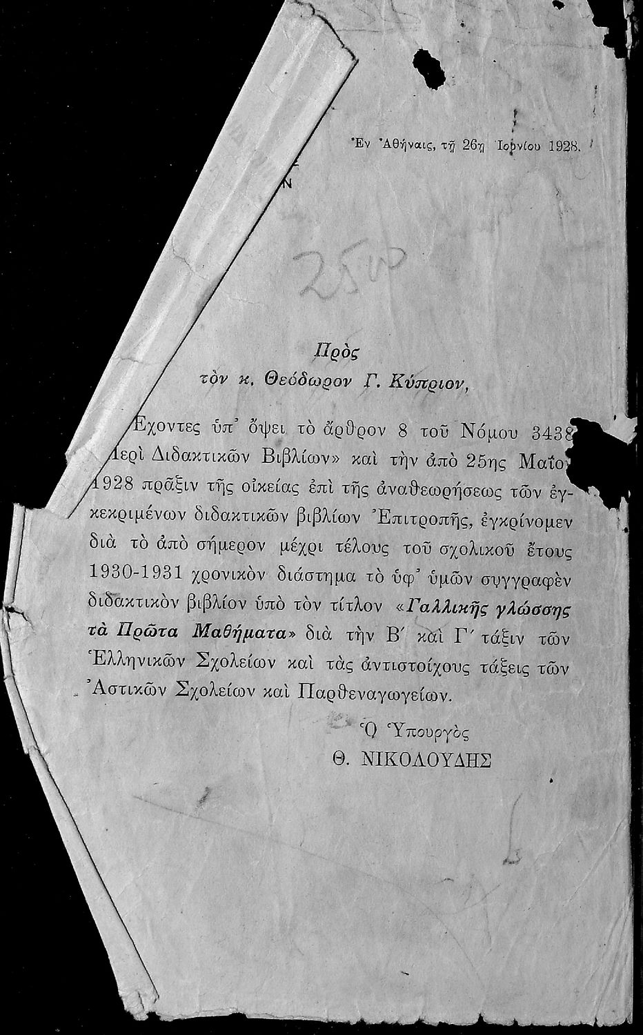 Υπουργική απόφαση / Σύμβαση: 20987/26-6-1928