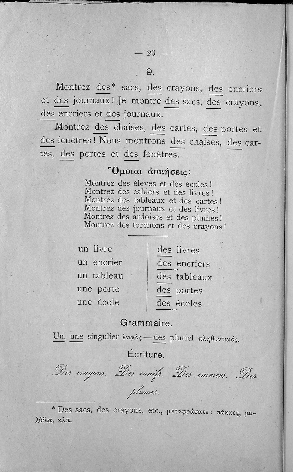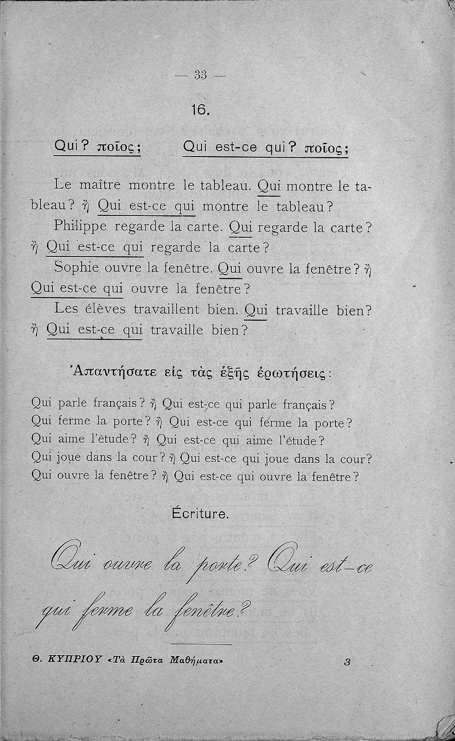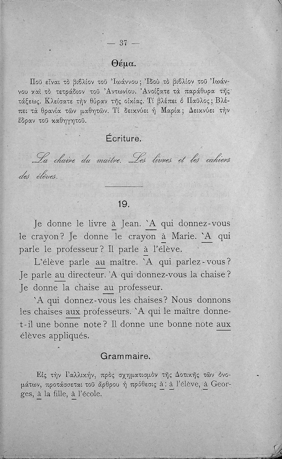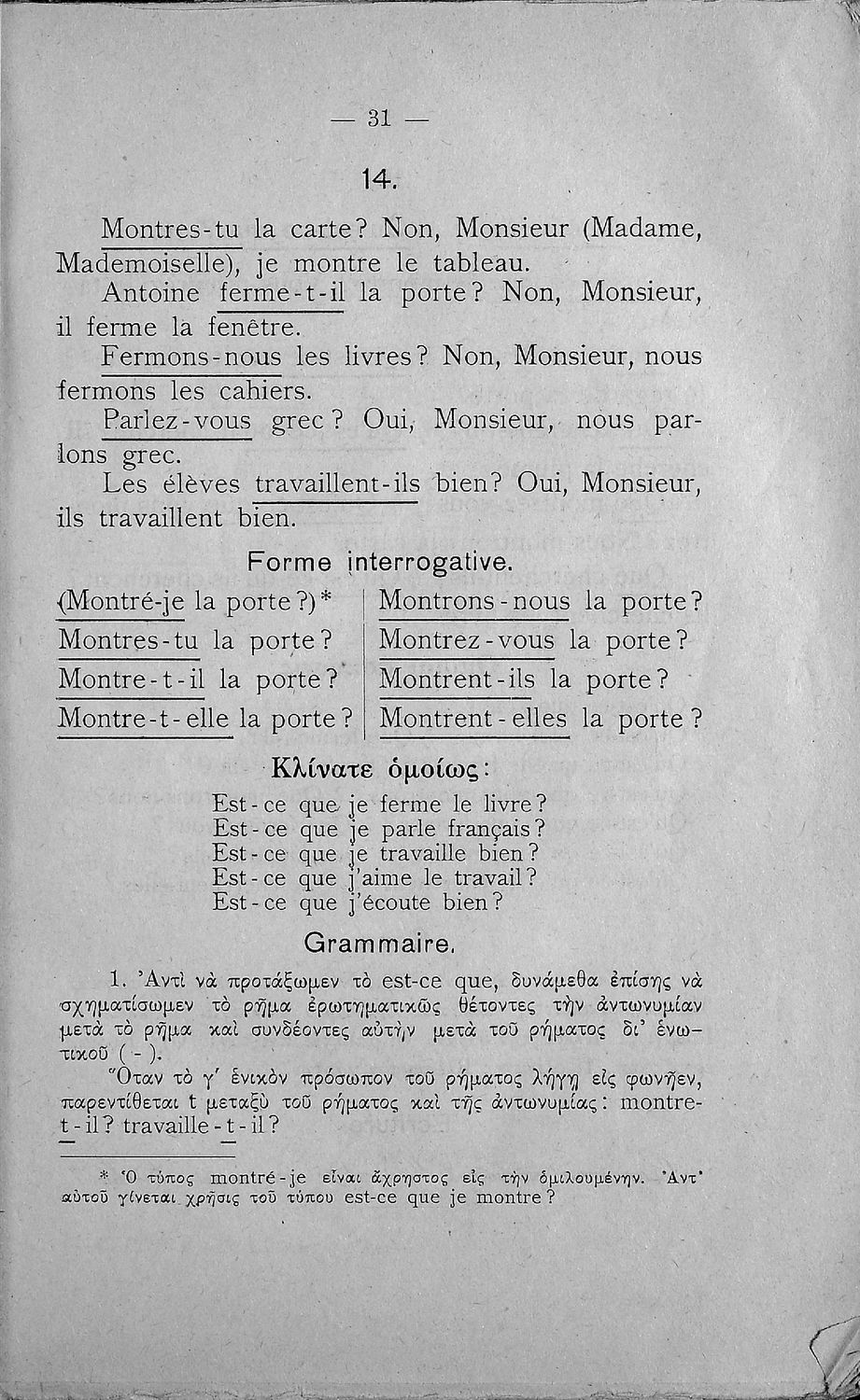 Γραμματική της γαλλικής γλώσσης τα πρώτα μαθήματα δια την Β΄ και Γ΄ τάξιν των Ελληνικών Σχολείων και τας αντιστοίχους τάξεις των Αστικών Σχολείων και Παρθεναγωγείων