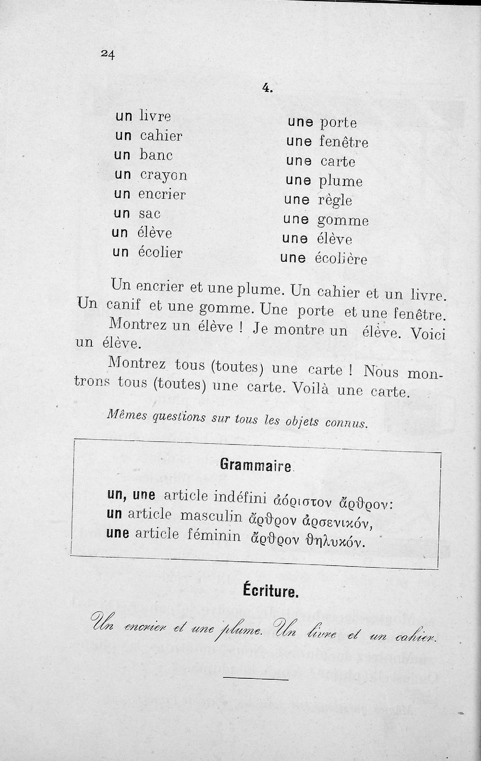 Γαλλικόν βιβλίον της Α’ τάξεως τα πρώτα μαθήματα