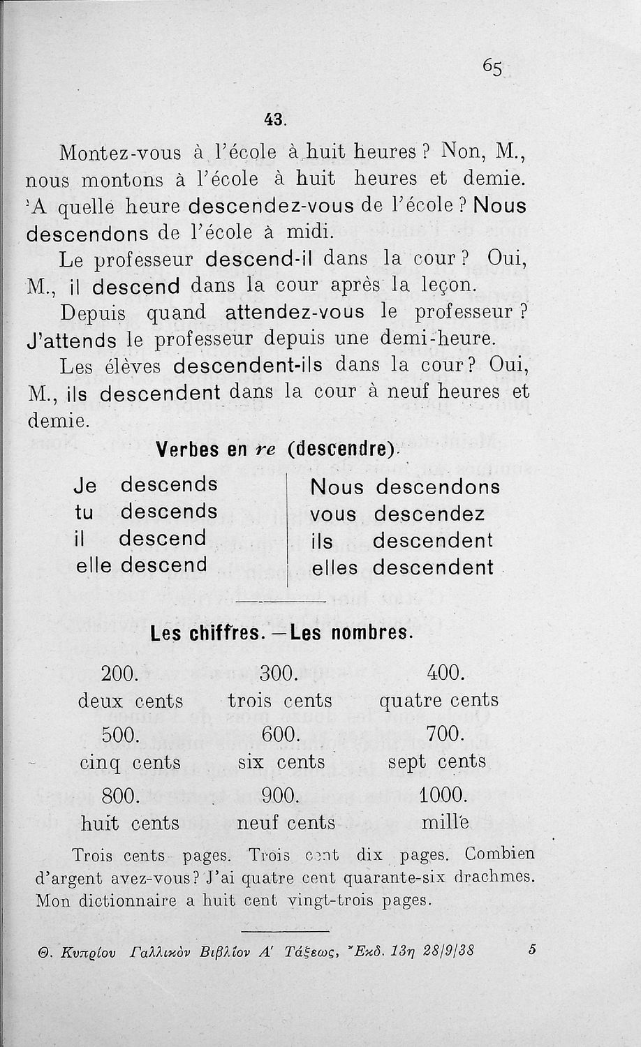 Τίτλος: Γαλλικόν βιβλίον της Α’ τάξεως τα πρώτα μαθήματα