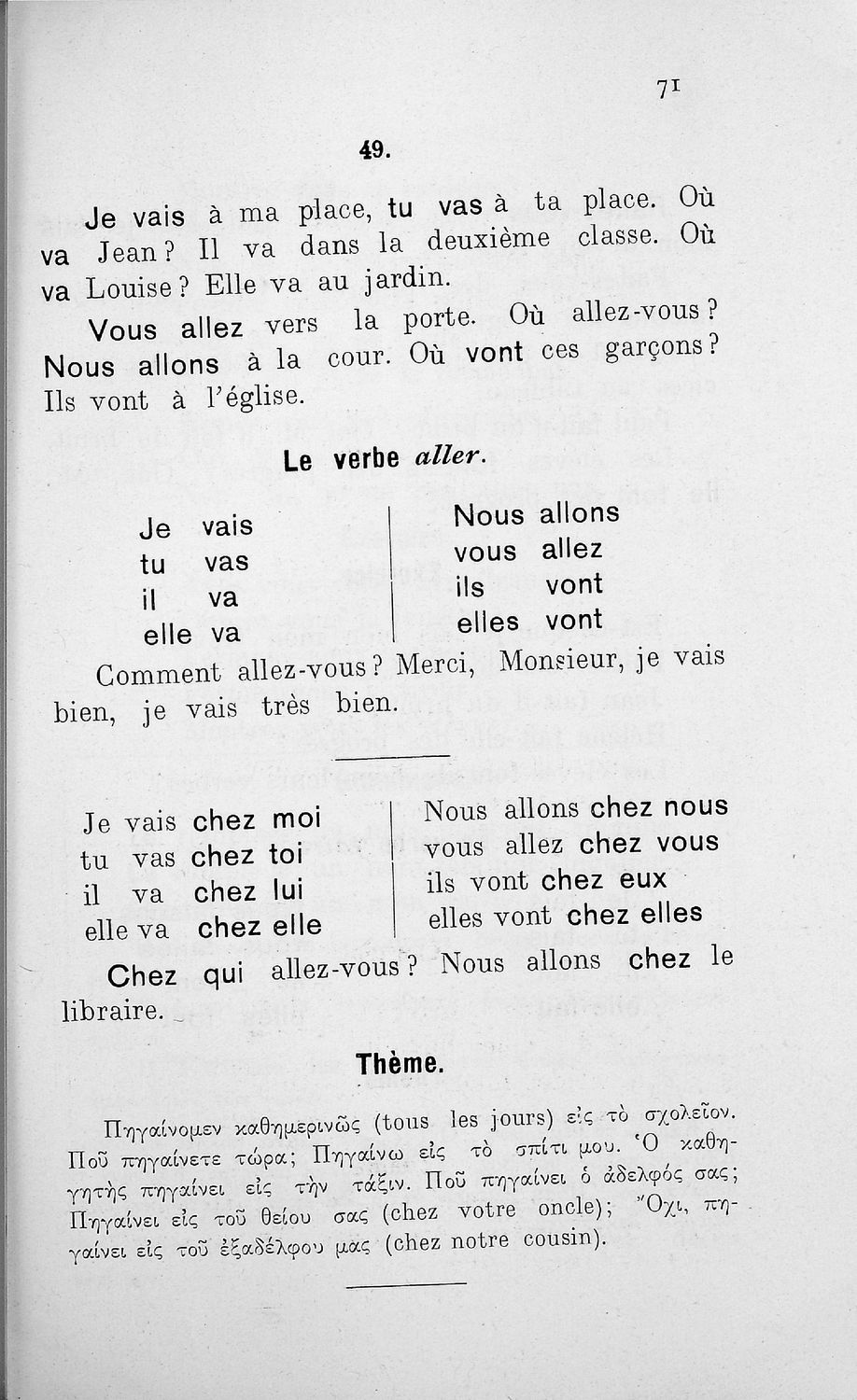 Γαλλικόν βιβλίον της Α’ τάξεως τα πρώτα μαθήματα