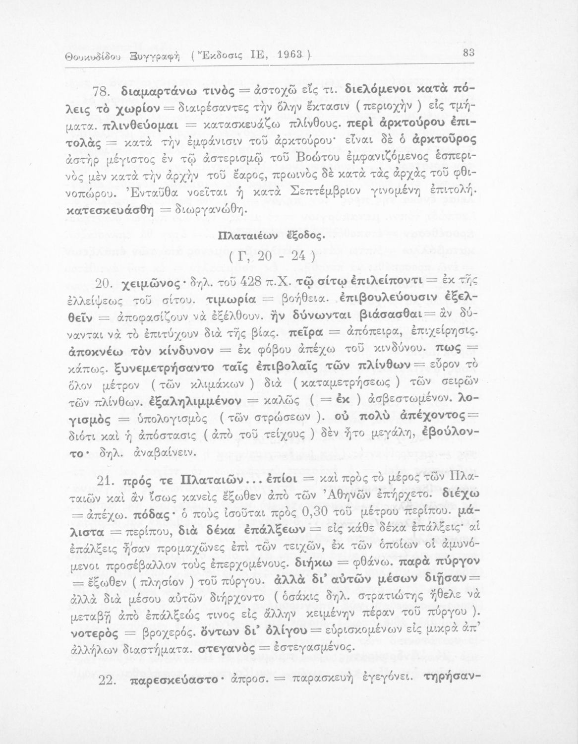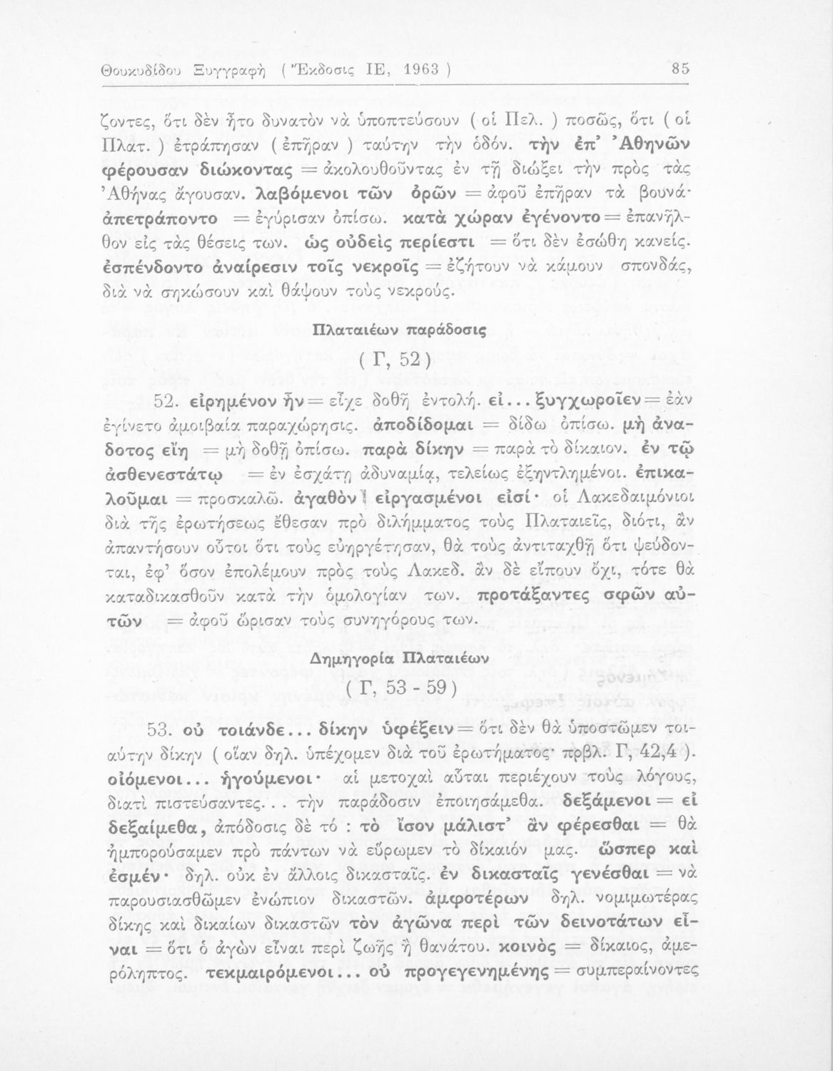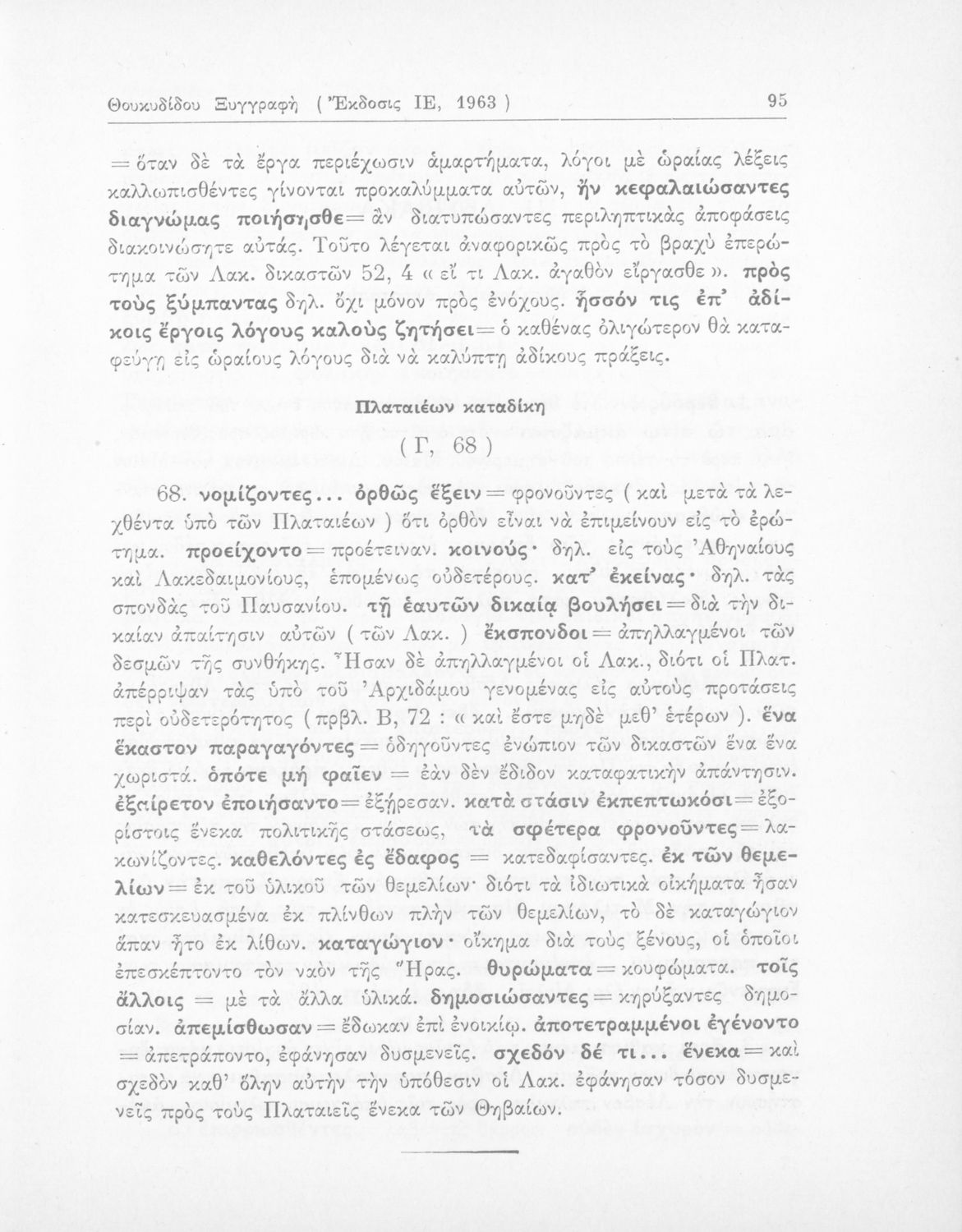 Σχολικό εγχειρίδιο Αρχαίων Ελληνικών για τις Δ΄, Ε΄ και ΣΤ΄ Γυμνασίου παλαιού τύπου που περιλαμβάνει σύντομο βιογραφικό σημείωμα του Θουκυδίδη, περιγραφή του ιστορικού πλαισίου, αποσπάσματα από τα Πλαταϊκά, τα