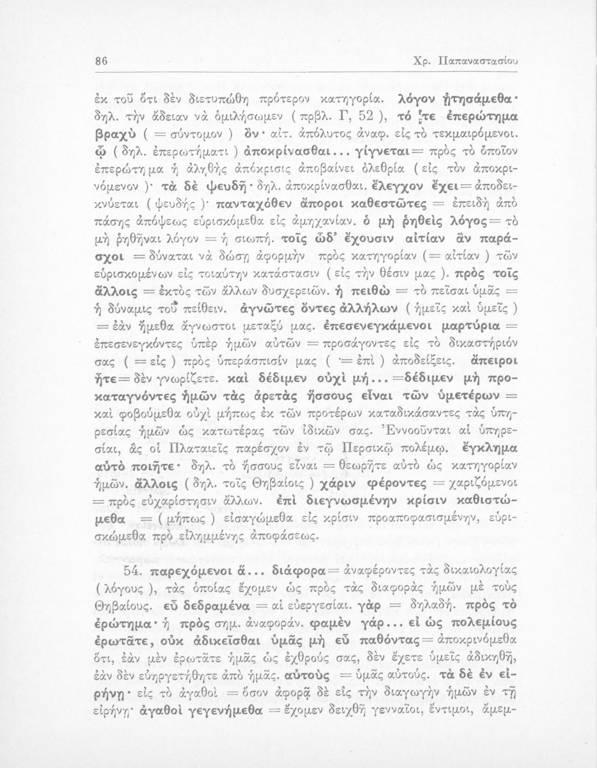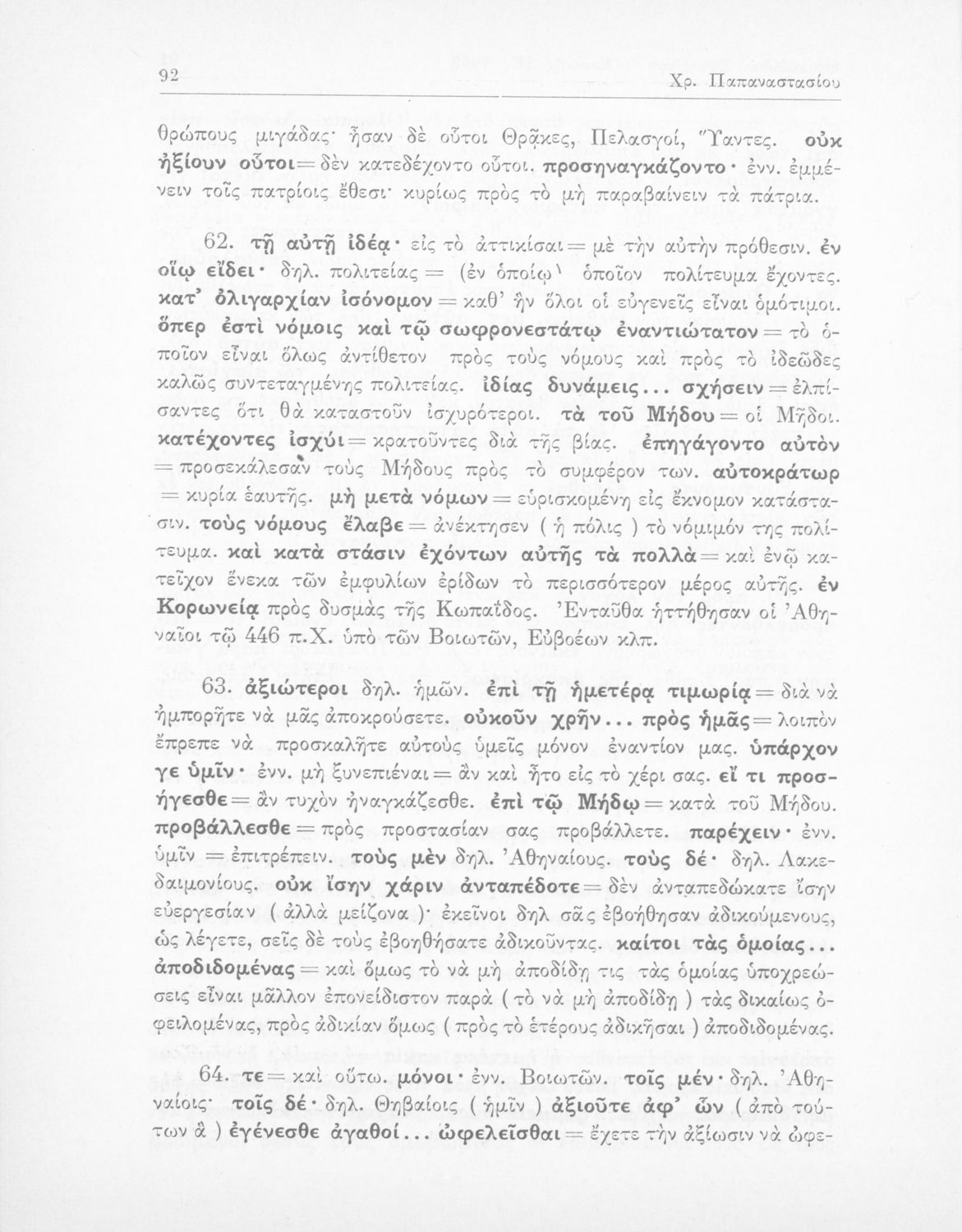 Θουκυδίδης, Χρίστος Παπαναστασίου (σχόλια)