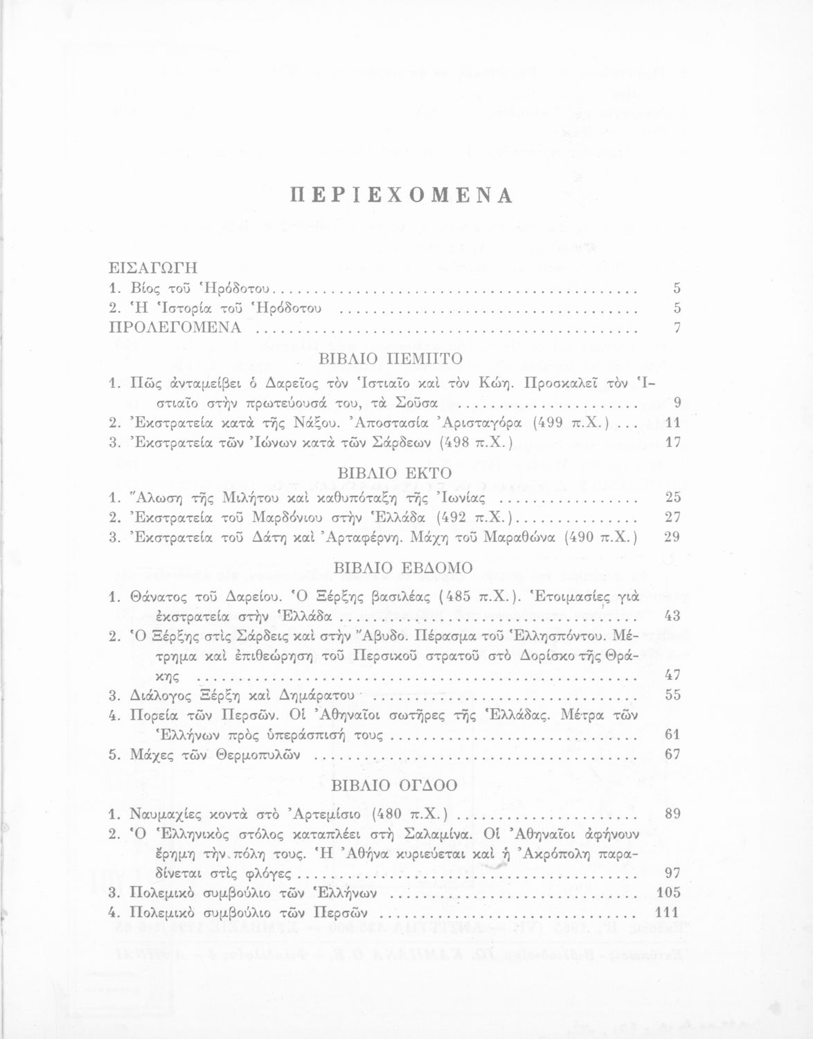520 ## _aΣχολικό εγχειρίδιο Αρχαίων Ελληνικών Γυμνασίου που περιέχει αποσπάσματα από το έργο του Ηρόδοτου Περσικοί Πόλεμοι, μετάφραση, εισαγωγή στη ζωή και το έργο του, και ερμηνευτικά σχόλια. Περιλαμβάνει παράρτημα με χάρτες και σχεδιαγράμματα.