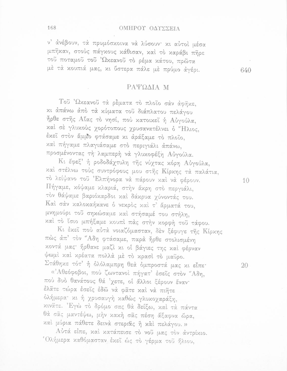 Σχολικό εγχειρίδιο Αρχαίων Ελληνικών για τις τάξεις του Γυμνασίου. Βιβλίο Οδύσσειας του Ομήρου για το Γυμνάσιο. Το προοίμιο αναφέρεται στο πρωτότυπο κείμενο. Η μετάφραση είναι έμμετρη.