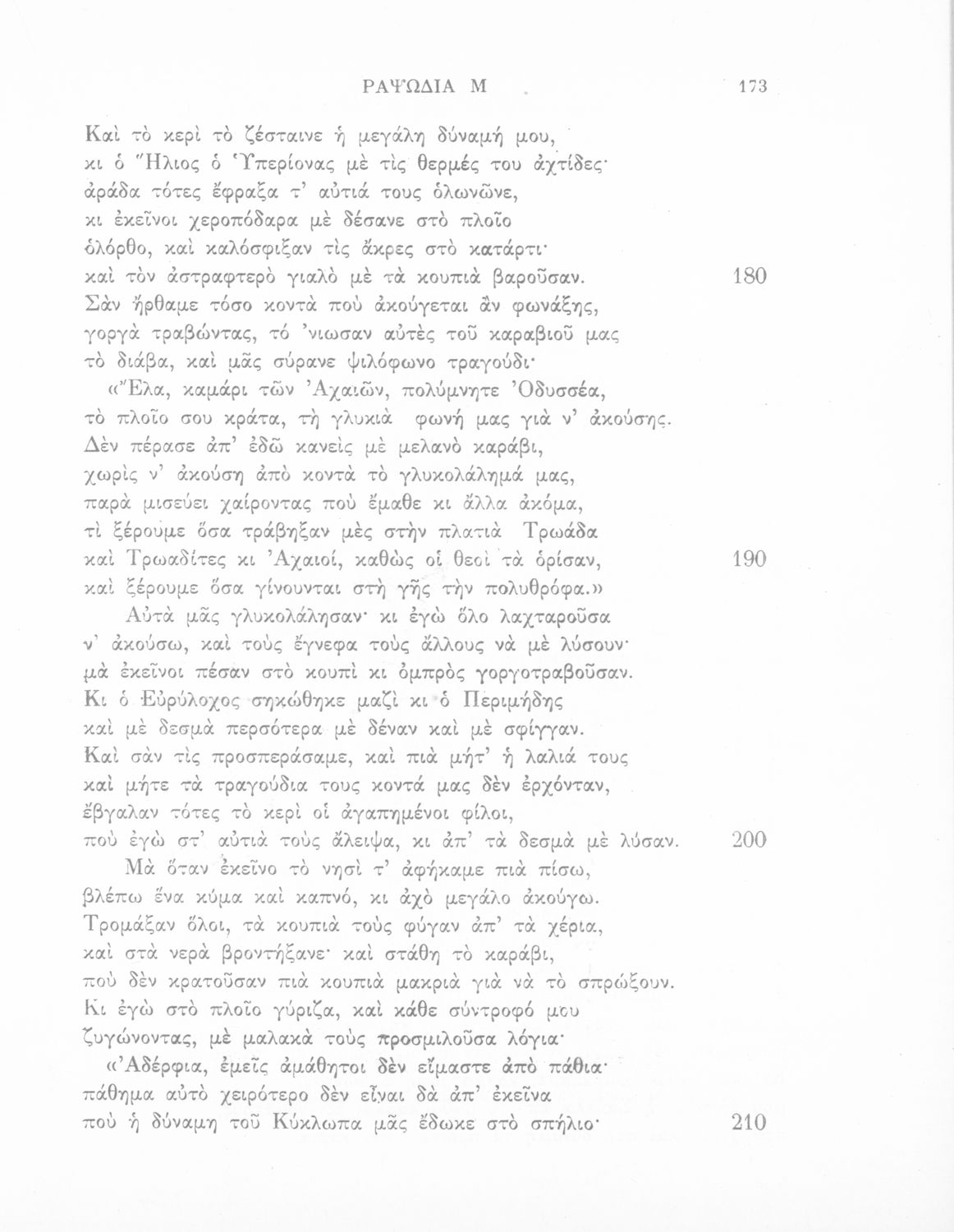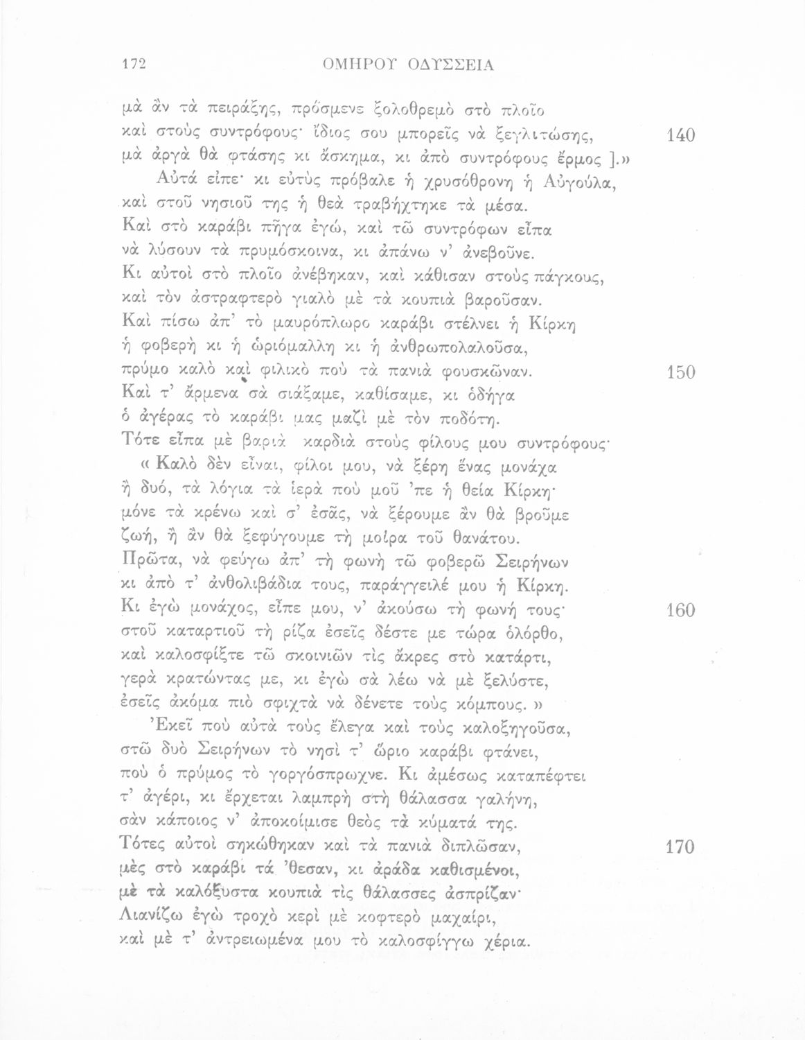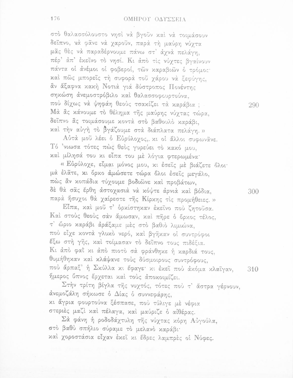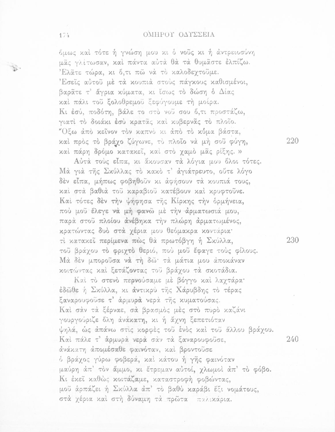 Σχολικό εγχειρίδιο του Γυμνασίου για το μάθημα των Αρχαίων Ελληνικών. Πρόκειται για το κείμενο της Οδύσσειας μεταφρασμένο στο τέλος περιλαμβάνει λεξιλόγιο.