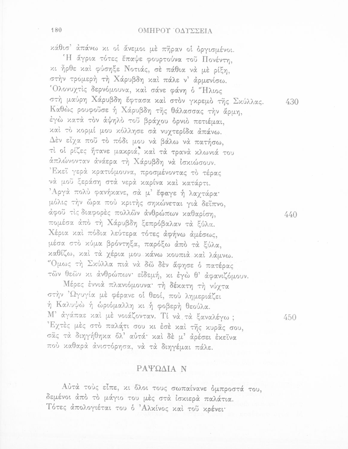 Παιδαγωγικό βοήθημα Αρχαίων Ελληνικών που περιλαμβάνει μετάφραση των ραψωδιών Ν-Ω της Οδύσσειας.