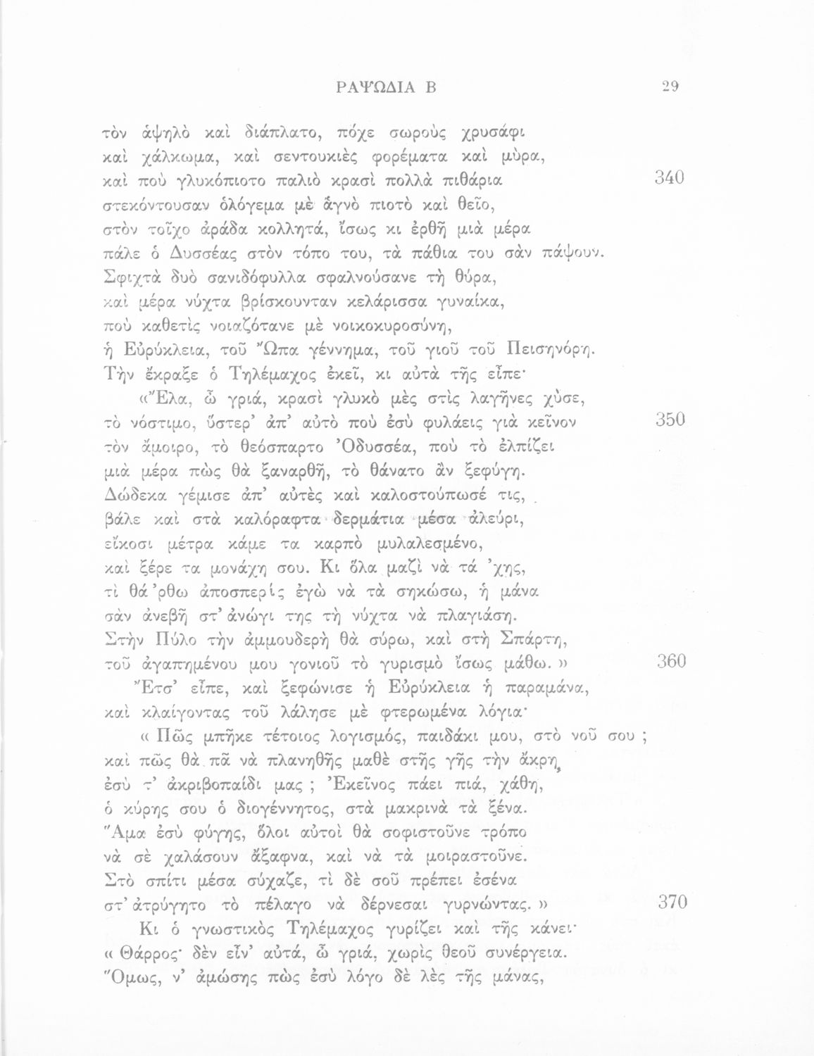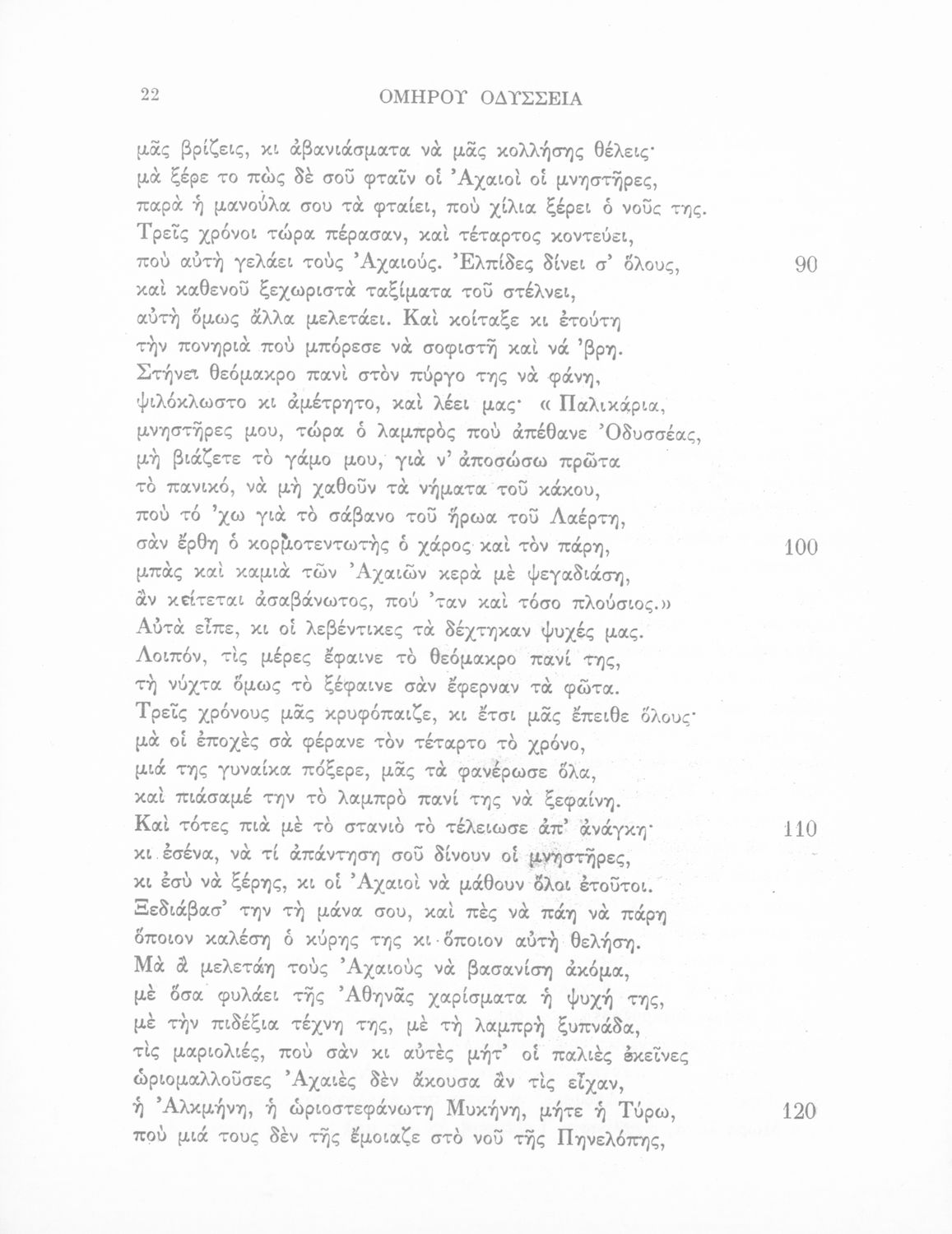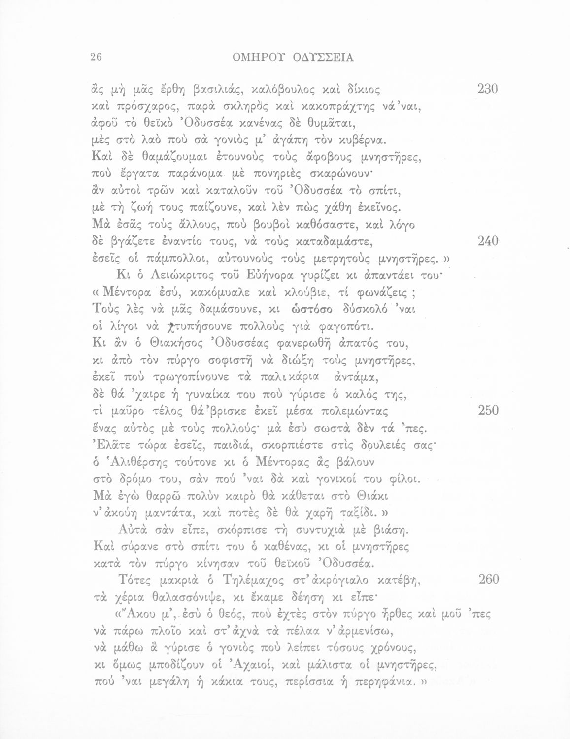 Σχολικό εγχειρίδιο Αρχαίων Ελληνικών για τις τάξεις του Γυμνασίου. Βιβλίο Οδύσσειας του Ομήρου για το Γυμνάσιο. Το προοίμιο αναφέρεται στο πρωτότυπο κείμενο. Η μετάφραση είναι έμμετρη.