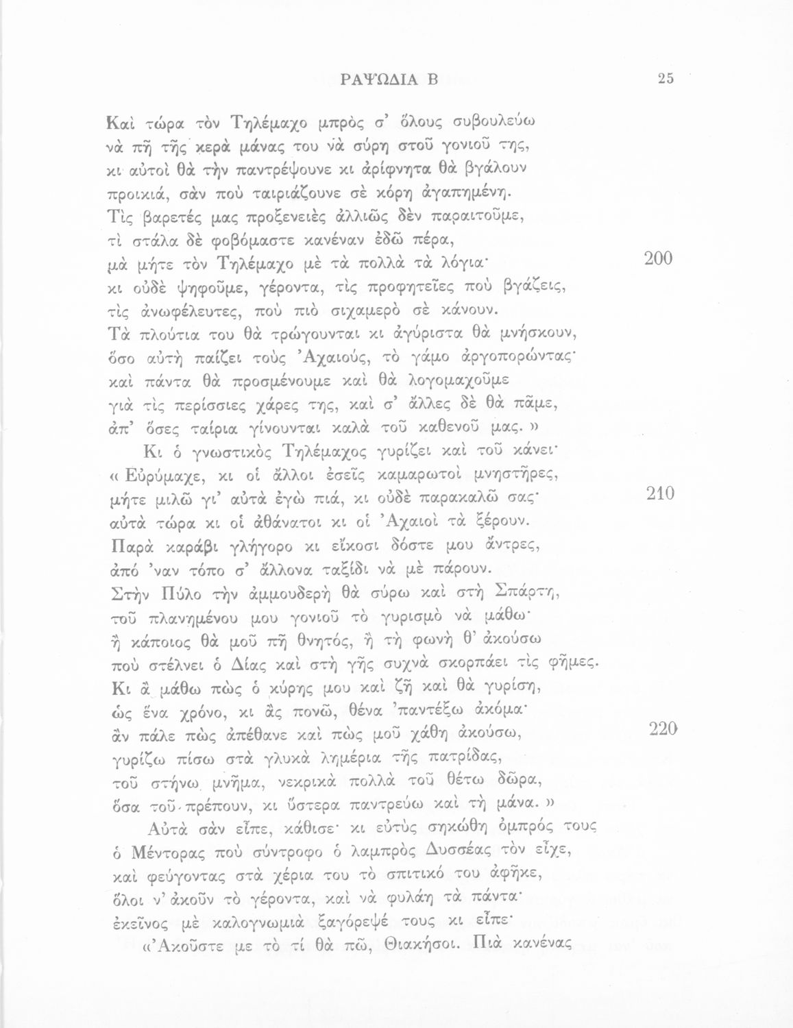 Παιδαγωγικό βοήθημα Αρχαίων Ελληνικών που περιλαμβάνει μετάφραση των ραψωδιών Ν-Ω της Οδύσσειας.