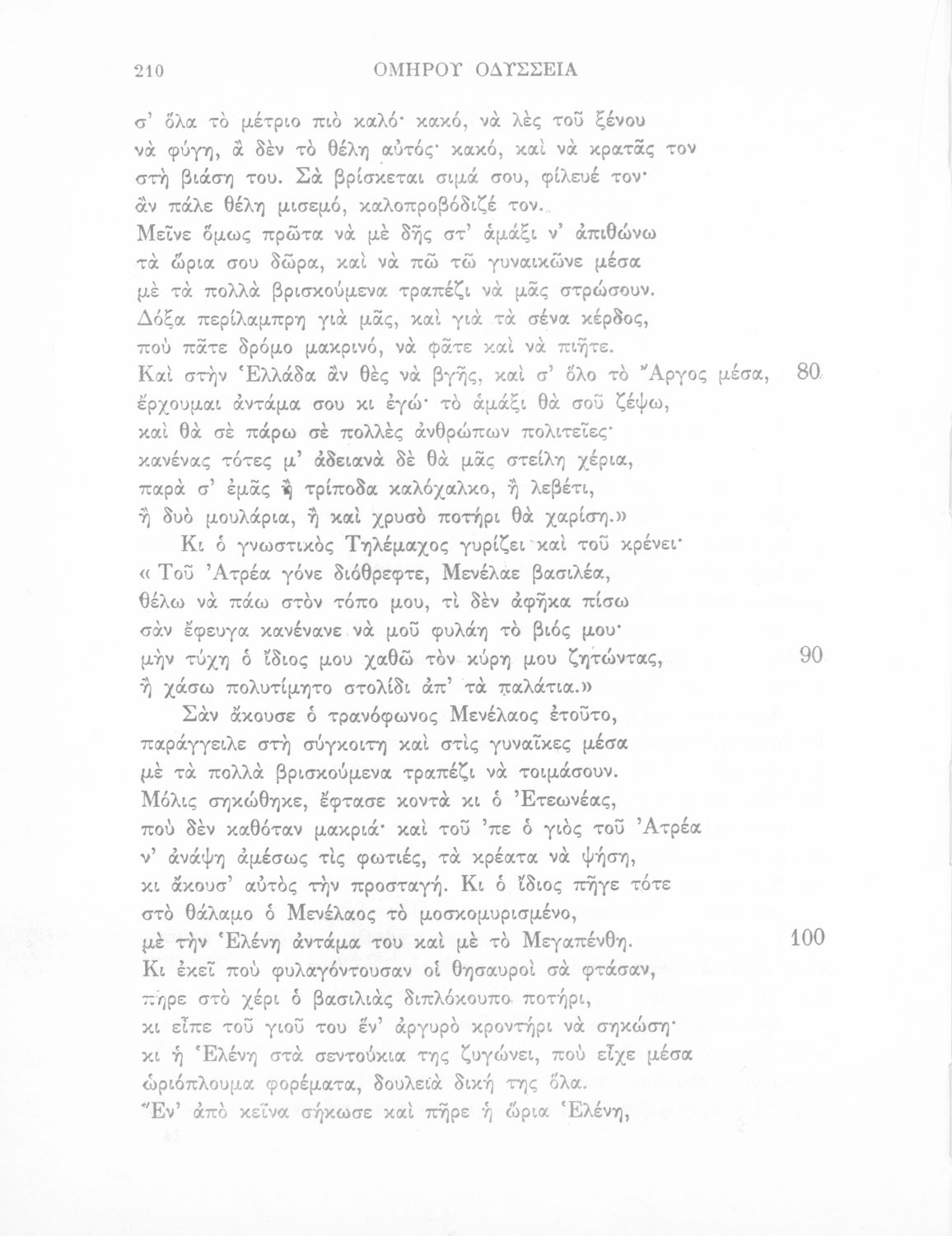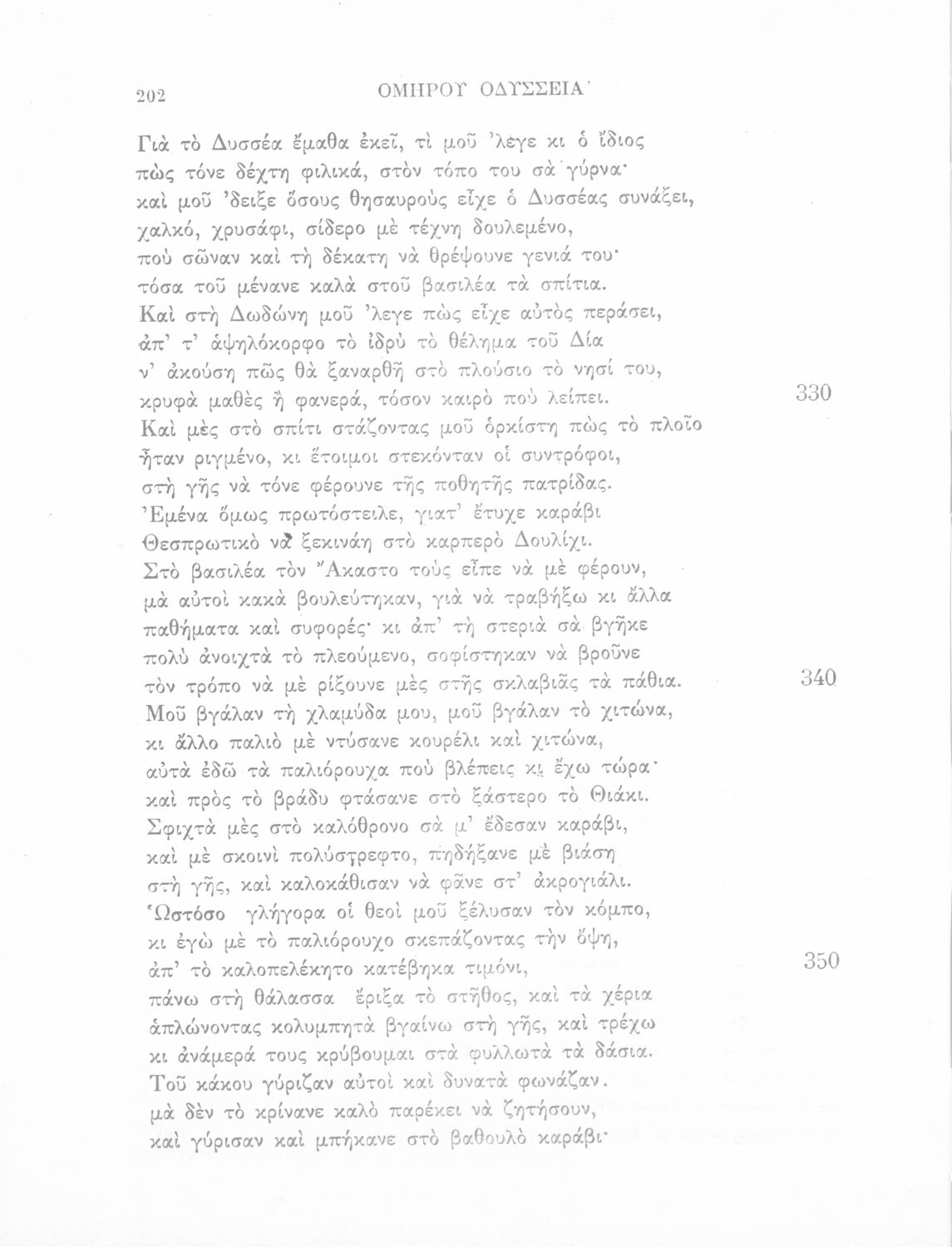 Σχολικό εγχειρίδιο του Γυμνασίου για το μάθημα των Αρχαίων Ελληνικών. Πρόκειται για το κείμενο της Οδύσσειας μεταφρασμένο στο τέλος περιλαμβάνει λεξιλόγιο.