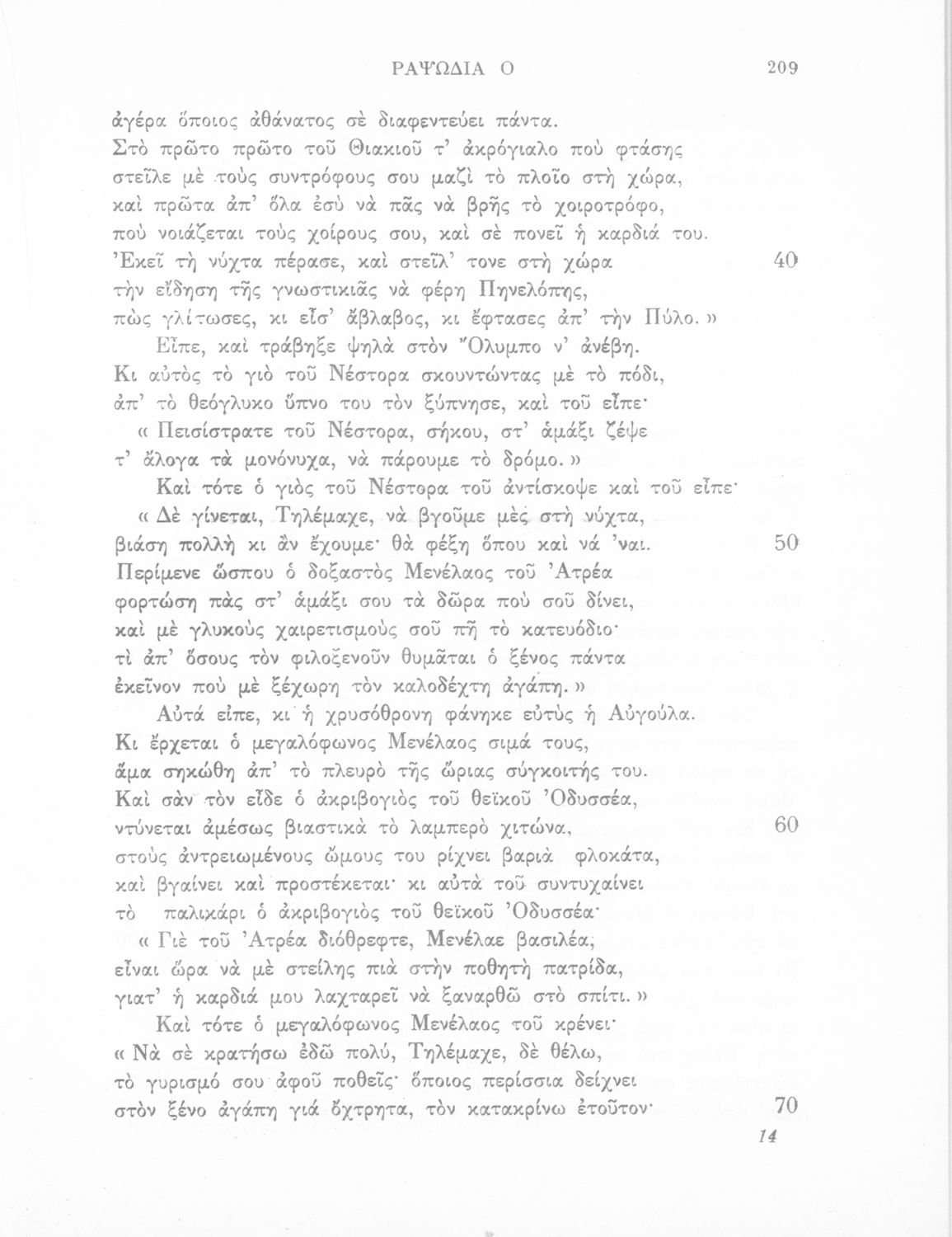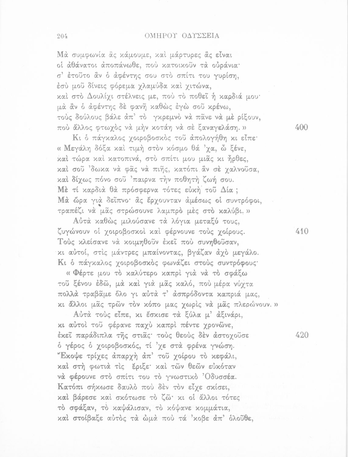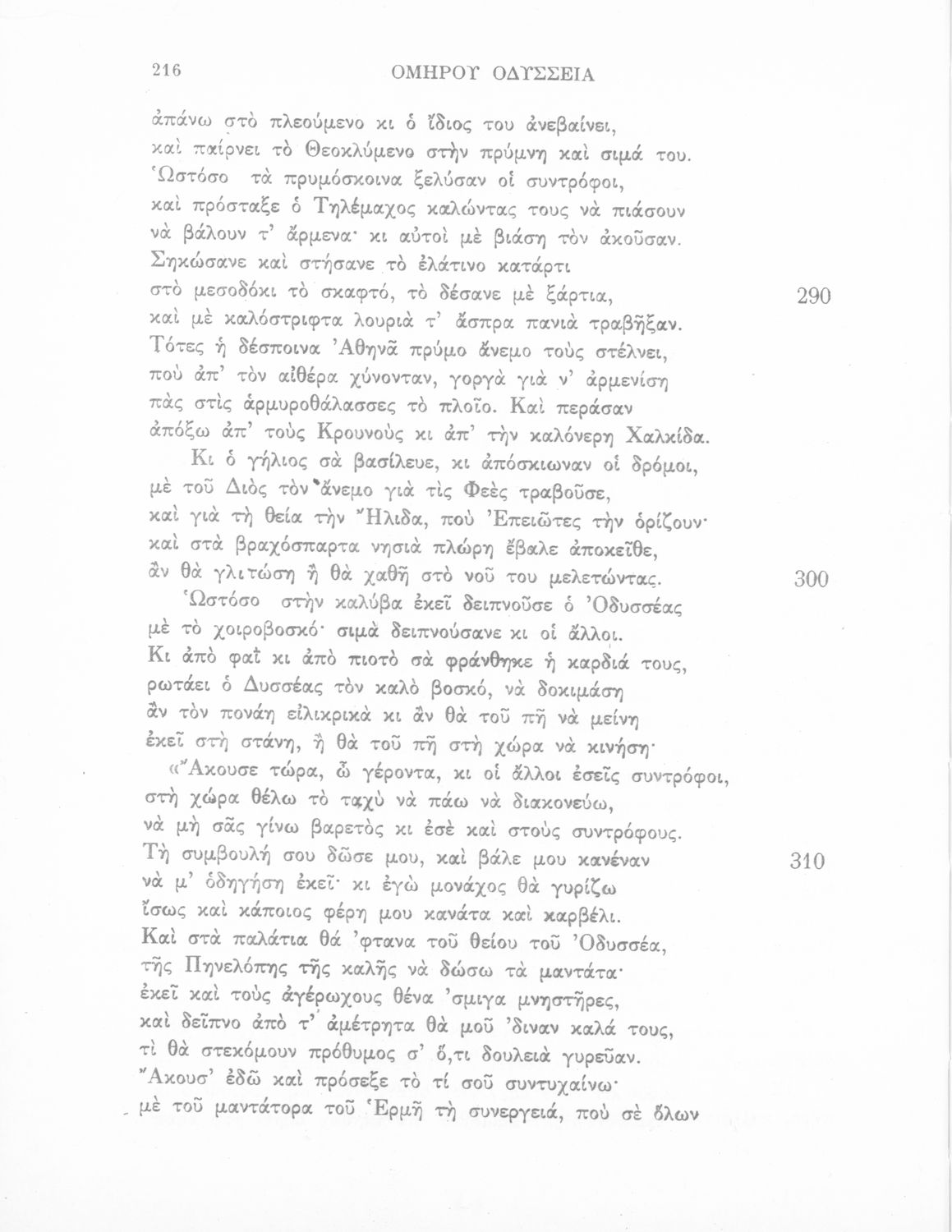 Σχολικό εγχειρίδιο Αρχαίων Ελληνικών για τις τάξεις του Γυμνασίου. Βιβλίο Οδύσσειας του Ομήρου για το Γυμνάσιο. Το προοίμιο αναφέρεται στο πρωτότυπο κείμενο. Η μετάφραση είναι έμμετρη.