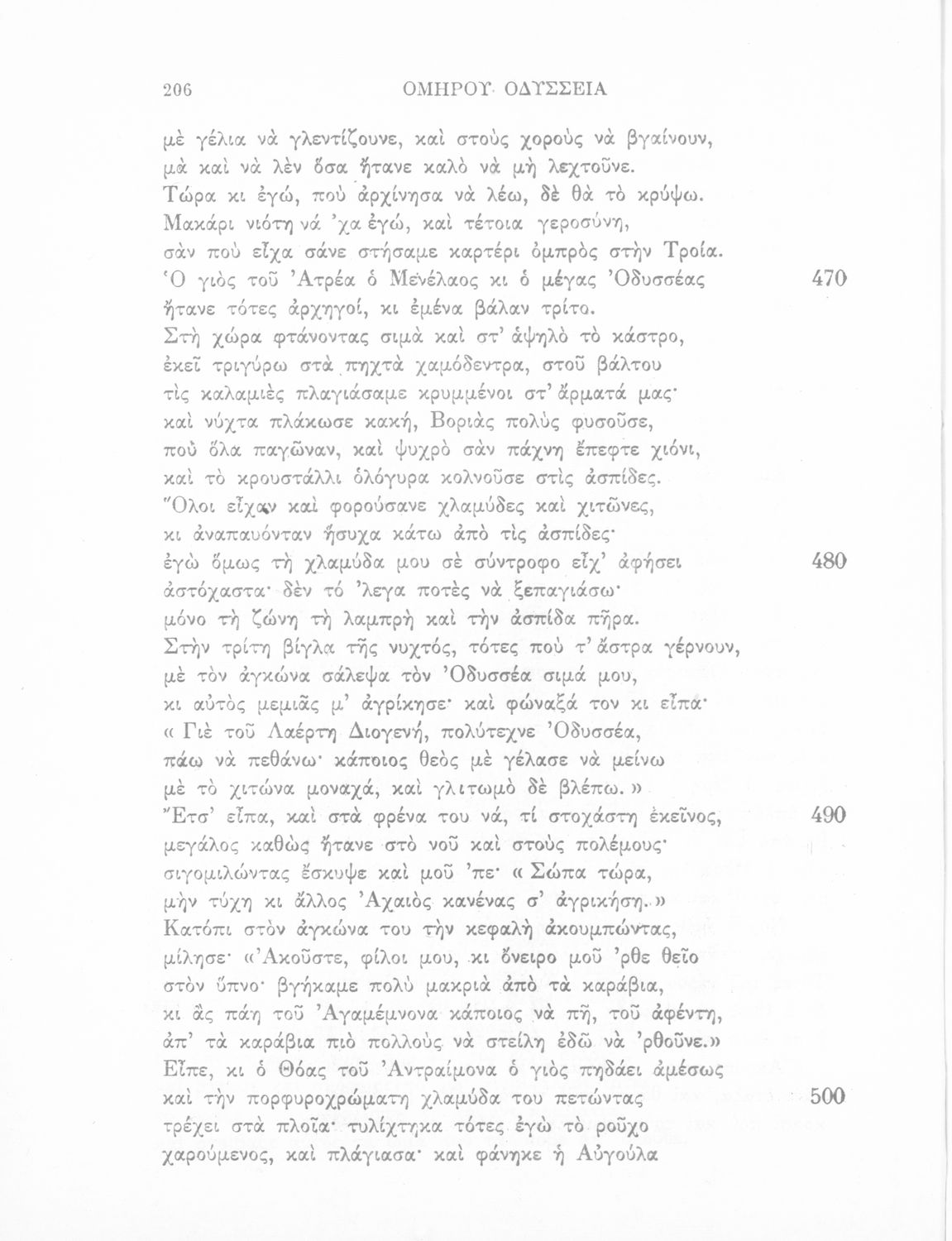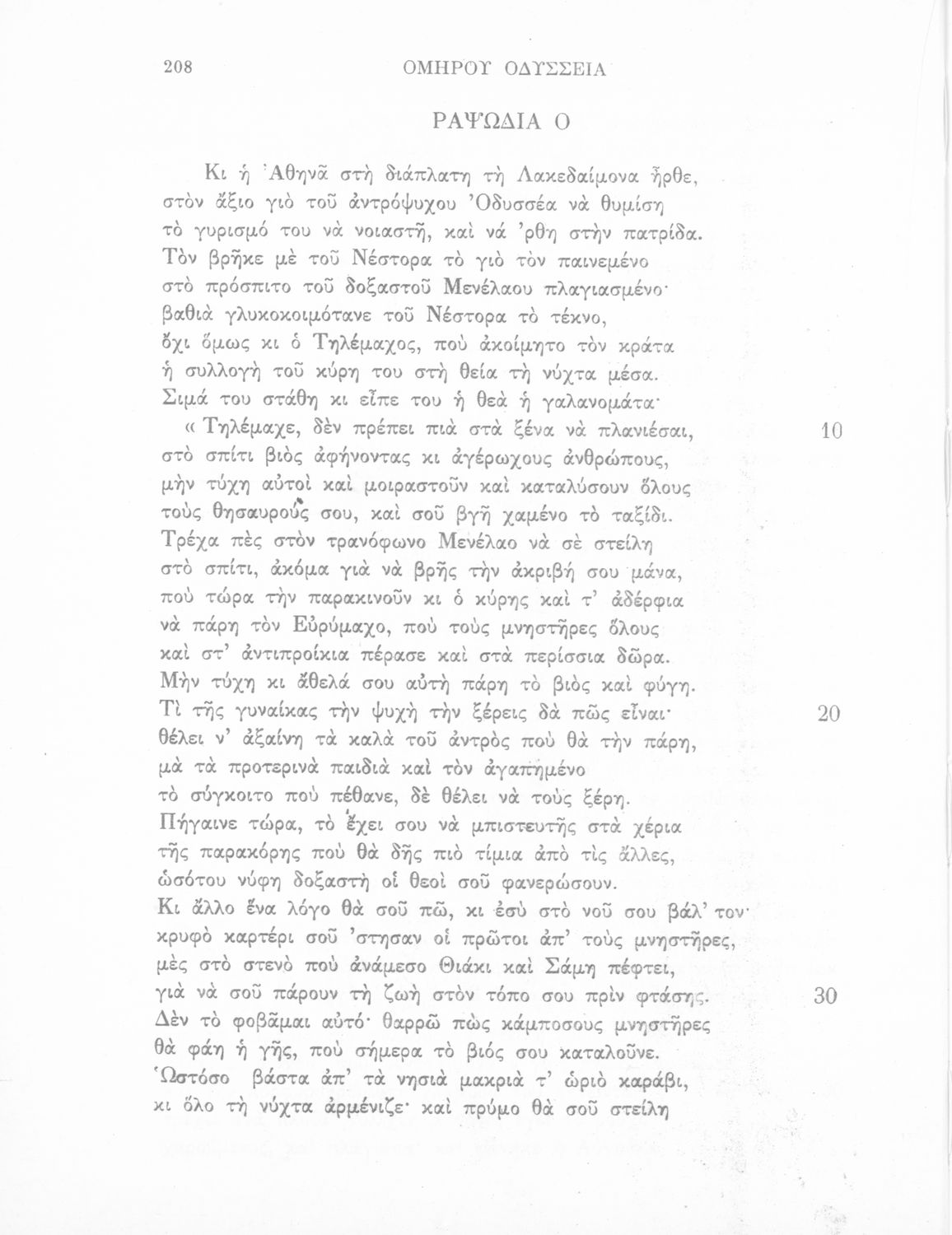 Παιδαγωγικό βοήθημα Αρχαίων Ελληνικών που περιλαμβάνει μετάφραση των ραψωδιών Ν-Ω της Οδύσσειας.