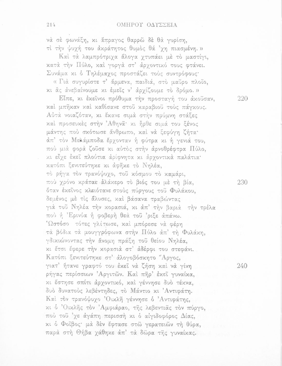 Παιδαγωγικό βοήθημα Αρχαίων Ελληνικών που περιλαμβάνει μετάφραση της Ομήρου Οδύσσειας στη νέα ελληνική, εισαγωγή στην επική ποίηση και στην Οδύσσεια, περιλήψεις και σημειώσεις.