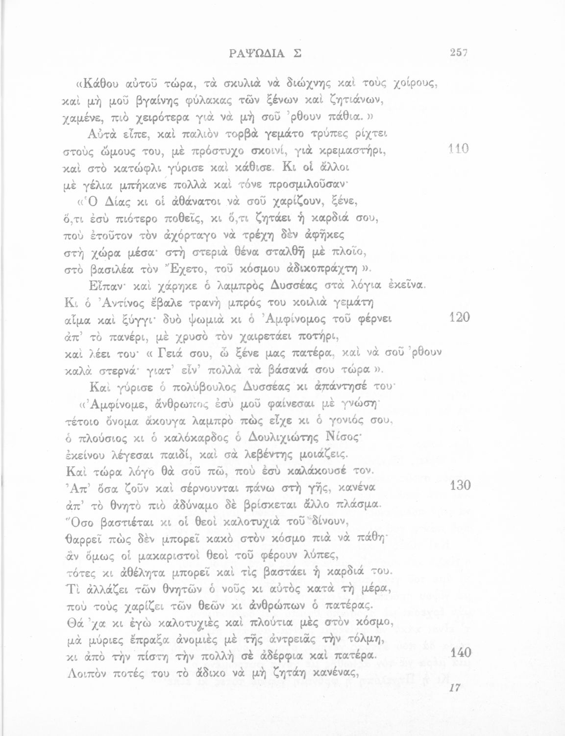 Παιδαγωγικό βοήθημα Αρχαίων Ελληνικών που περιλαμβάνει μετάφραση των ραψωδιών Ν-Ω της Οδύσσειας.