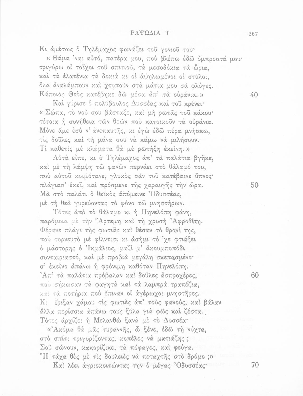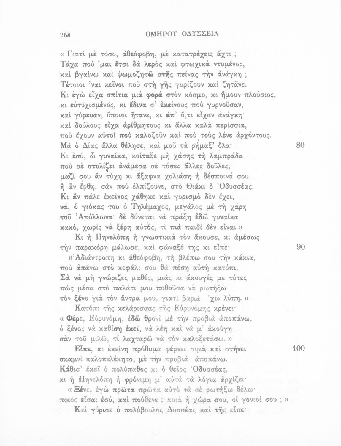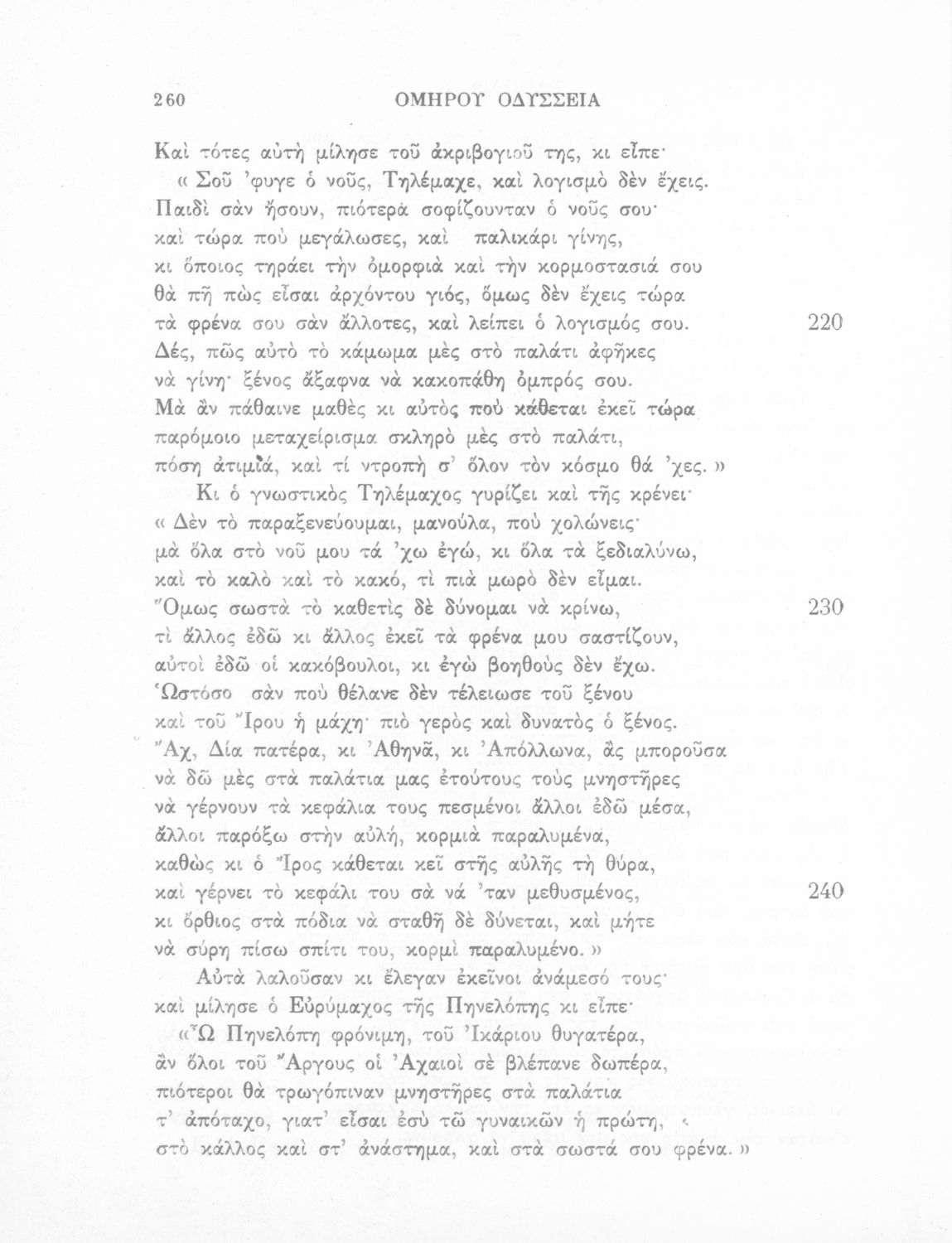 Σχολικό εγχειρίδιο Αρχαίων Ελληνικών για τις τάξεις του Γυμνασίου. Βιβλίο Οδύσσειας του Ομήρου για το Γυμνάσιο. Το προοίμιο αναφέρεται στο πρωτότυπο κείμενο. Η μετάφραση είναι έμμετρη.