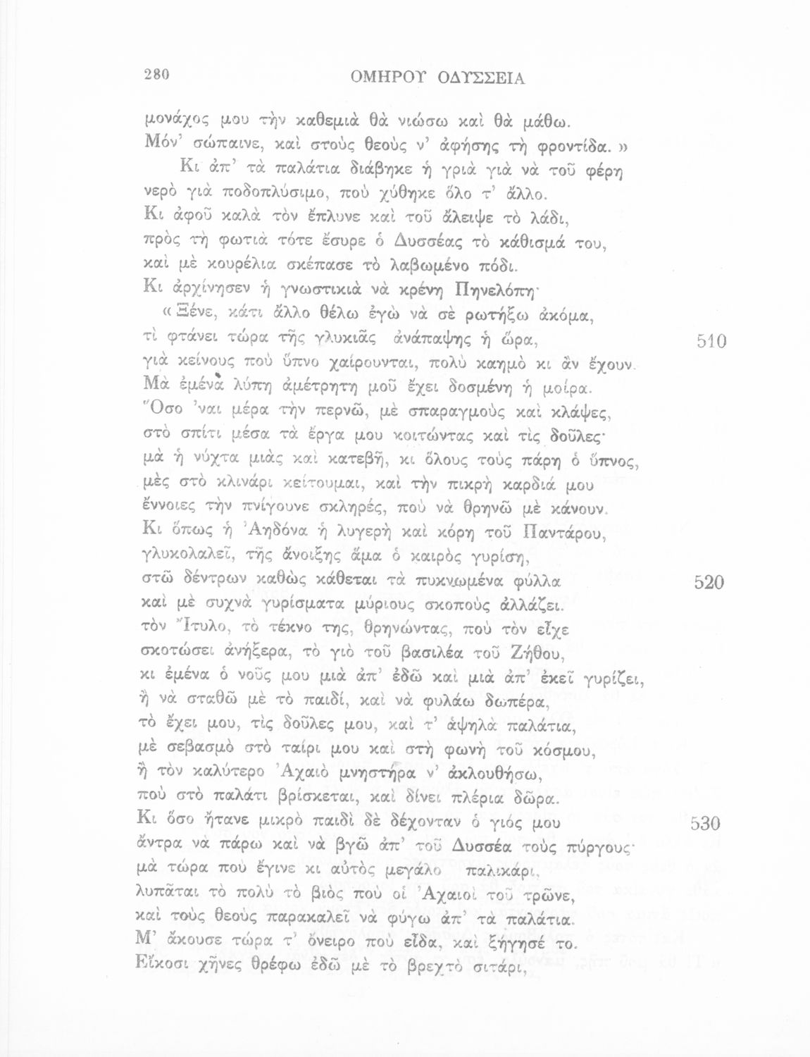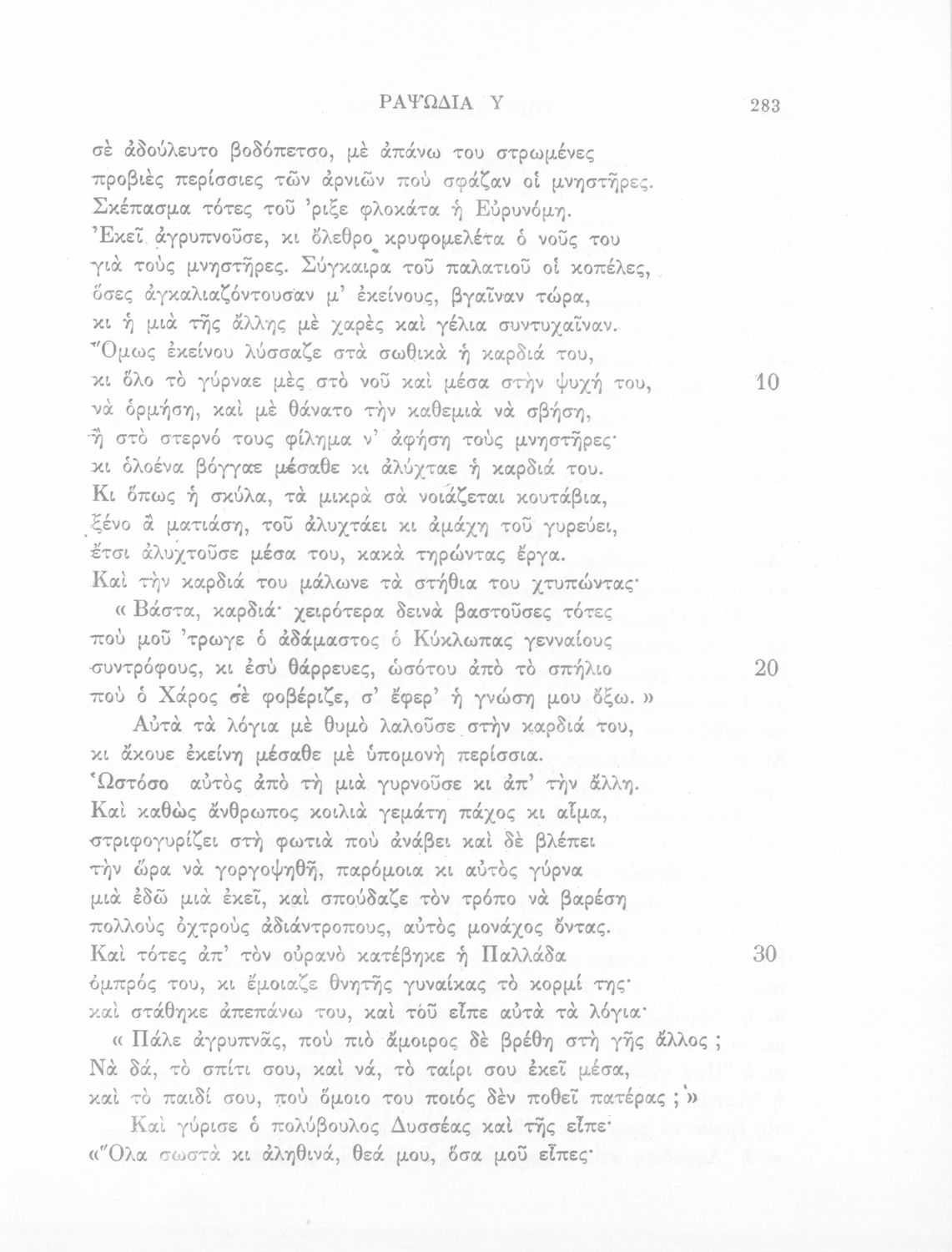 Παιδαγωγικό βοήθημα Αρχαίων Ελληνικών που περιλαμβάνει μετάφραση των ραψωδιών Ν-Ω της Οδύσσειας.