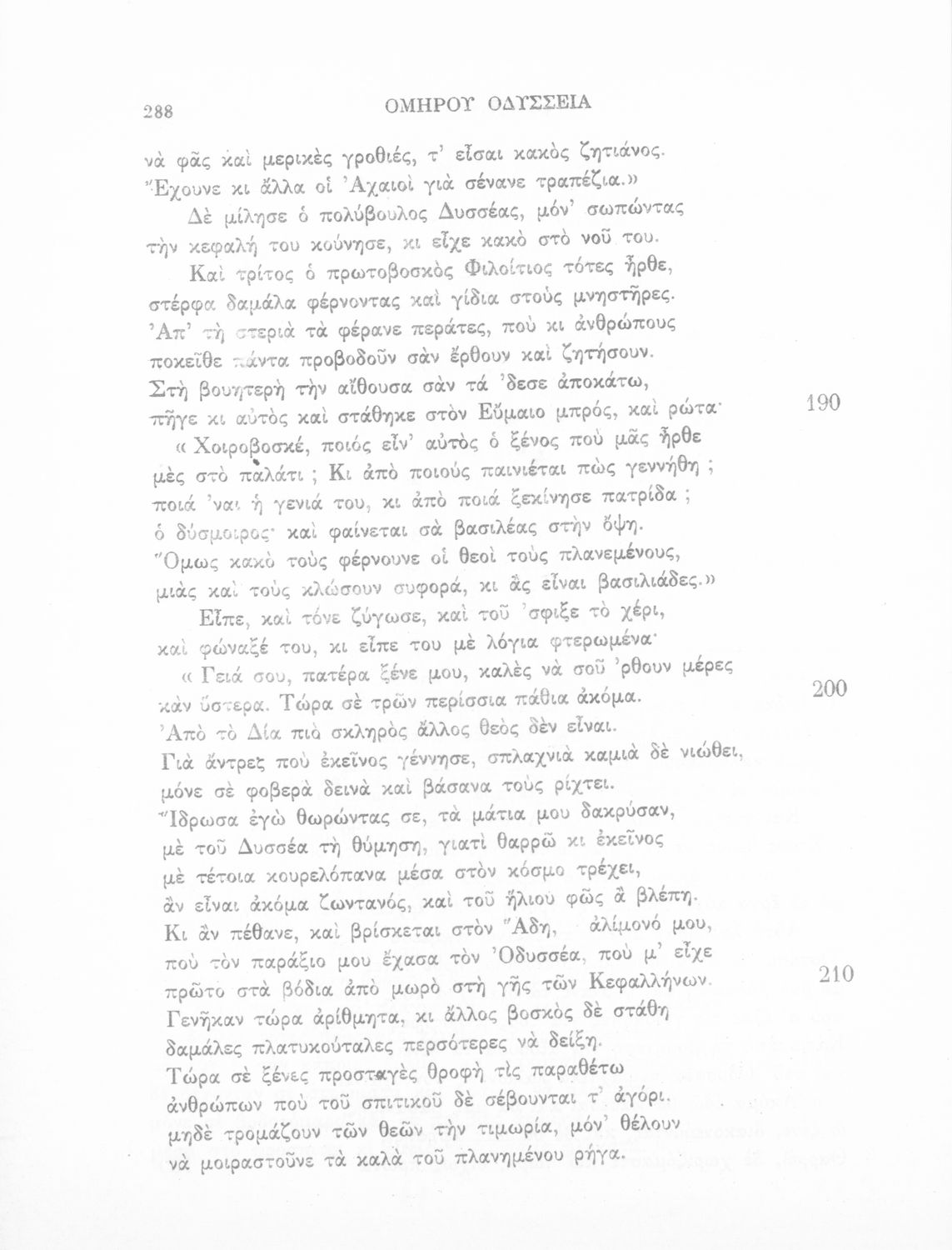 Σχολικό εγχειρίδιο του Γυμνασίου για το μάθημα των Αρχαίων Ελληνικών. Πρόκειται για το κείμενο της Οδύσσειας μεταφρασμένο στο τέλος περιλαμβάνει λεξιλόγιο.