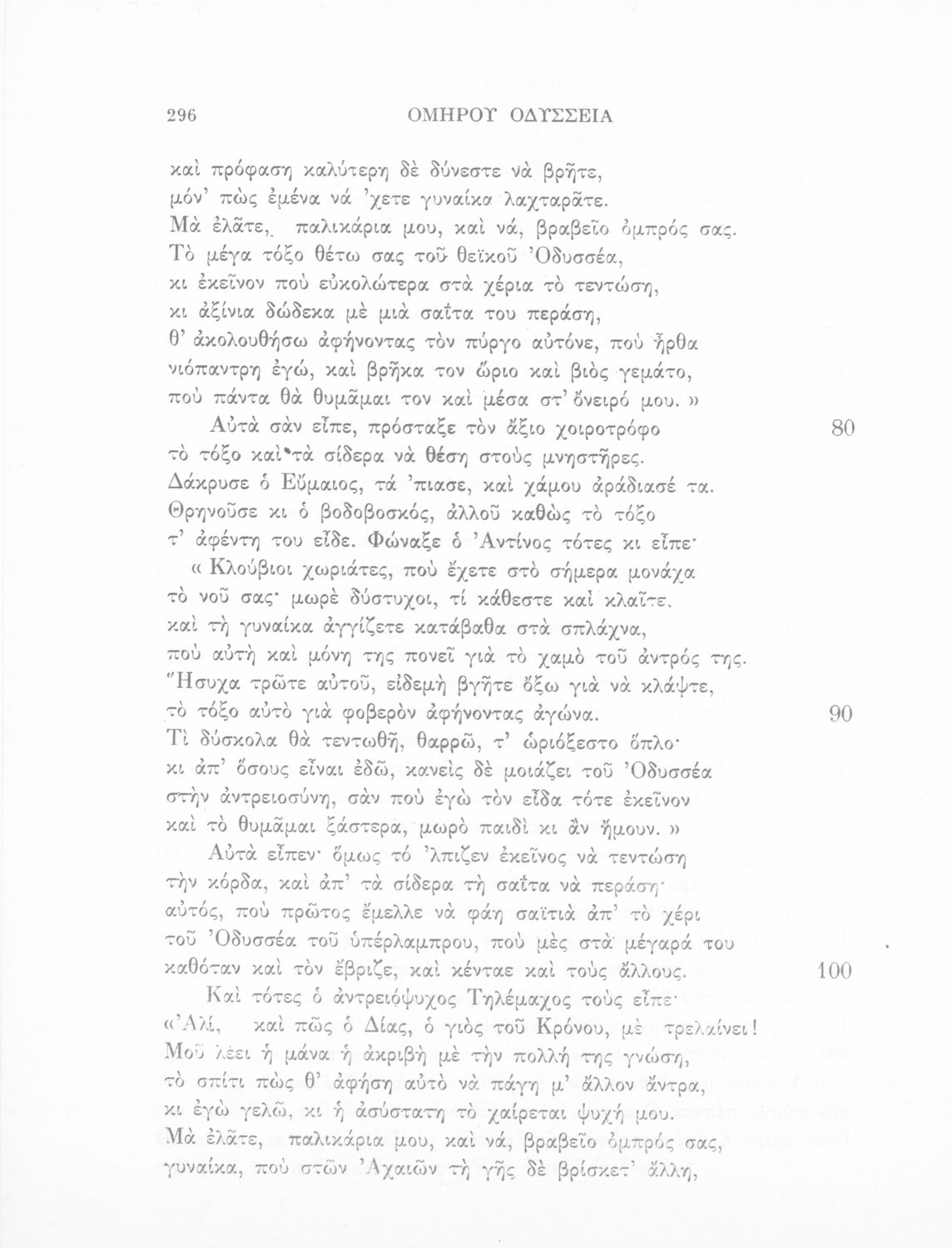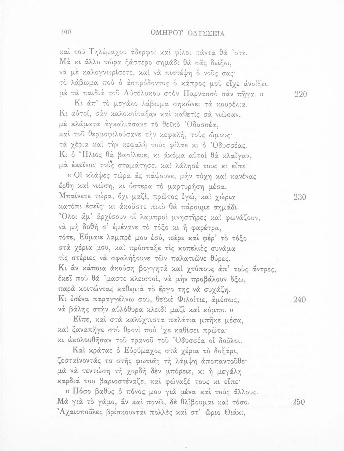 Σχολικό εγχειρίδιο Αρχαίων Ελληνικών για τις τάξεις του Γυμνασίου. Βιβλίο Οδύσσειας του Ομήρου για το Γυμνάσιο. Το προοίμιο αναφέρεται στο πρωτότυπο κείμενο. Η μετάφραση είναι έμμετρη.