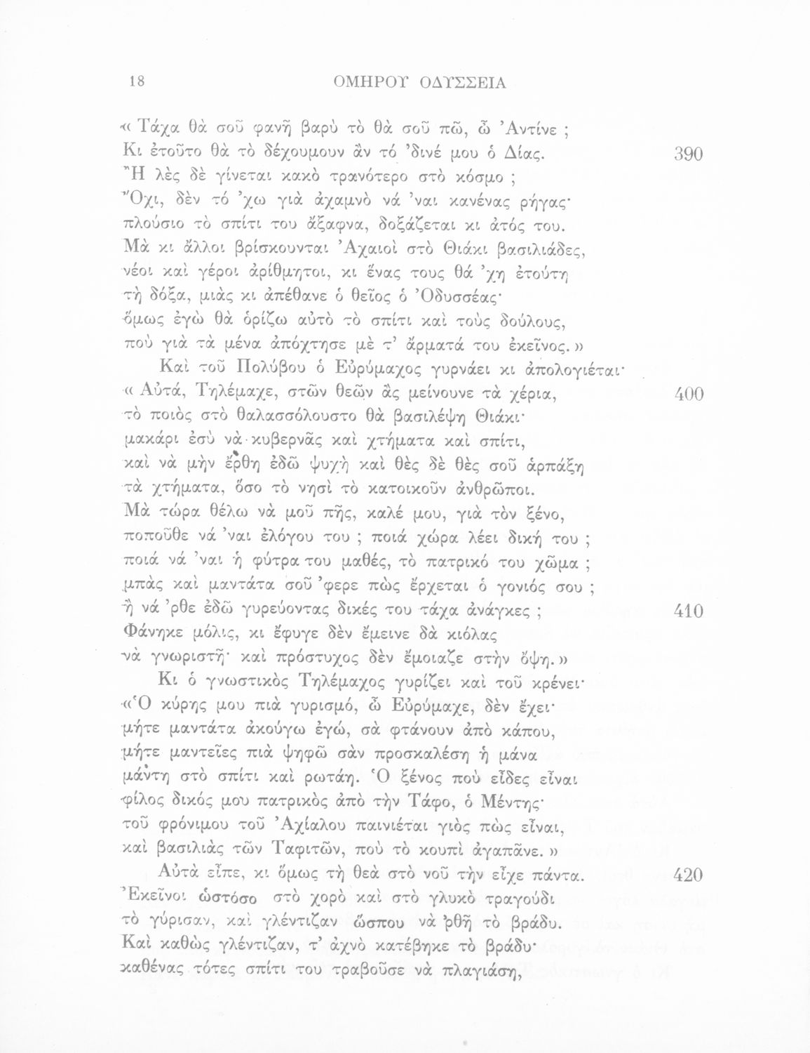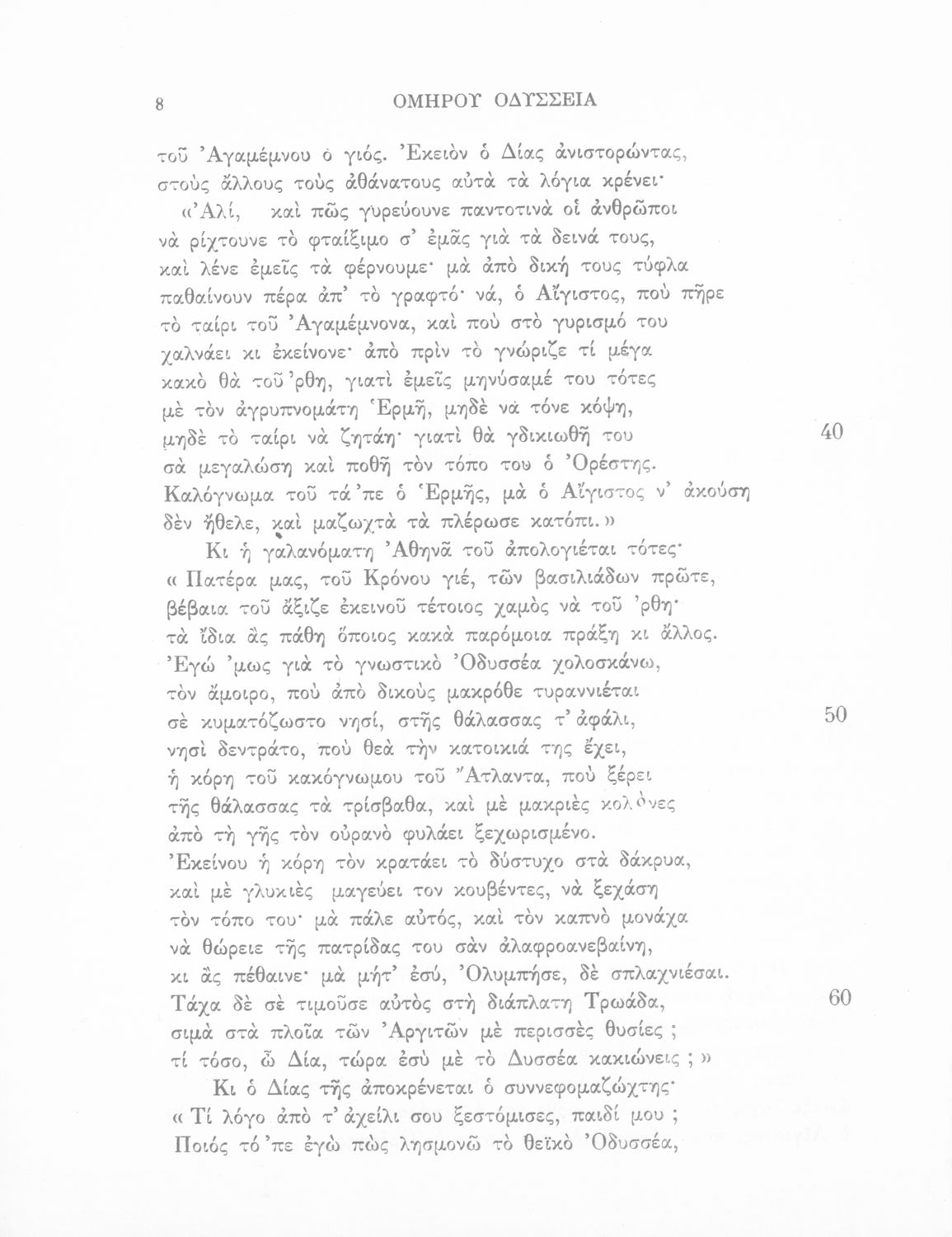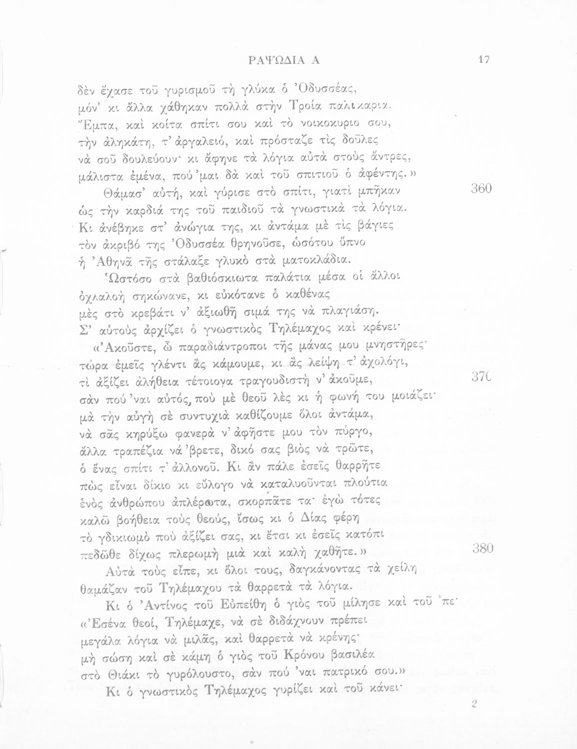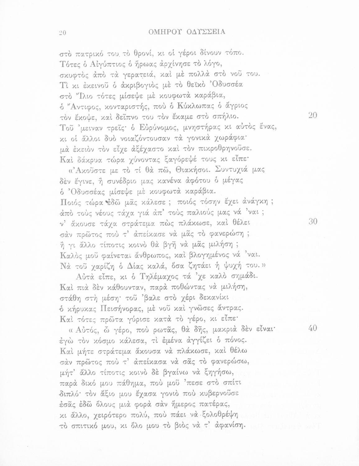 Σχολικό εγχειρίδιο Αρχαίων Ελληνικών για τις τάξεις του Γυμνασίου. Βιβλίο Οδύσσειας του Ομήρου για το Γυμνάσιο. Το προοίμιο αναφέρεται στο πρωτότυπο κείμενο. Η μετάφραση είναι έμμετρη.