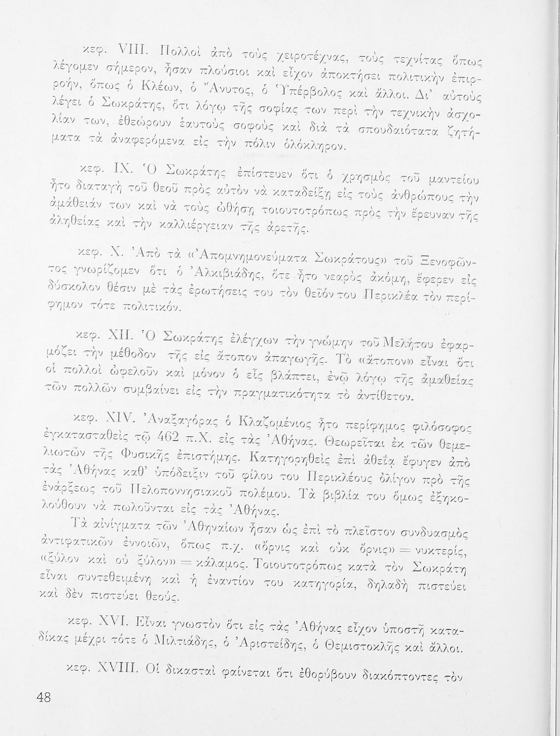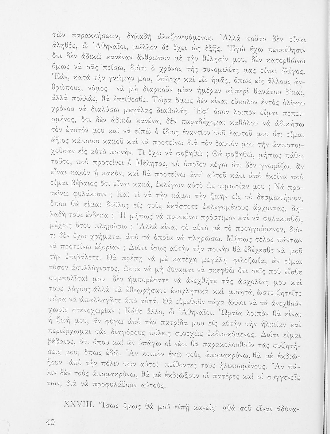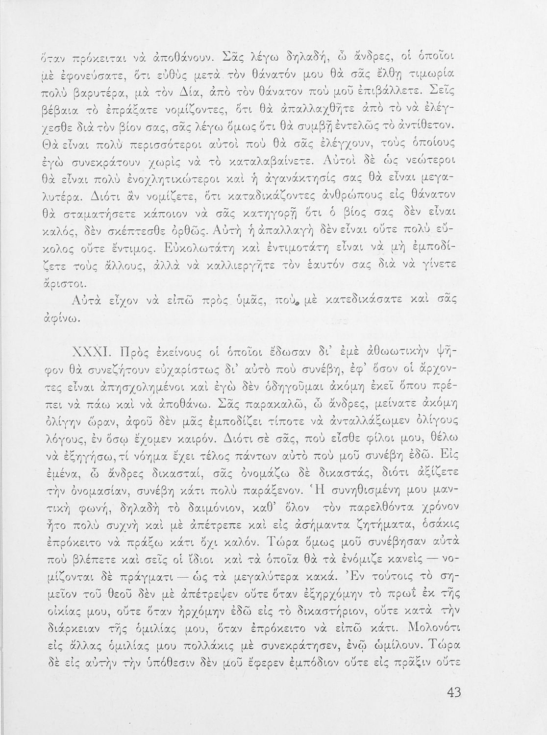 Σχολικό εγχειρίδιο Αρχαίων Ελληνικών που περιλαμβάνει έργο του Πλάτωνα και σημειώσεις του συγγραφέα. Τα κείμενα είναι μετάφραση από το πρωτότυπο. Στο βιβλίο υπάρχει το σύμβολο της επταετίας.
