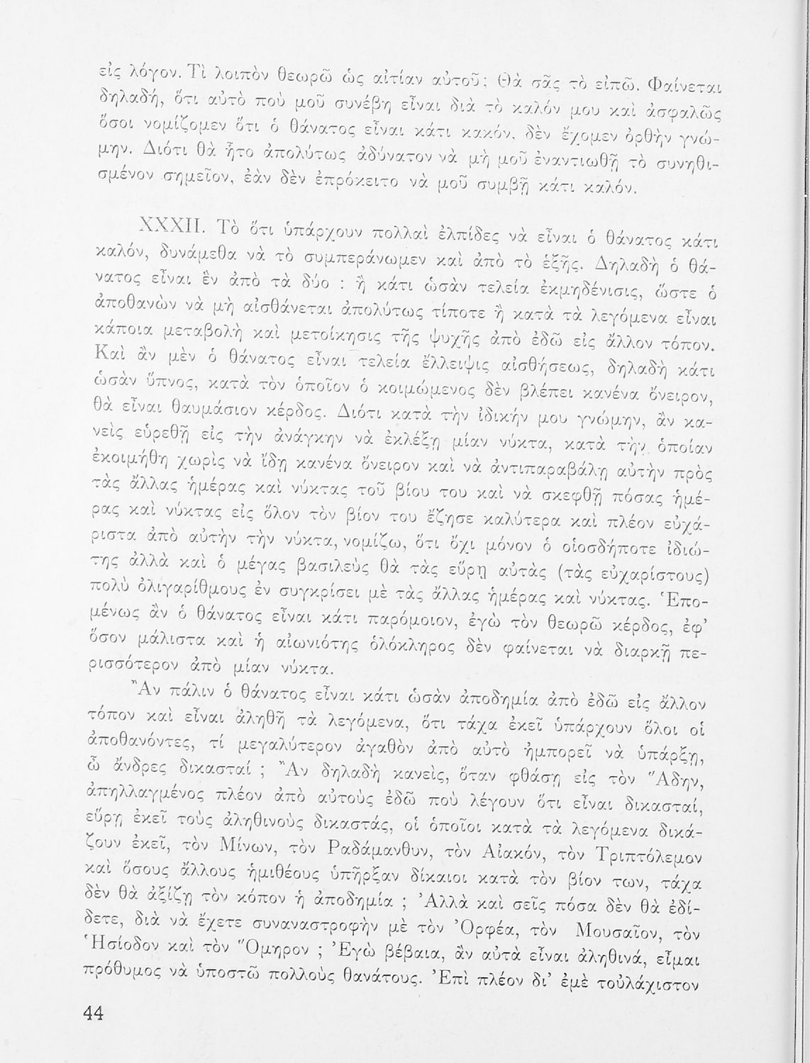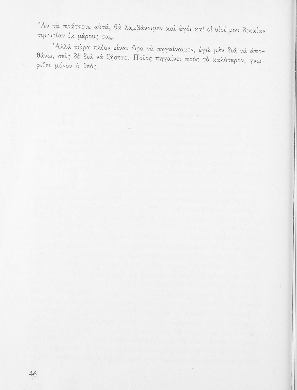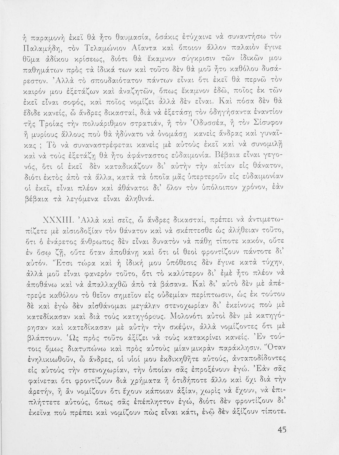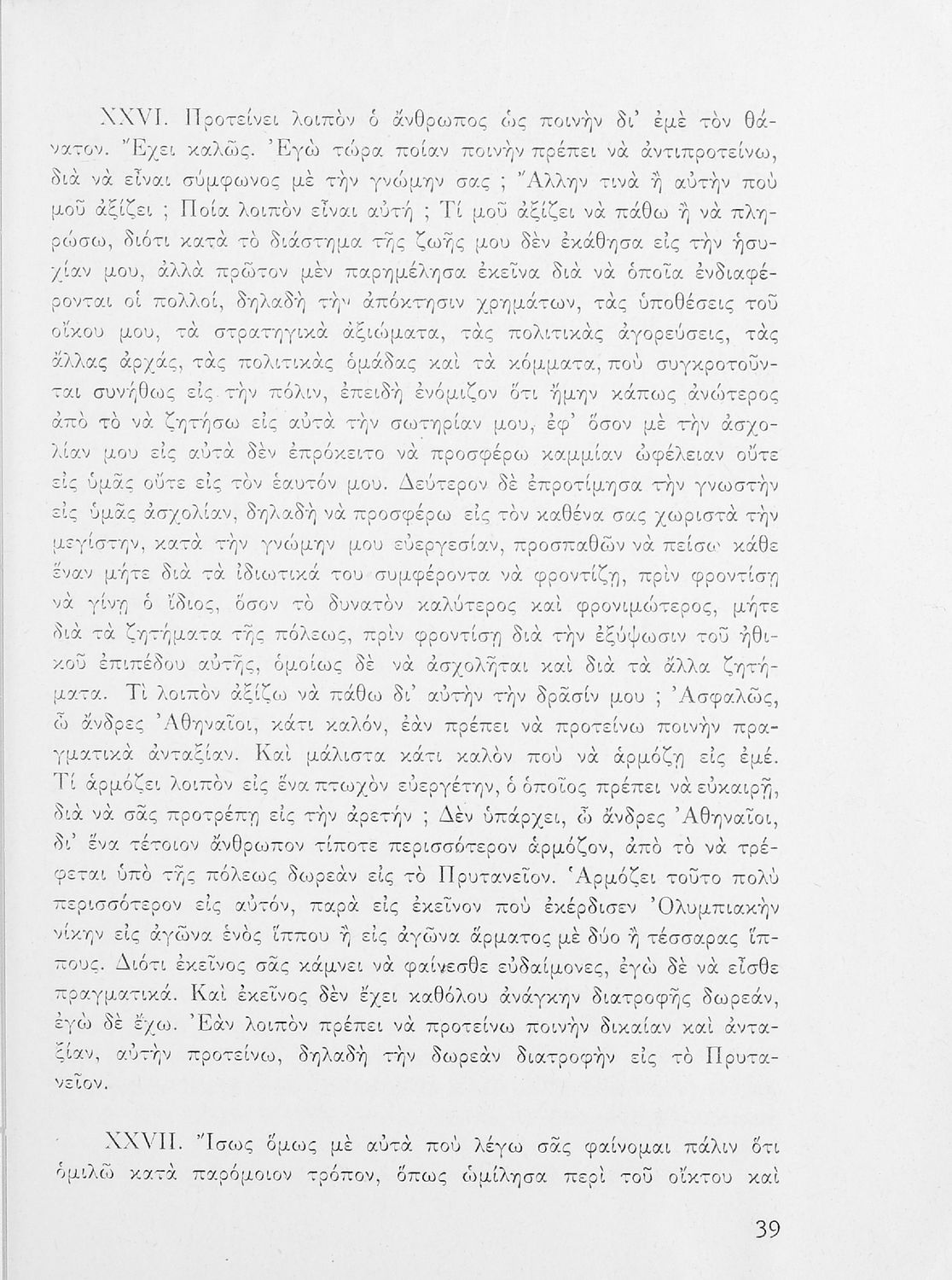 Σχολικό εγχειρίδιο Αρχαίων Ελληνικών που περιλαμβάνει έργο του Πλάτωνα και σημειώσεις του συγγραφέα. Τα κείμενα είναι μετάφραση από το πρωτότυπο. Στο βιβλίο υπάρχει το σύμβολο της επταετίας.