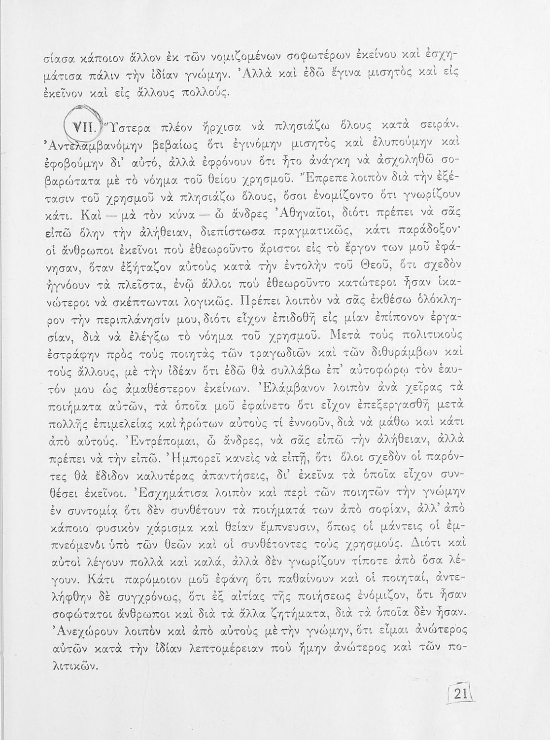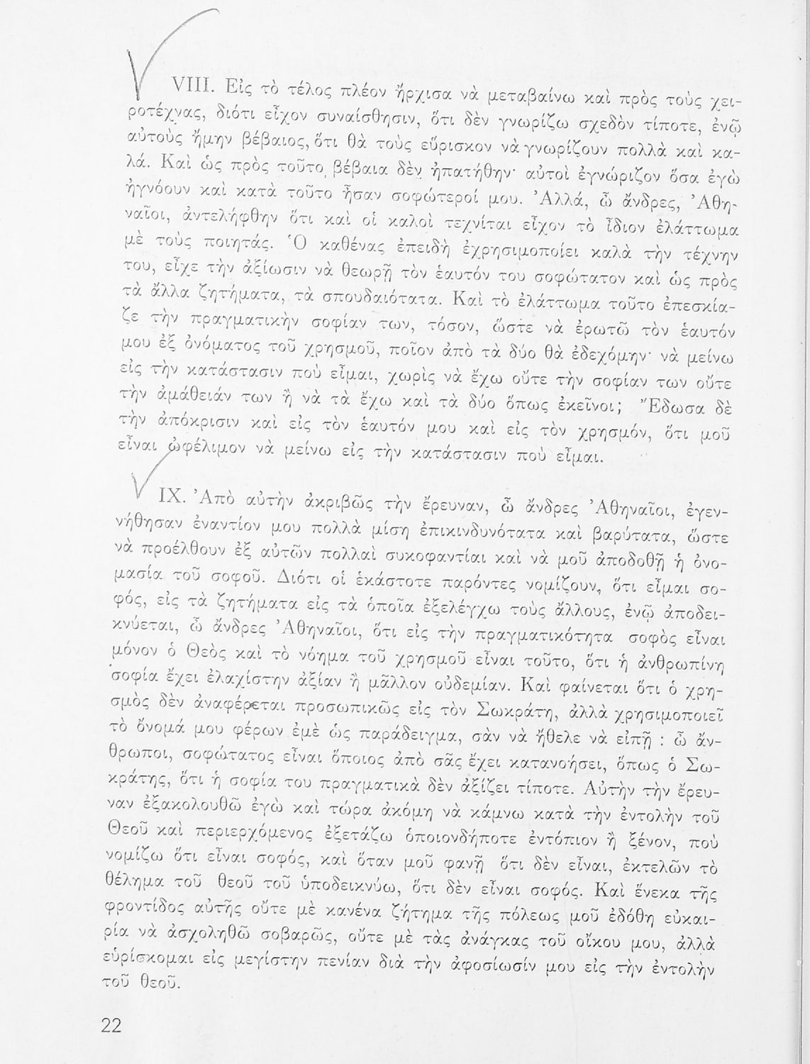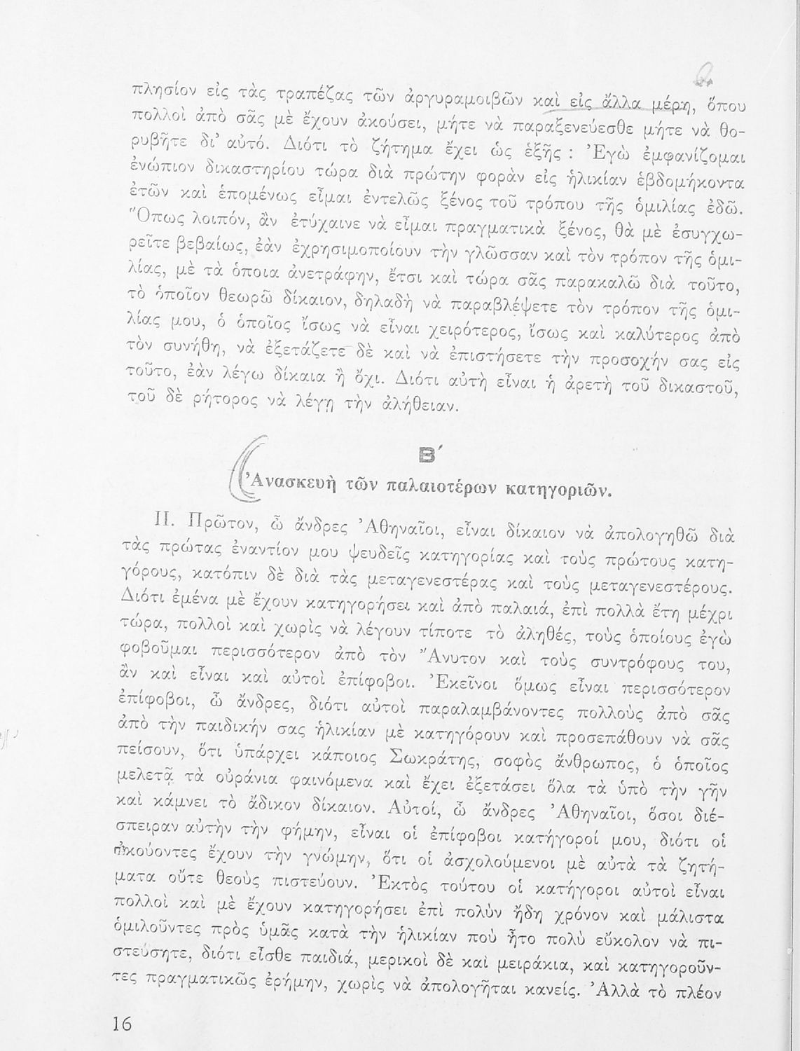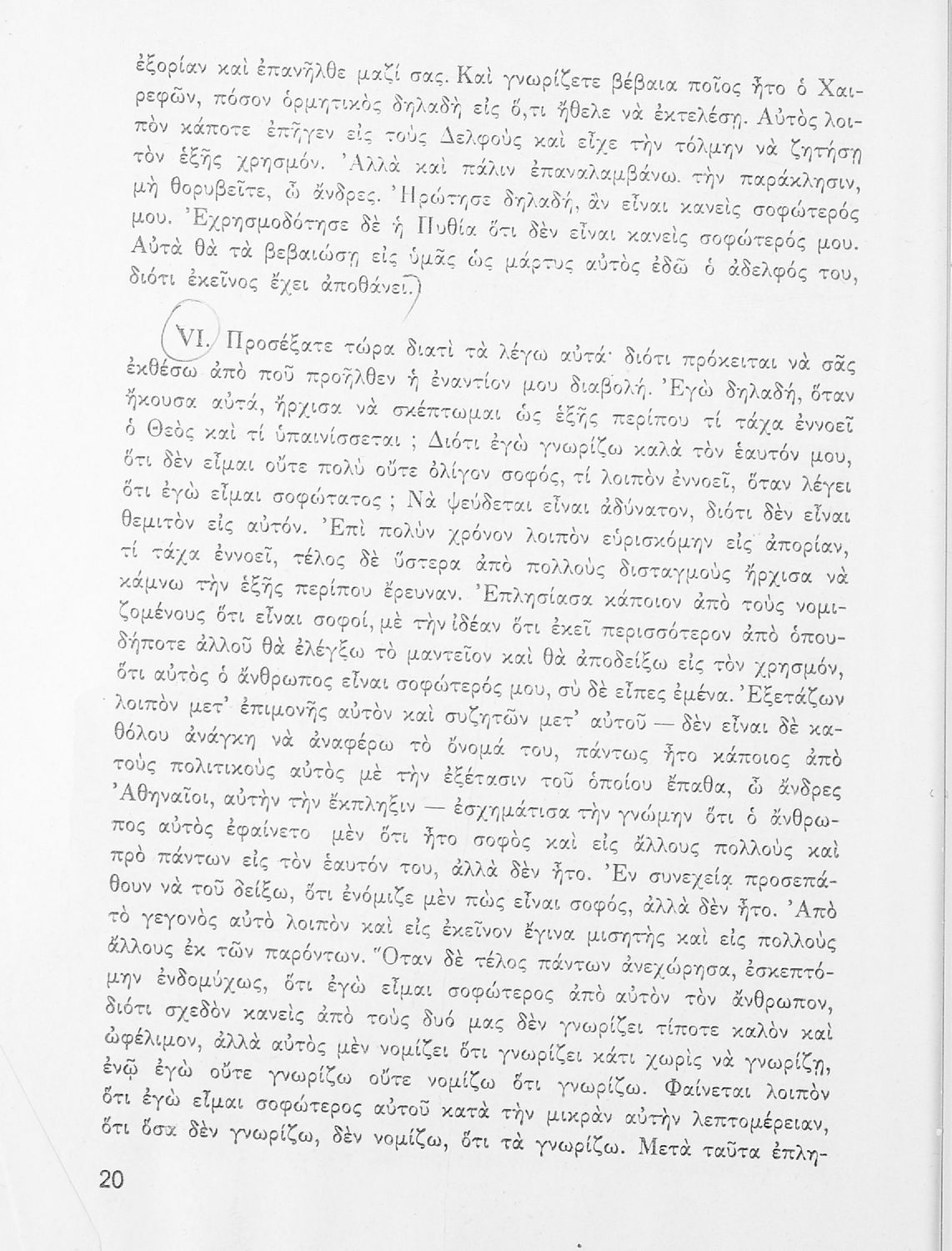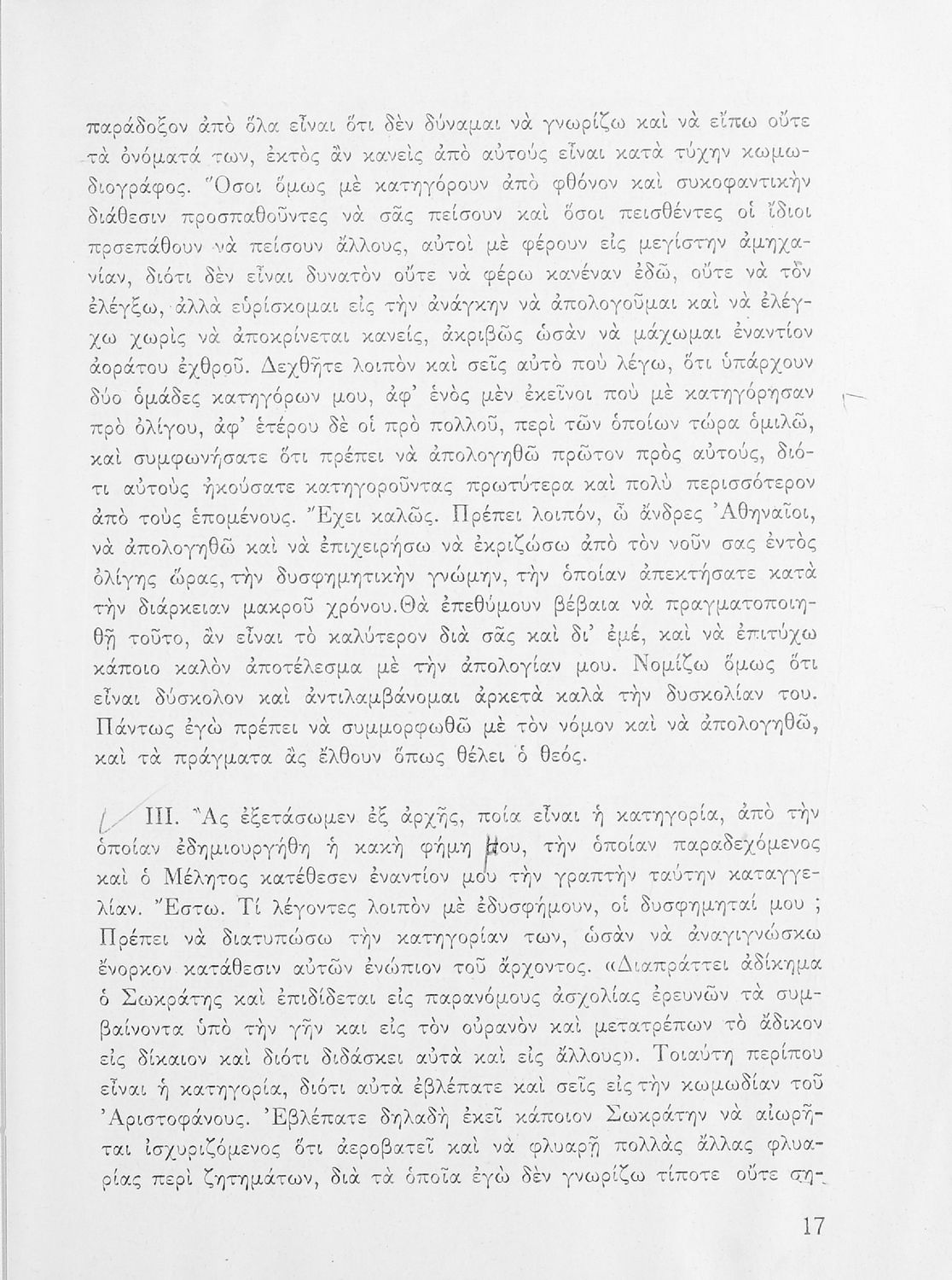 Σχολικό εγχειρίδιο Αρχαίων Ελληνικών που περιλαμβάνει έργο του Πλάτωνα και σημειώσεις του συγγραφέα. Τα κείμενα είναι μετάφραση από το πρωτότυπο. Στο βιβλίο υπάρχει το σύμβολο της επταετίας.