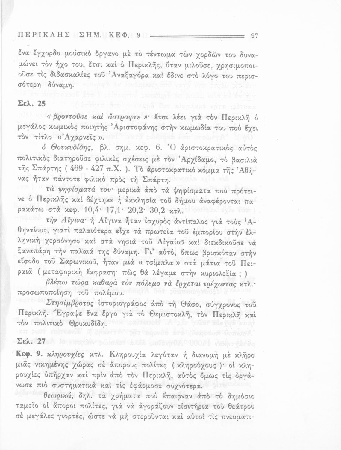 Σχολικό εγχειρίδιο Αρχαίων Ελληνικών Β΄ και Γ΄ Γυμνασίου που περιέχει αποσπάσματα από το έργο του Θουκυδίδη Ιστορία, και ερμηνευτικές και πραγματολογικές παρατηρήσεις.