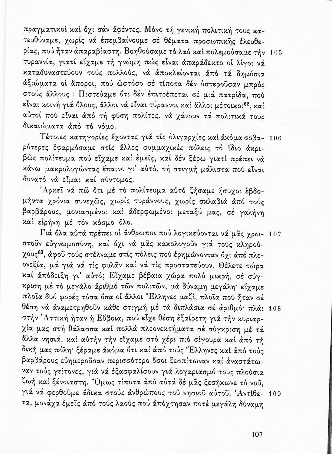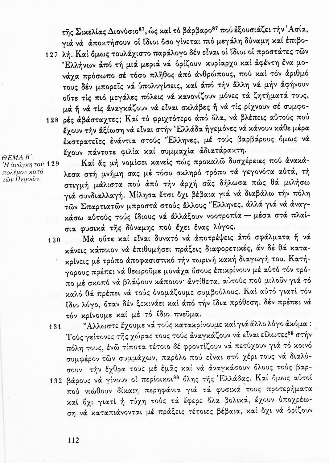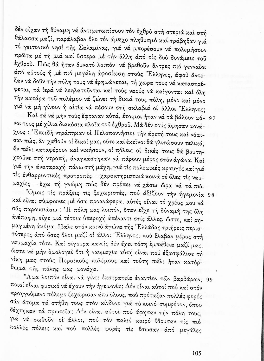 Σχολικό εγχειρίδιο Αρχαίων Ελληνικών για τη Β΄ Γυμνασίου που περιλαμβάνει Λόγους των Λυσία, Ισοκράτη και Δημοσθένη και αποσπάσματα από τα Ελληνικά του Ξενοφώντα σε μετάφραση, εισαγωγή στη ζωή και το έργο τους και ερμηνευτικές σημειώσεις.
