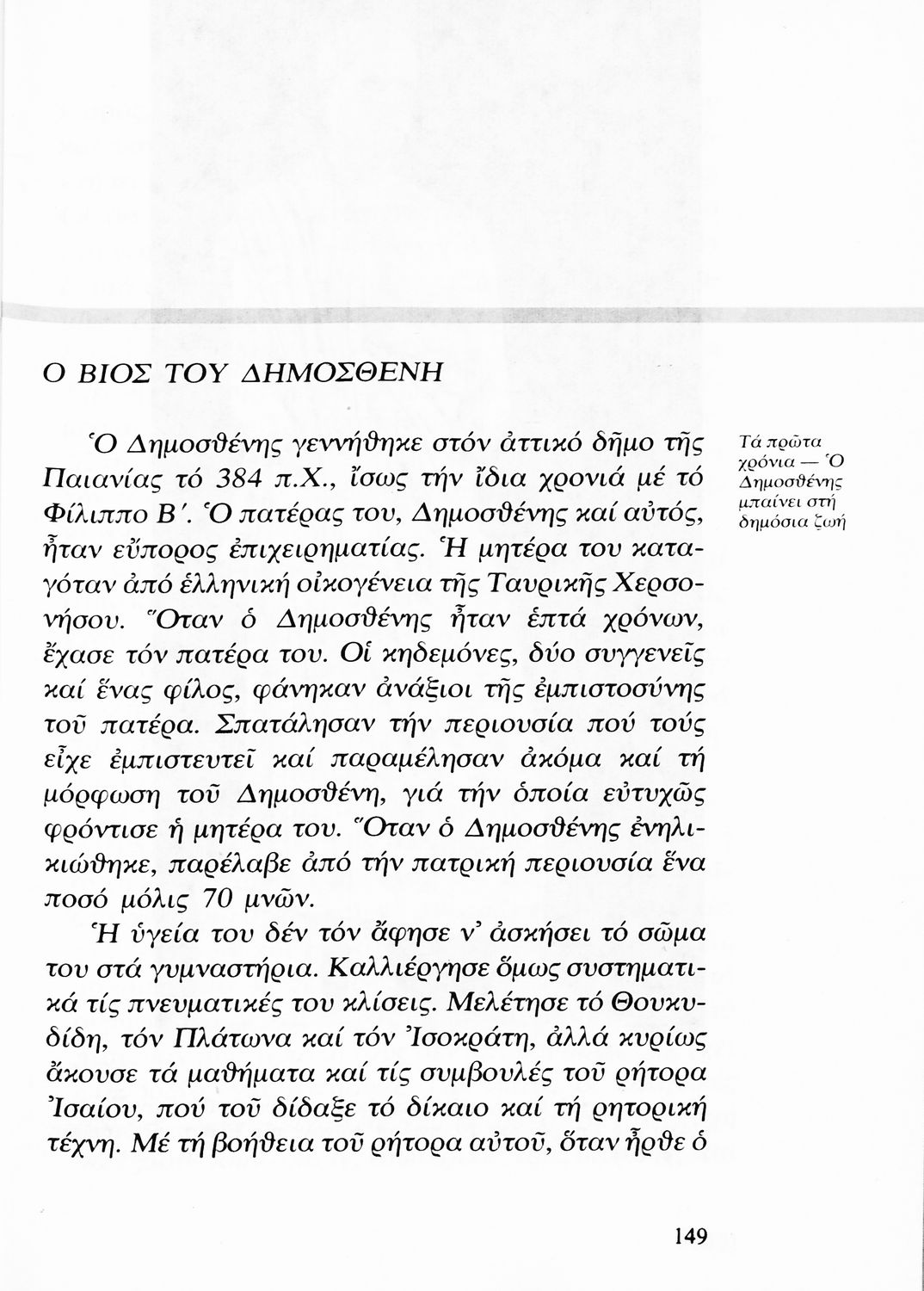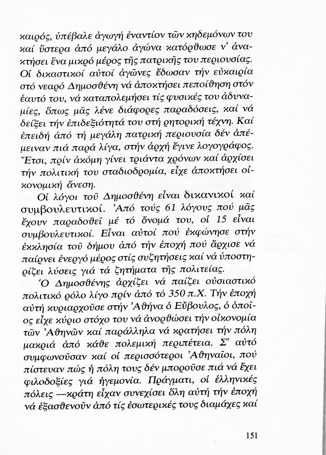 Σχολικό εγχειρίδιο Αρχαίων Ελληνικών για τη Β΄ Γυμνασίου που περιλαμβάνει Λόγους των Λυσία, Ισοκράτη και Δημοσθένη και αποσπάσματα από τα Ελληνικά του Ξενοφώντα σε μετάφραση, εισαγωγή στη ζωή και το έργο τους και ερμηνευτικές σημειώσεις.